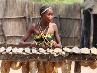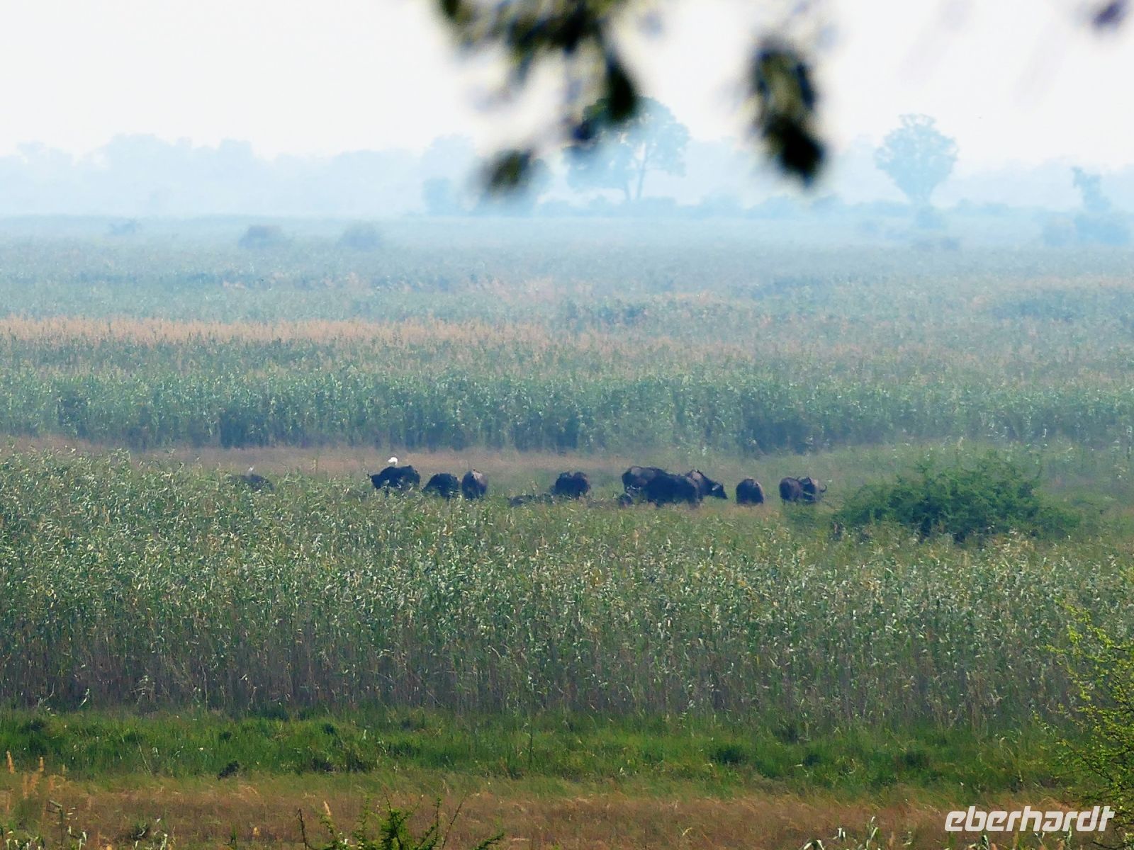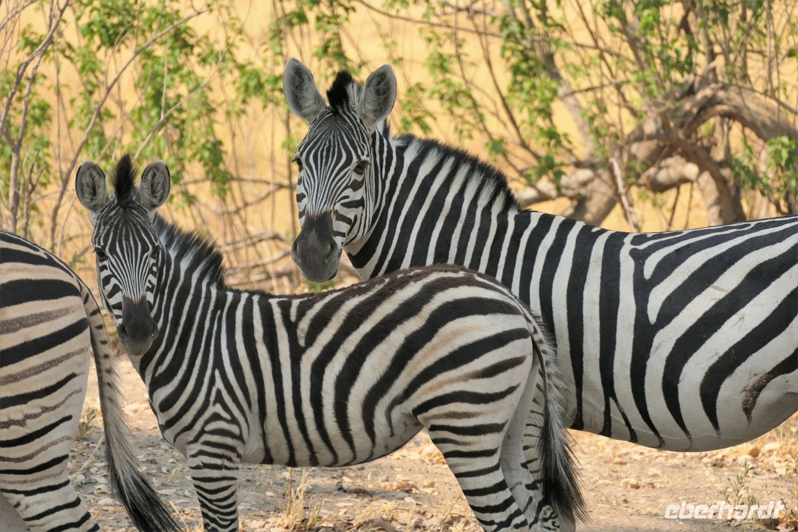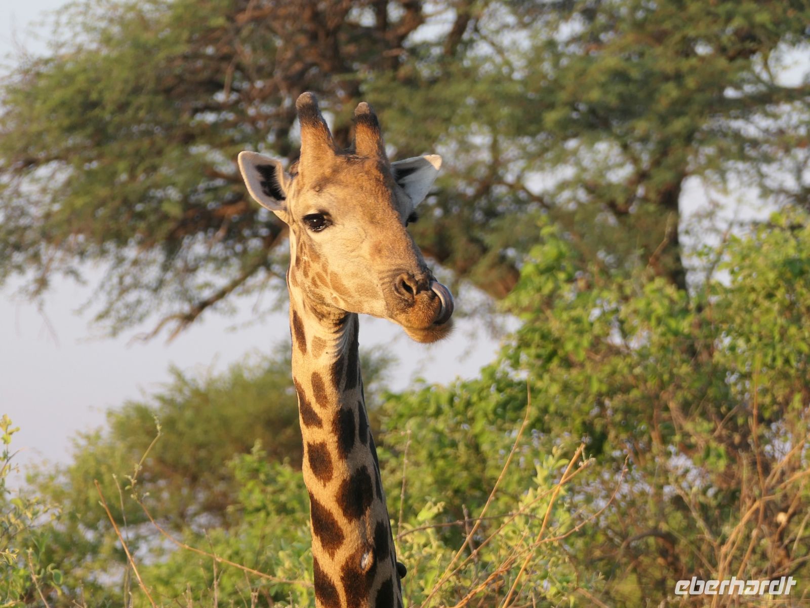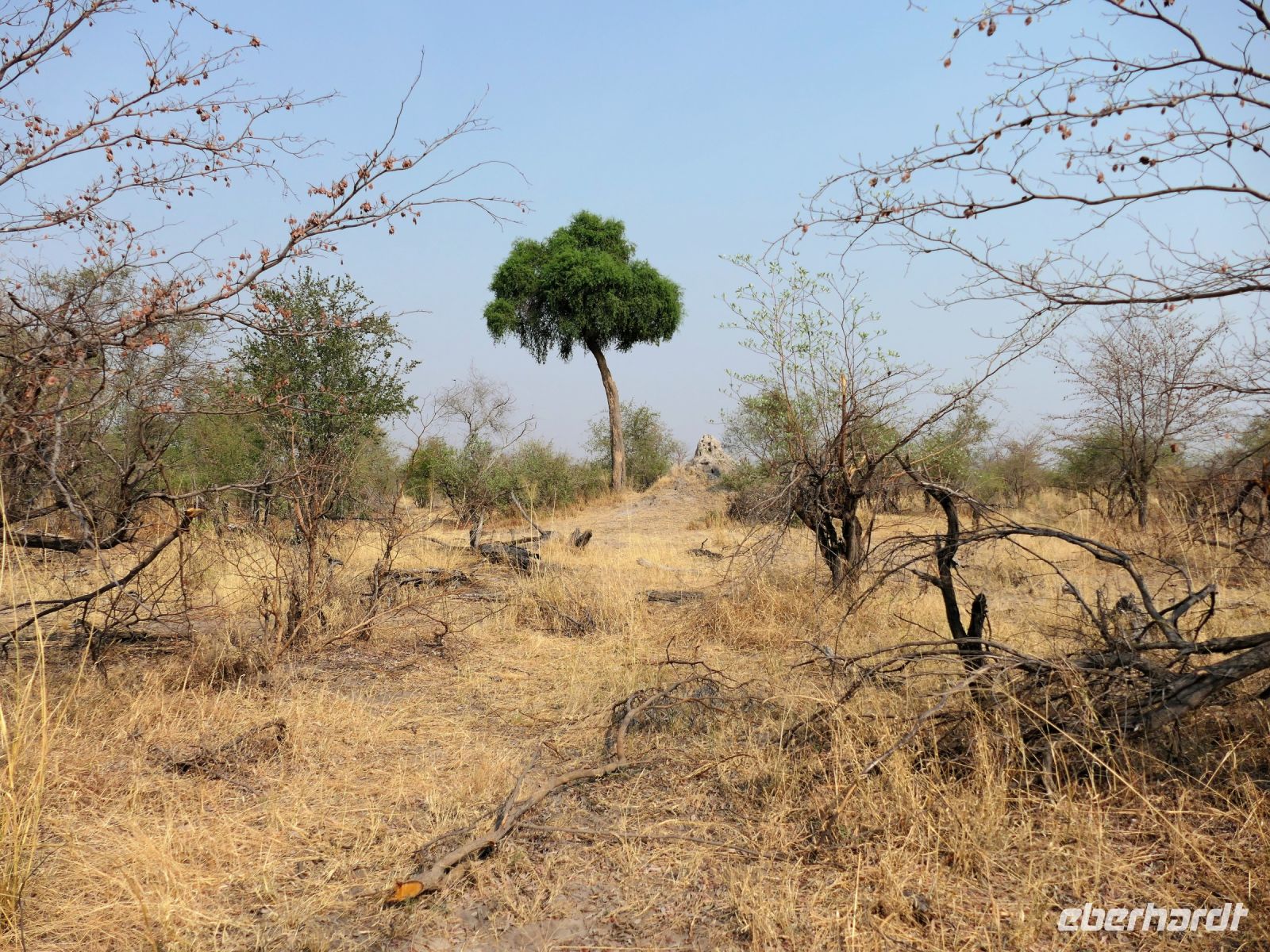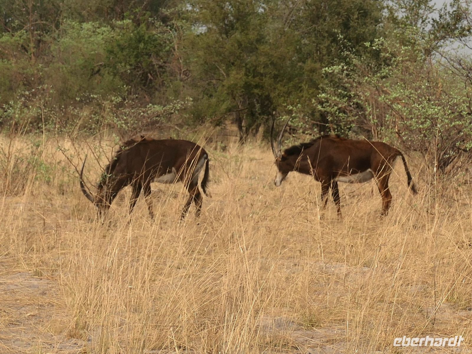 Heute konnten wir ausschlafen, dennoch wurden viele vom Zwitschern der Vögel schon früher geweckt. Zum späten Frühstück begrüßte uns eine Büffelherde, später kam noch ein Krokodil vorbei. In den hohen Bäumen hingen Fledermäuse ab. Unsere Reise ging heute weiter in die Chobe Region. Doch zunächst besuchten wir noch das benachbarte Namushasha Culture Village, ein lebendiges Museumsdorf. Unter einem ca. 1.000 bis 1.500 Jahre alten Baobab erhielten wir von einem Stammesmitglied Einblicke in die Kultur und frühere Lebensweise der Clans: Wie ist so ein Dorf aufgebaut, wie baut man Häuser, wie wohnt man, wer geht welcher Arbeit nach, wie baut und stellt man Fallen, was wird gekocht, gegessen und wie wird getanzt und gesungen. Auch dieser Besuch war interessant und spannend, zumal wir verschiedene Dinge auch selbst ausprobieren konnten, wie Mais stampfen, Fallen stellen oder der "Busch-Trommel" Geräusche zu entlocken, um Flusspferde nachzuahmen und somit zu verscheuchen. Spontan entscheiden wir uns einen anderen Weg zu unserer nächsten Lodge einzuschlagen. Wir fahren nicht erst zurück nach Kongola und fahren die direkte Transitstraße nach Katima Mulilo, sondern fahren auf der erst und Ngoma, sondern fahren die landschaftlich schöner Strecke via Sangwali. Diese Strecke ist seit kurzem vollständig asphaltiert und bequem passierbar. Wir folgten also dem Kwando, der hier den Bogen nach Süden schlägt und Linyanti genannt wird. Via kleiner Nationalparks und entlang der Linyanti Sümpfe an der Grenze zu Botswana begaben wir uns auf die Spuren von David Livingstone. Auf seinen Entdeckungsreise zu den Victoria Wasserfällen kam der berühmte Afrika-Forscher in dieser Region vorbei. Bei Sangwali, ein unscheinbarer Ort, traf Livingstone damals auf den mächtigen Häuptling des Makololo Stammes, der das hier ansässige Volk der Mayeyi als Sklaven unterdrückte. Ein sehr historischer Ort, an dem ein kleines Museum und ein Baobab mit den Initialien von Livingstone noch heute erinnern. Wer mehr darüber erfahren möchte, empfehle ich die Bücher von Konny von Schmettau, die sich ausführlich mit der Geschichte von Livingstone beschäftigt. Unterwegs gab es viel zu schauen: Steppenzebras, Antilopen, vereinzelt Elefanten und natürlich viele Dörfer in dieser wasserreichen und deshalb dicht besiedelten Region. Es war Samstag und die meisten hatten frei. Rinder sind der Stolz der lokalen Bevölkerung. Je größer die Herde, umso reicher der Familienclan. Das sah man auch an den Dörfern. Der Stierkampf zweier Bullen erinnerte an Spanien, Ole! An den Straßenrändern Massenwanderungen der Locals, mit Plastikstühlen bewaffnet. Sie kamen oder gingen wahrscheinlich zu einer Hochzeit oder Feierlichkeit in den benachbarten Dörfern. Die Distanz kann schon ca. 5 bis 10 km sein, das alles zu Fuß und bei Temperaturen um die 35 °C und mehr - kaum vorstellbar für uns. Nach einem kurzen Tankstopp in Katimo Mulilo, dem Verwaltungssitz der Region gelangen wir an den gewaltigen Sambesi, parallel fuhren wir nach Ngoma. Der Kwando (Linyanti), der sich zunächst in südlicher Richtung abwandte, trafen wir in Ngoma wieder. Ab hier heißt der Linyanti dann Chobe. Wir sahen bereits, dass er sehr wenig Wasser führt, extrem wenig für diese Zeit. Kurz vor der Ngoma Bridge bogen wir links ab. Am namibischen Ufer des Chobe befindet sich unsere nächste Unterkunft, das Chobe River Camp, das Camp der langen Wege. Wir bezogen unsere