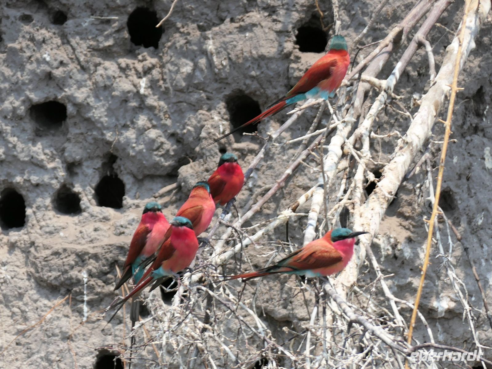 Liebe Reisegäste, vielen lieben Dank, dass Sie auf dieser Reise unsere Gäste gewesen seid und das Abenteuer der Expeditionsreise eingangen. Wir haben unglaublich viel gesehen, Massen von Elefanten (schätzungsweise ca. 900 gesamt). So viele habe ich noch nie auf einer Reise gesehen. Ebenso für mich eine Premiere, das Fotoshooting mit dem Geparden aus nächster Nähe! Tolle Lodges, super Essen (viel zu viel) und ich habe viel über die begeisternde Vogelwelt Afrikas gelernt (für mich auch eine Bildungsreise). Wir haben viele Erlebnisse geteilt und bei den unüblich heißen Temperaturen auch gemeinsam geschwitzt. Tutu hat die teilweise holprigen Wege, die sich seit 3 Jahren im Dornröschenschlaf (besonders in Botswana) befinden, ohne Reifenpanne gemeistert, die afrikanischen Massagen waren inklusive. In Afrika tickt die Uhr anders, afrikanische Gelassenheit ist angesagt. Man muß immer einen Plan B in der Tasche haben, um aus einer Reise etwas Besonderes und ganz individuelles zu machen, denn keine Reise gleicht der anderen. Eine Reise hat zwar immer ein Ziel, aber was letztendlich eine Reise ausmacht, ist der Weg. Bleibt also neugierig, gesund und reisefreudig, erkundet die Welt, denn diese ist, trotz allem was so ring um uns passiert, immer noch wunderschön.