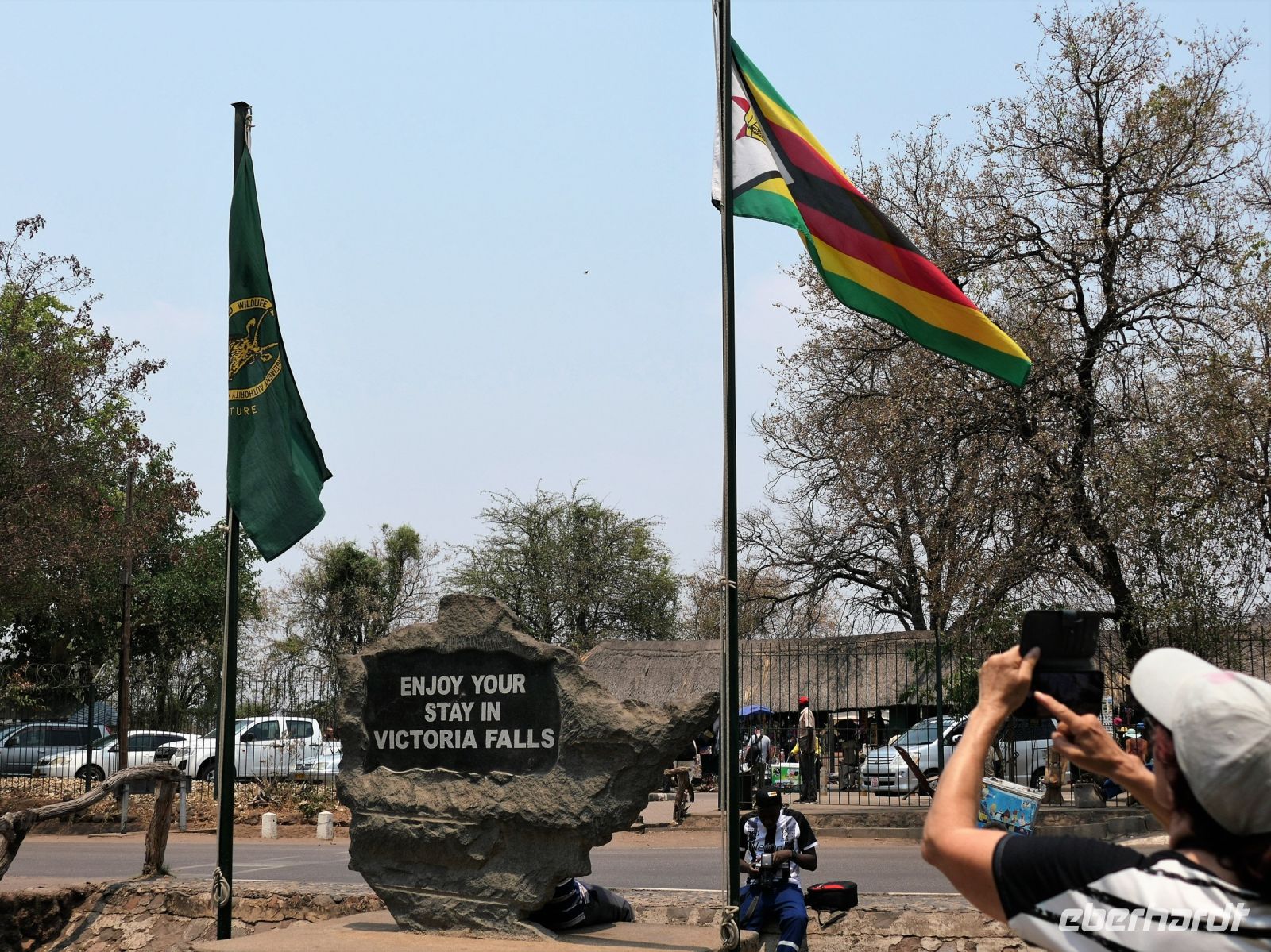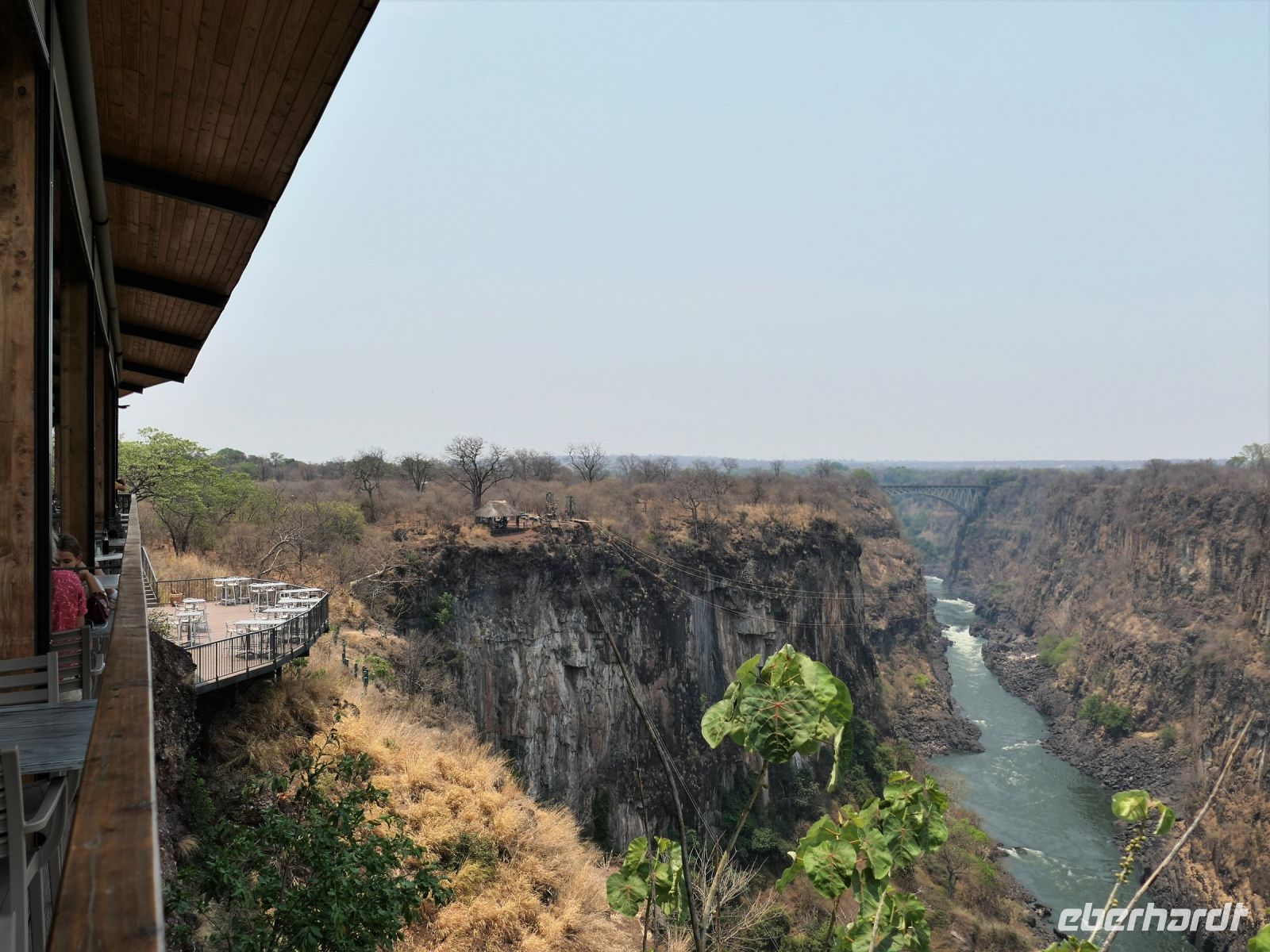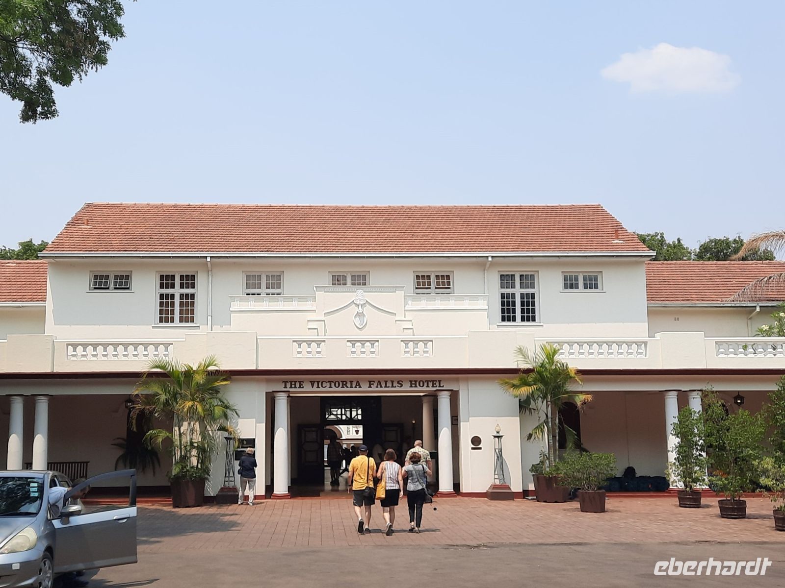 Nach einem ausgiebigen Frühstück fuhren wir zum Nationalpark Victoria Wasserfälle, die zu den 7 Naturwundern zählen. Diese wurden von dem schottischen Missionar und Afrikareisenden Sir David Livingstone 1855 entdeckt, der diese nach der britischen Königin Victoria benannte. Auf einem gut ausgeschilderten Rundgang erkundeten wir die Victoria Wasserfälle auf simbabwischer Seite. 16 verschiedene Aussichtspunkte gibt es auf diesen Rundweg entlang des Mosi oa Tunya (Der Rauch, der donnert), wie die Fälle in der Sprache der Locals heißen Aufgrund der Dürre führten die großen Flüsse nur wenig Wasser, deshalb schossen nur ca. 40 % der sonst üblichen Wassermassen in der Regenzeit über die Kante. Trotzdem war es beeindruckend, diese gigantischen Wasserfälle zu sehen und wir wurden überhaupt nicht nass, da die Gicht nur gut dosiert an einigen Stellen empor stieg. Durch die Gicht entstand ringsherum ein Regenwald, wo wir herrlicher Flora & Fauna. Nach ca. 2 h trafen wir uns wieder und statteten dem ehrwürdigen Victoria Falls Hotel noch einen Besuch. Knapp haben wir den Luxus Zug Rovos Rail verfehlt, der an diesem Tag das erste Mal nach 2019 wieder hier erwartet wurde. Im neuen Look Out Cafe mit Blick auf die Sambesi Schlucht verbrachten wir unsere Mittagspause und sahen wie sich der ein oder andere per Zipline in die Tiefe stürzte. Auf der Rückfahrt zur Lodge machten wir noch am berühmten Livingstone-Baobab halt.