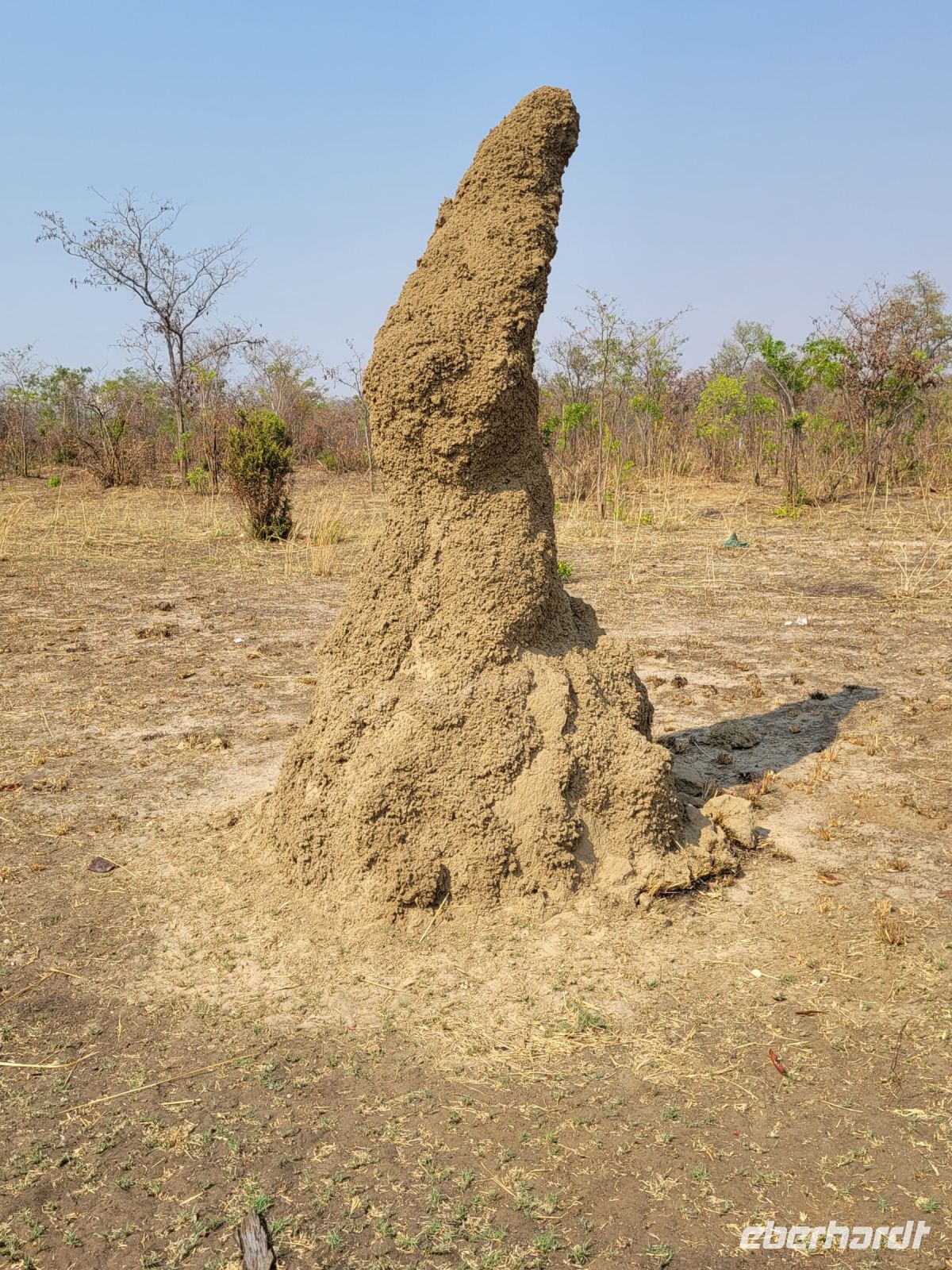 Nach einem erholsamen Schlaf trafen sich alle Gäste bei herrlichstem Wetter zum gemeinsamen Frühstück. Wir verließen Kasane in südlicher Richtung. Wenige Kilometer außerhalb der Stadt machten wir unseren ersten Stopp. An einem ca. 2,50 Meter hohen Termitenhügel erzählte uns unser Reiseleiter Jaco sehr viel über die Lebensweise dieser sehr kleinen Insekten. Wenn man bedenkt, dass so ein Termitenbau ca 2,5 Zentimeter pro Jahr in die Höhe wächst, dann haben wir also an einem rund 100 Jahre alten Bau gestanden. Weiter ging unsere Fahrt, die jetzt des öfteren unterbrochen wurde, sobald vor allem Elefanten am Straßenrand gesichtet wurden. Aber auch Giraffen und Strauße gaben sich die Ehre. Zur Mittagszeit machten wir einen Stopp bei Elephants Sand Reserve, um dort bei einem Picknick eine an einem Wasserloch anwesende Elefantenherde von ca. 15 Tieren zu beobachten. Wir konnten dabei schön sehen, dass es eine Rangliste in der Herde gab, denn die aufmüpfigen jungen Elefanten wurden sehr deutlich von den Älteren zur Ordnung gerufen.