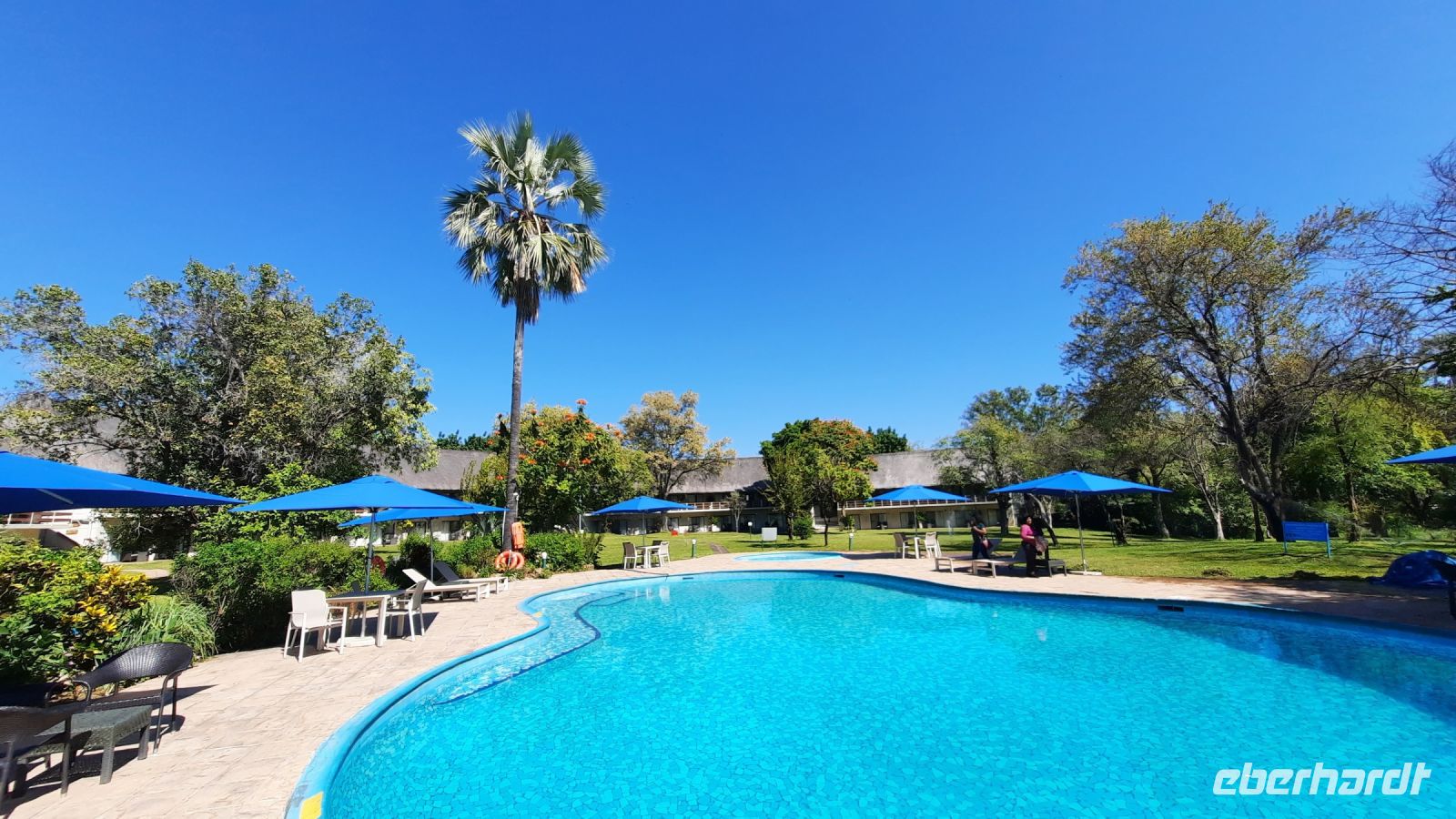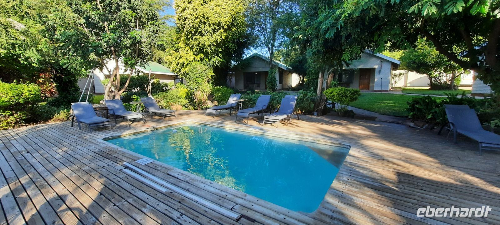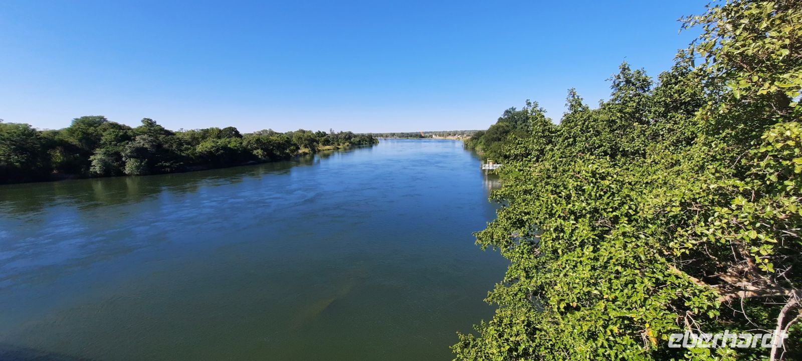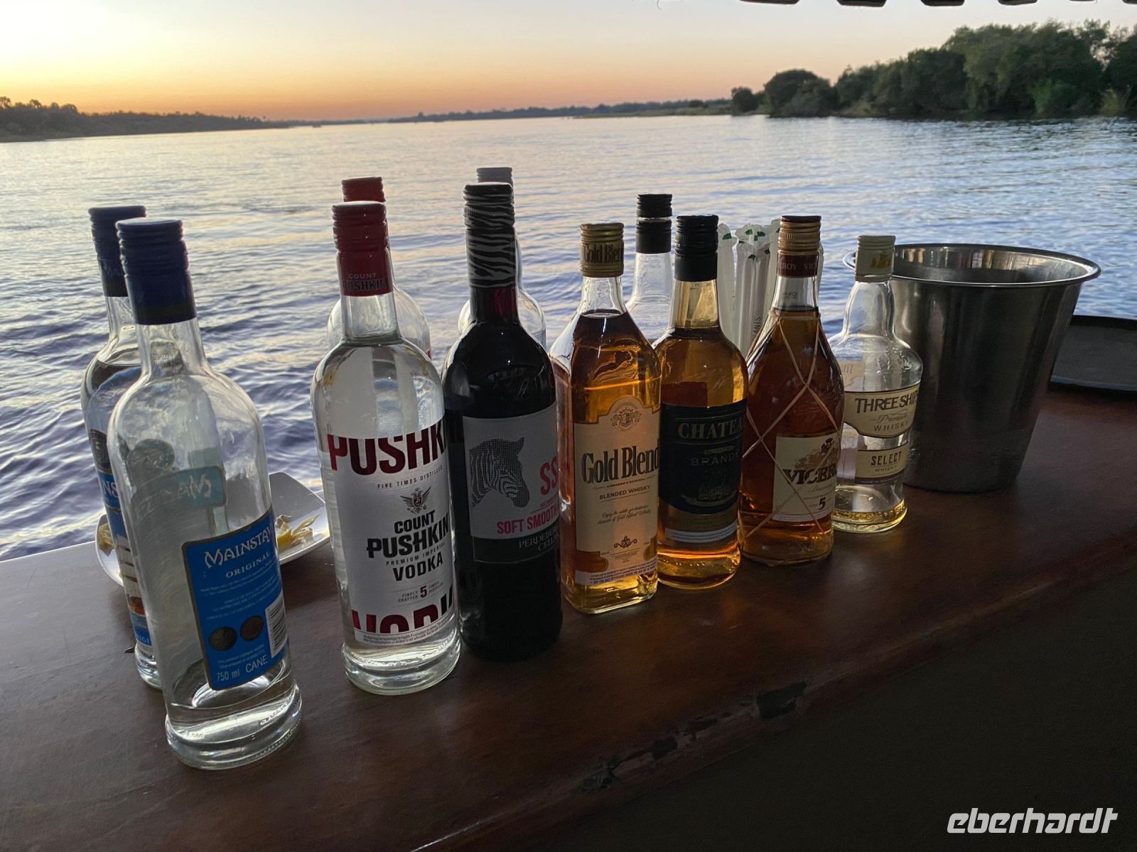 Am Ausgang des Flughafens ins Victoria Falls begrüßte uns Hartmut, unser örtlicher Reiseleiter und zugleich Fahrer. Hartmut ist ein erfahrener Guide und kennt sich bestens in Afrika aus, zumal er in Namibia geboren wurde. Außerdem ist er als Vogelkundler ein echter Experte. auf diesem Gebiet. Draußen begrüßte uns dann auch die strahlende Sonne und wollig warme Temperaturen. Victoria Falls und somit Simbabwe ließen wir vorerst links liegen und fuhren zur Grenze nach Botswana. Flott, Zack, Zack Ausreise Simbabwe - Einreise Botswana dank einer sehr gewissenhaften und dominanten Grenzbeamtin schleppend. Sie wollte Schuhe, Schuhe sehen, obwohl wir ja gerade direkt aus Deutschland eingereist waren. Also erfüllten wir Ihr den Wunsch in unsere Koffer zu schauen, präsentierten unsere Schuhe und liefen über die Seuchenmatte. Mit neuem Stempel und keimfrei wurde uns dann der Einlass nach Botswana gewährt. Kurze Zeit später checkten wir in der familiengeführten River View Lodge bei Kazangula ein. Die kleine Lodge, inmitten eines gepflegten Gartens befindet sich direkt am Chobe Fluss. Den weiteren Tag ließen wir die Seele baumeln und erholten uns vom langen Flug: ein kühler Drink an der Bar, Abkühlung im Pool oder einfach nur Nichtstun. Als die Sonne langsam unterging, trafen wir uns bei Gin & Tonic und besprachen den weiteren Reiseverlauf. In gemütlicher Runde speisten wir zu Abend, bevor wir müde ins Bett fielen.