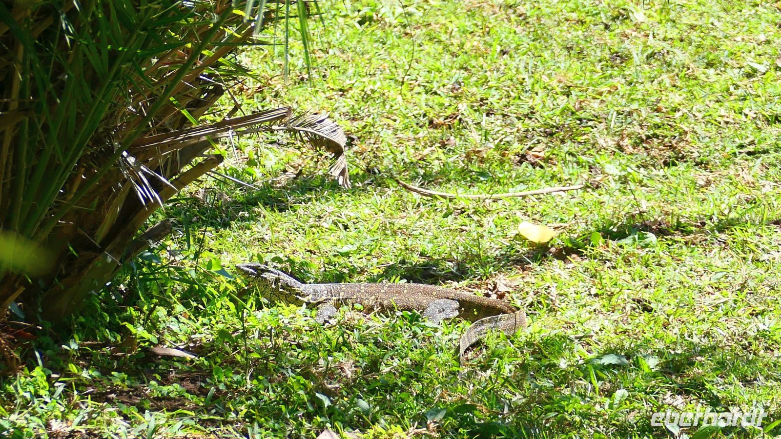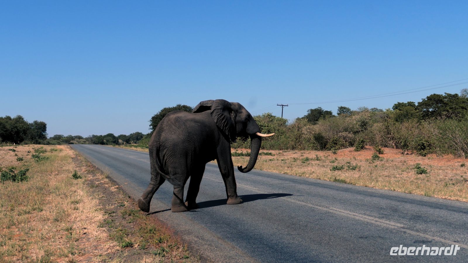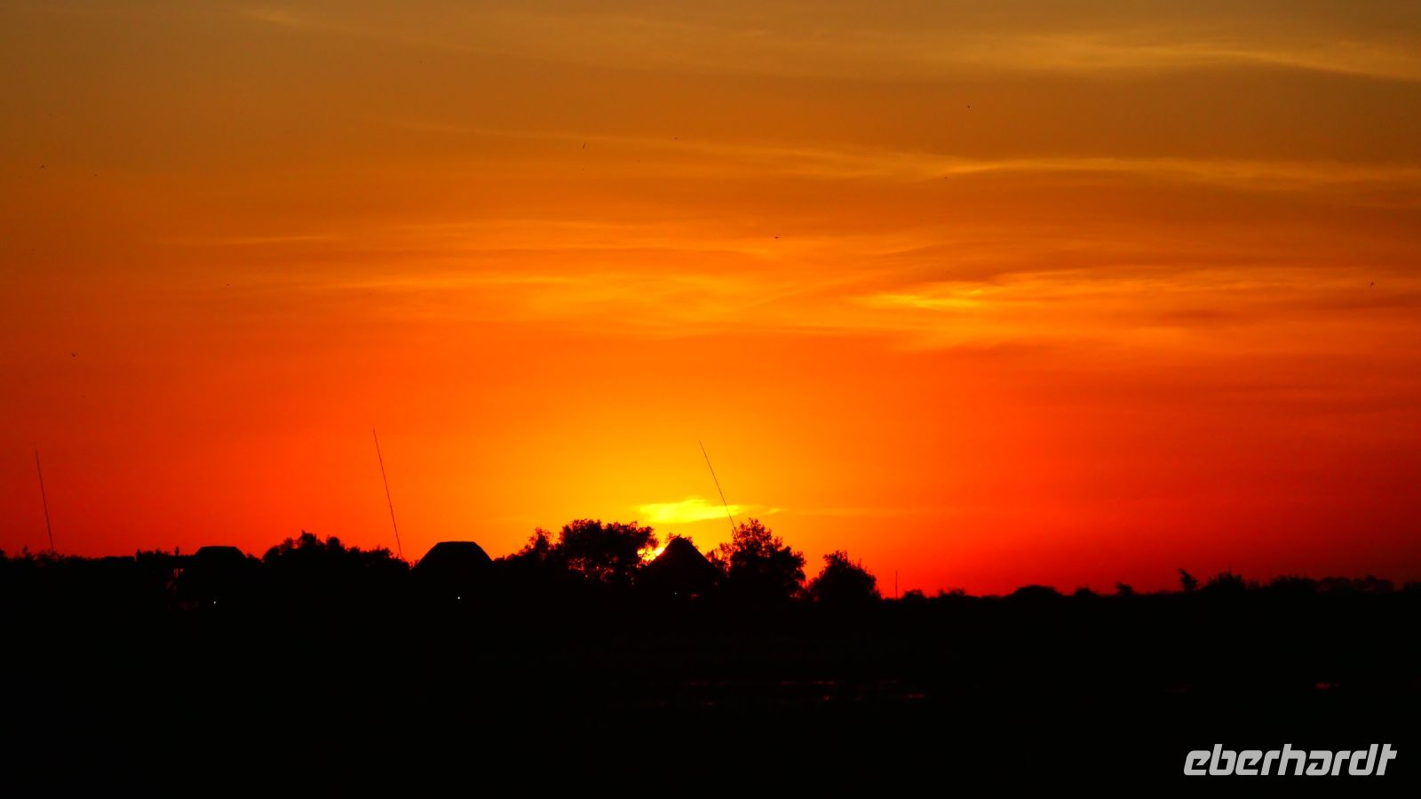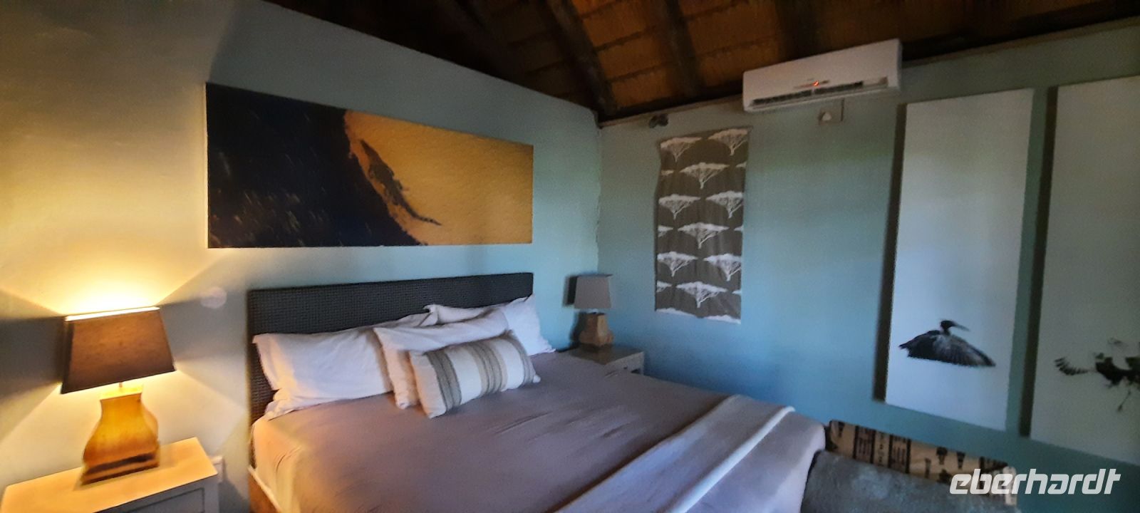Mit unserem Truck ging es heute auf die längste Etappe unserer Reise weiter. Heute umrundeten wir das Okavango Delta am südlichen Rand bis zur westlichen Seite, zum sogenannten Pfannenstil. Die einzigste Verbindung, wenn man nicht eine Fly-In-Safari gebucht hat. Die Straße, die wir zunächst Richtung Westen befuhren, bildet die Grenze zum trockenen Süden, wo das Wasser aus dem Delta in den Salzpfannen endet bzw. verdunstet. Hier befindet sich noch ein letzter, großer See, der Lake Ngami, der vom Wasser aus dem Okavango Delta gespeist wurde, aber nun komplett ausgetrocknet ist. Vor einigen Jahren hatte er noch ganzjährig Wasser, da er in einer Senke des Kalahari-Becken an der Nordgrenze der Wüste liegt. Obwohl alles flach und eben, befinden wir uns fast 1.000 m über den Meerspiegel. Später bogen wir nach Norden (Richtung Namibia) ab und die Straße wurde zunehmender dirty - Schweizer Käse Road, wo nun endlich Bauarbeiten beginnen! Unter einem Schattenbaum halten wir für ein schnelles Picknick. Am Nachmittag erreichten wir die idyllisch am Okavango River (kurz oberhalb des Pfannenstiels) gelegene Shakawe River Lodge, die wir wieder für uns exklusiv bewohnten. Nach der staubtrockenen Landschaft empfing uns hier eine saftig grüne Flusslandschaft mit Papyrus und Rietgras. Eine traumhafte Location, in der wir freundlich von den Mitarbeitern begrüßt wurden. Die klimatisierten Steinhäuschen waren geräumig und komfortabel. Am späteren Nachmittag starteten wir zu einer Bootsfahrt. Santos, unser Kapitän begeisterte uns für die Schönheit der Region und die Tierwelt: Graufischer (Eisvogel), Bienenfresser (Weißstirnspint), Krokodil & Co. Und ein pfeifender Ruf: ein Schreiseeadler kam rasant angeflogen, um den präsentierten Fisch zu erhaschen. Mit dem passenden Getränk in der Hand erlebten wir auch hier einen magischen Sonnenuntergang. Zum Thema passende Getränke: Am Abend wollten Reisegäste mit uns auf ihr besonderes Jubiläum anstoßen, doch die schöne Bar war nur spärlich bestückt. Auch Hartmuts Suche nach mehr Wein, Bubbles und Tonic (braucht man nun mal zum Gin) war nicht erfolgreich. Schade, gern hätten wir nach dem Abendessen noch gemütlich am Lagerfeuer gesessen und für Umsatz gesorgt. Die freundlichen Mitarbeiter konnten nichts dafür, da hat eindeutig das Management versagt. Also gingen wir früher zu Bett, die Hippos grunzten genüsslich, in der Ferne trötete ein Elefant und den Umtrunk zum Jubiläum verschoben wir auf den nächsten Tag.