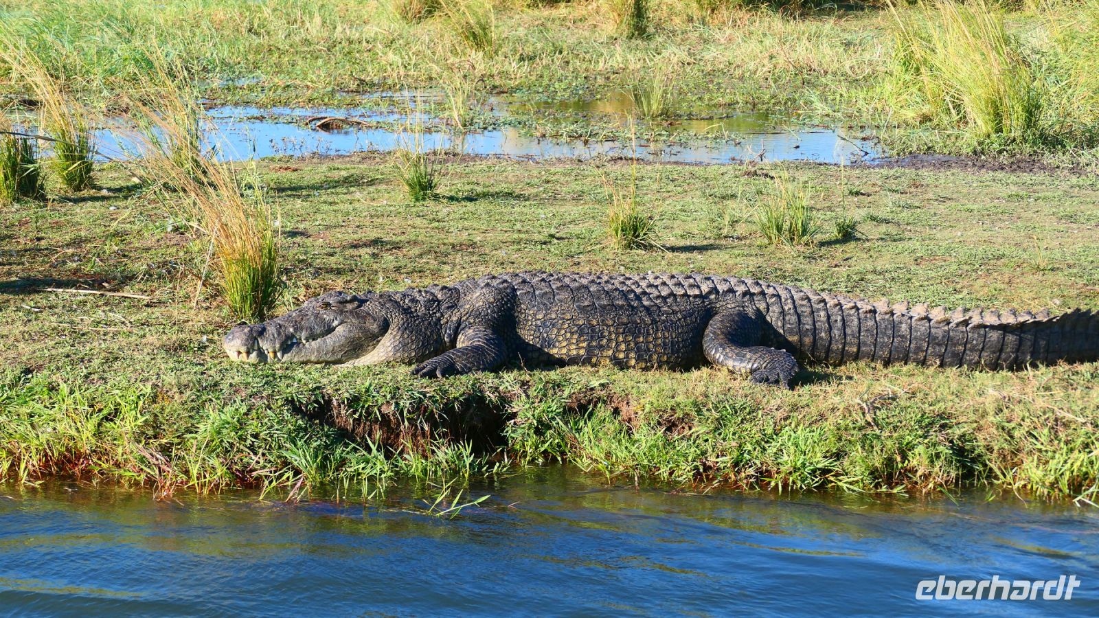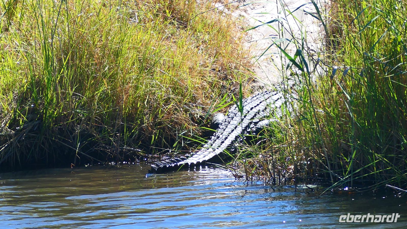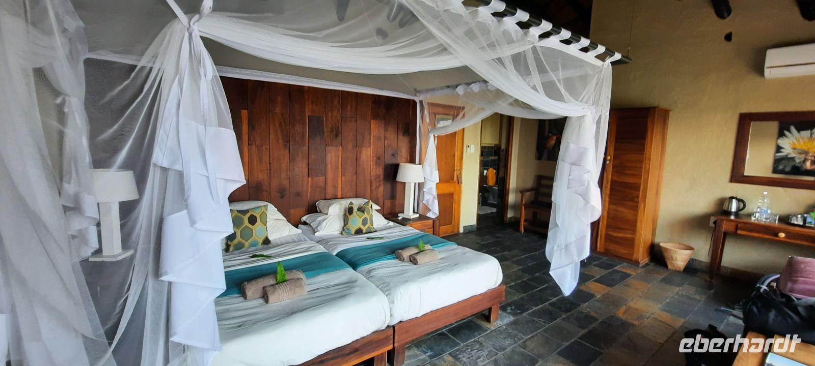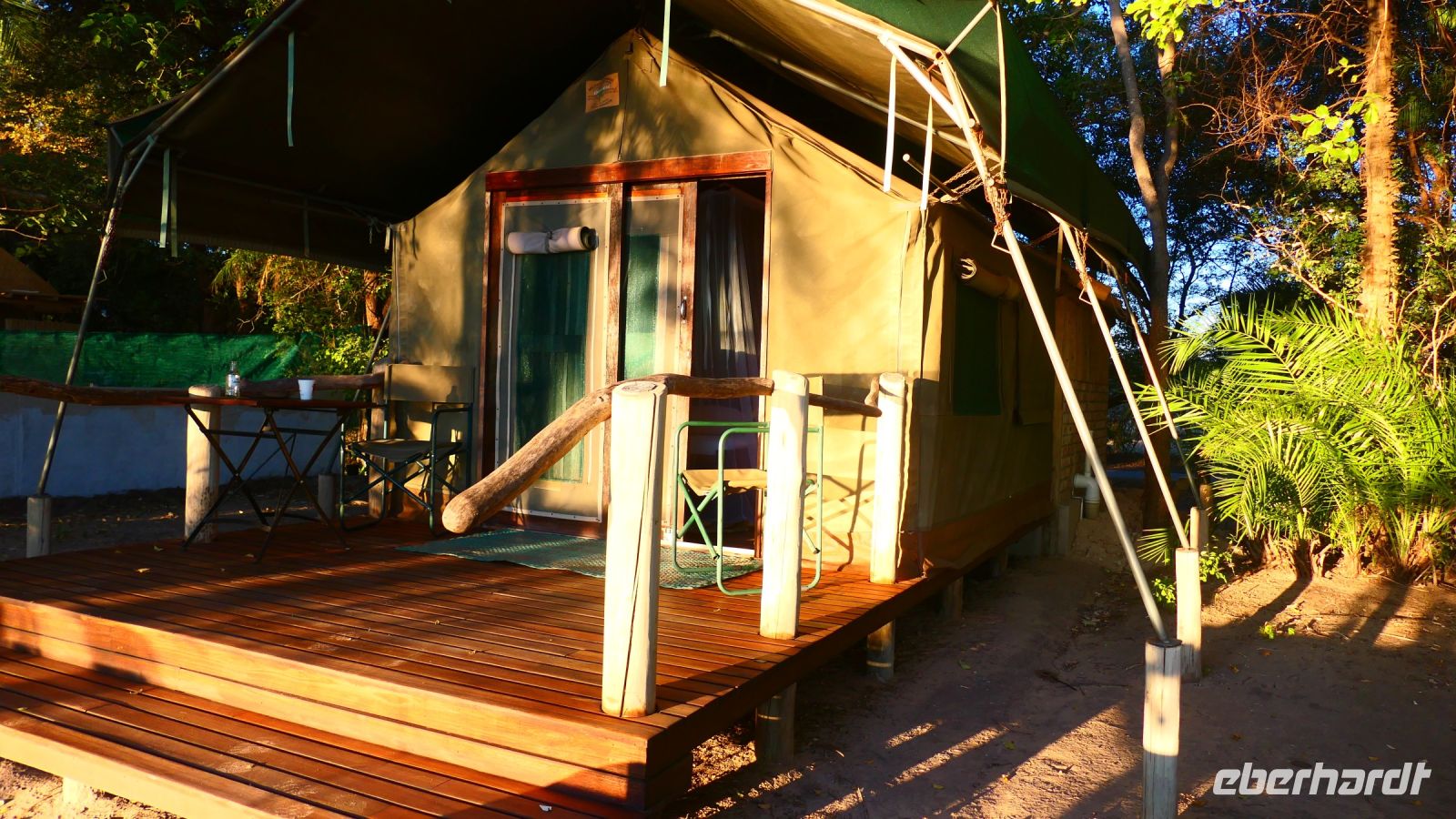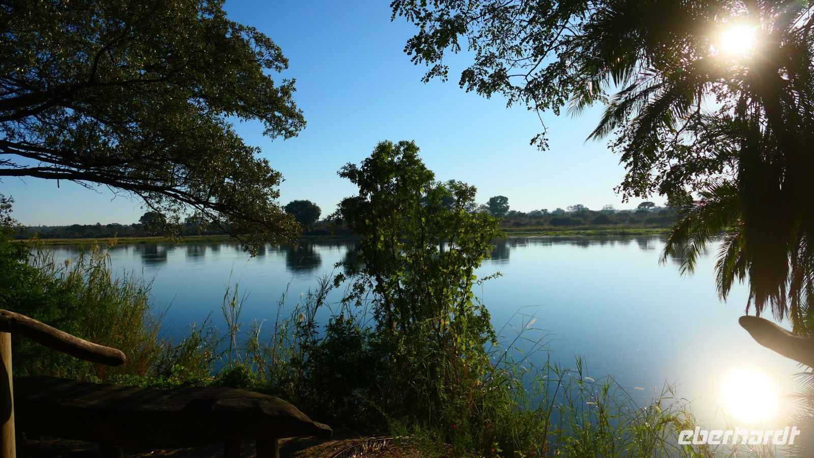 entspringt und später in den Sambesi fließt. Am Unterlauf (an der Grenze zu Botswana Delta) wird der Fluss dann Linyanti und später Chobe genannt - 3 Namen für einen Fluss. Wenn der Sambesi zu viel Wasser führt, ändert der Kwando/Linyanti/Chobe seine Richtung und fließt wieder zurück. Am frühen Nachmittag checkten wir für die nächsten beiden Nächte in die wildromantische Namushasha Lodge am Ufer des Kwando ein. Von unseren Terrassen konnten wir alsbald Flusspferde und Krokodile beobachten, auf den Dächern beobachten Ibise uns. Vorsicht vor Hippos & Crocs angesagt! In der freien Zeit bis zum Abendessen war Relaxen angesagt, beim Durchstreifen des wunderschönen Gartens oder auf der Aussichtsterrasse bei einem kühlen Getränk. Am Abend bedienten wir uns am super leckeren Buffet, genossen den lauen Sommerabend auf der Terrasse unterm Sternenzelt.