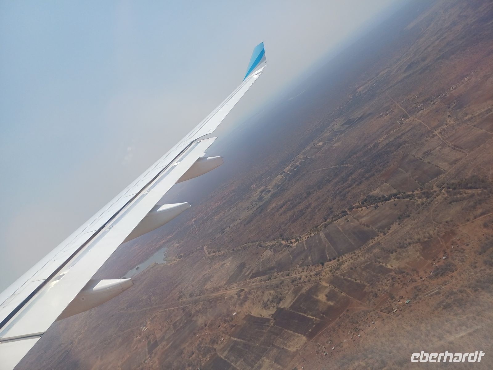 Mit Eurowings Discover ging es am Abend von Frankfurt nach Windhoek. Vor dem Weiterflug nach Vic Falls gab es neuen Sprit und die Crew wurde gewechselt. Wir machten es uns in dem fast leeren Flugzeug bequem.