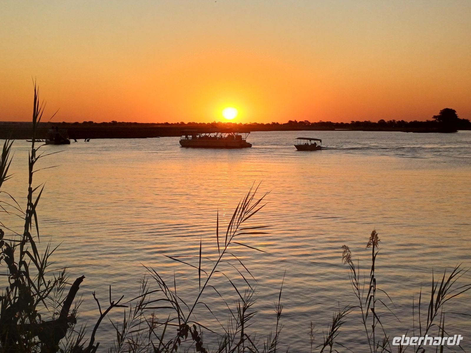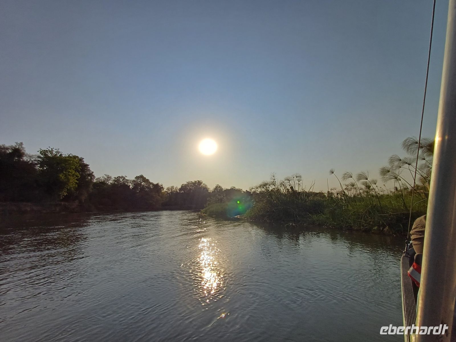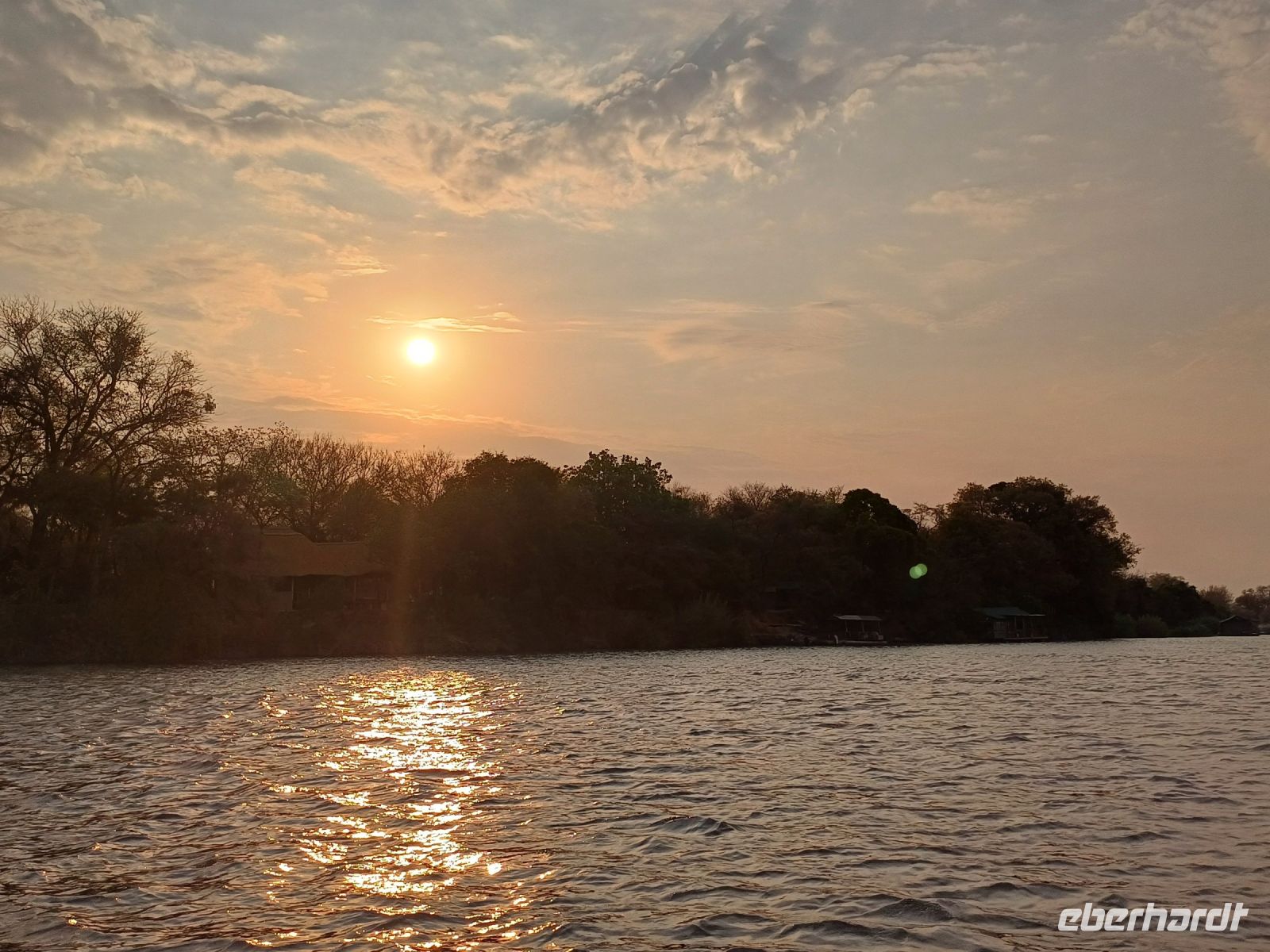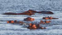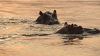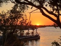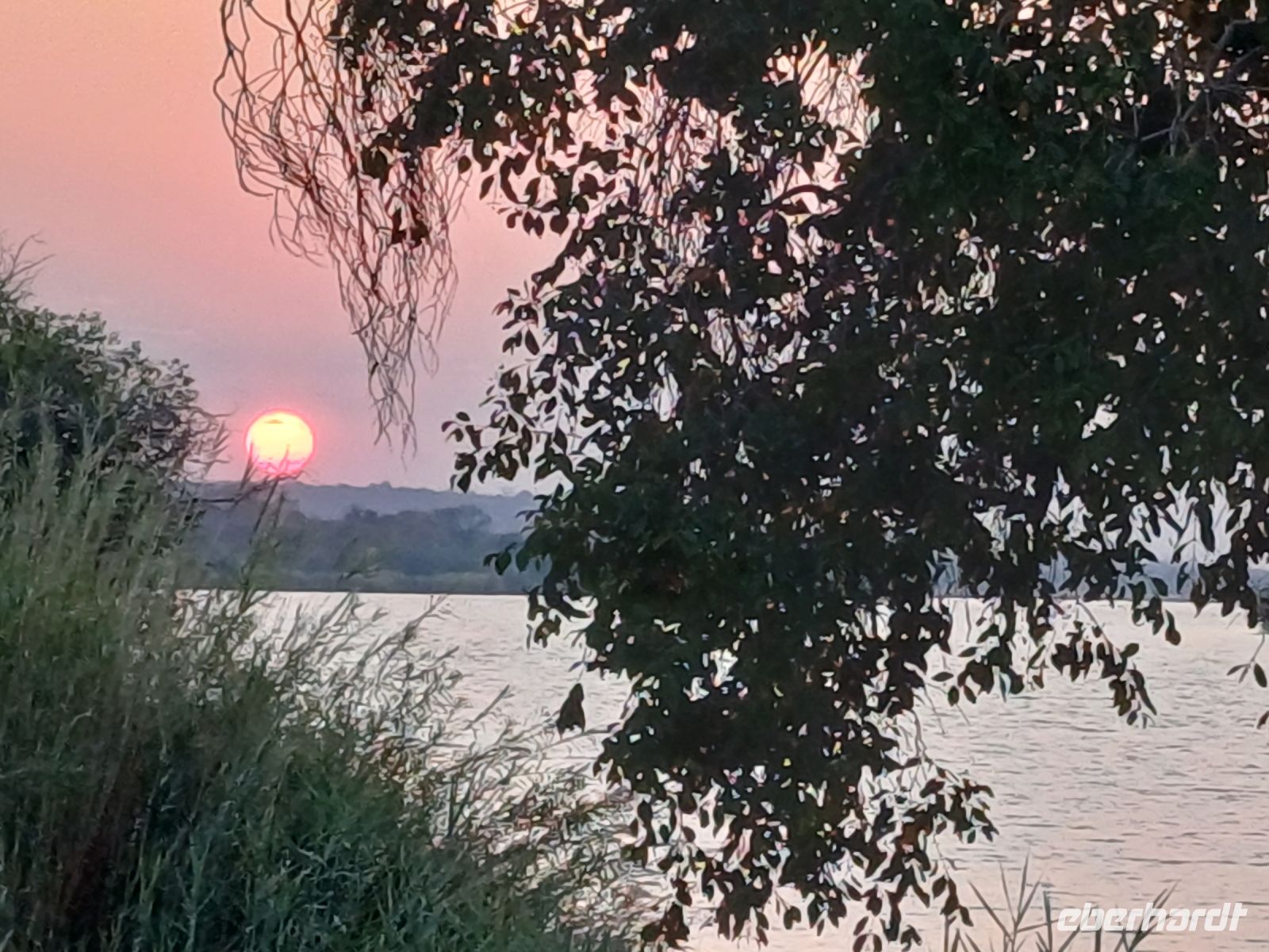 Kurz frisch machen und schon wartete der 5minütige !!! Transfer zur unserer letzten Bootstour auf uns. Auf dem Sambesi zwischen Sambia & Simbabwe schipperten wir in den Sonnenuntergang. Bei leckeren Snacks und kalten Getränken beobachteten wir zum letzten mal (so dachten wir) Krokodile, Hippos und Elefanten.