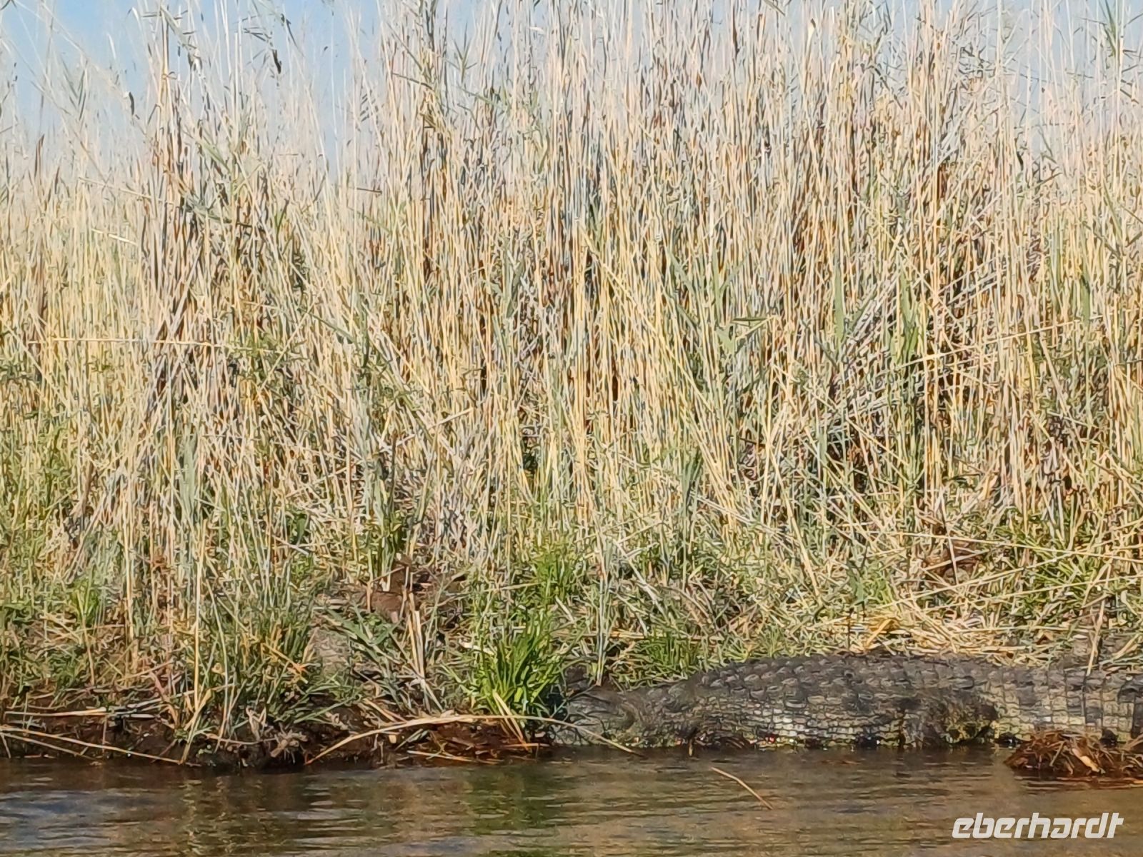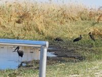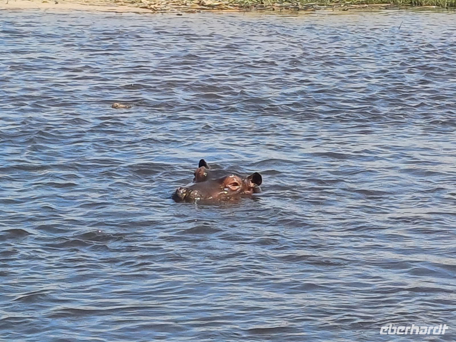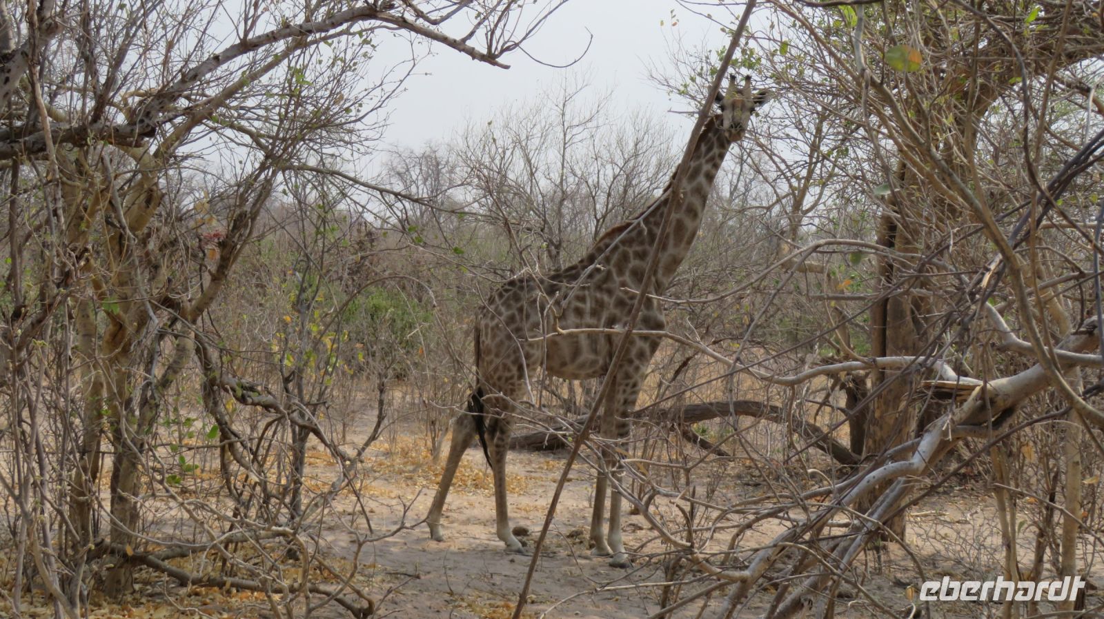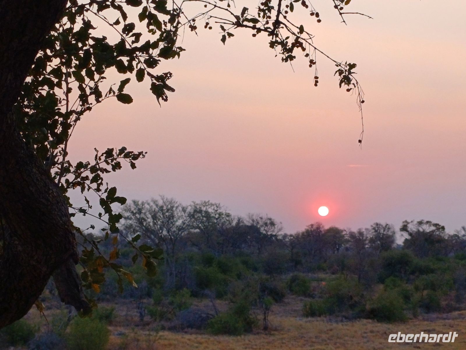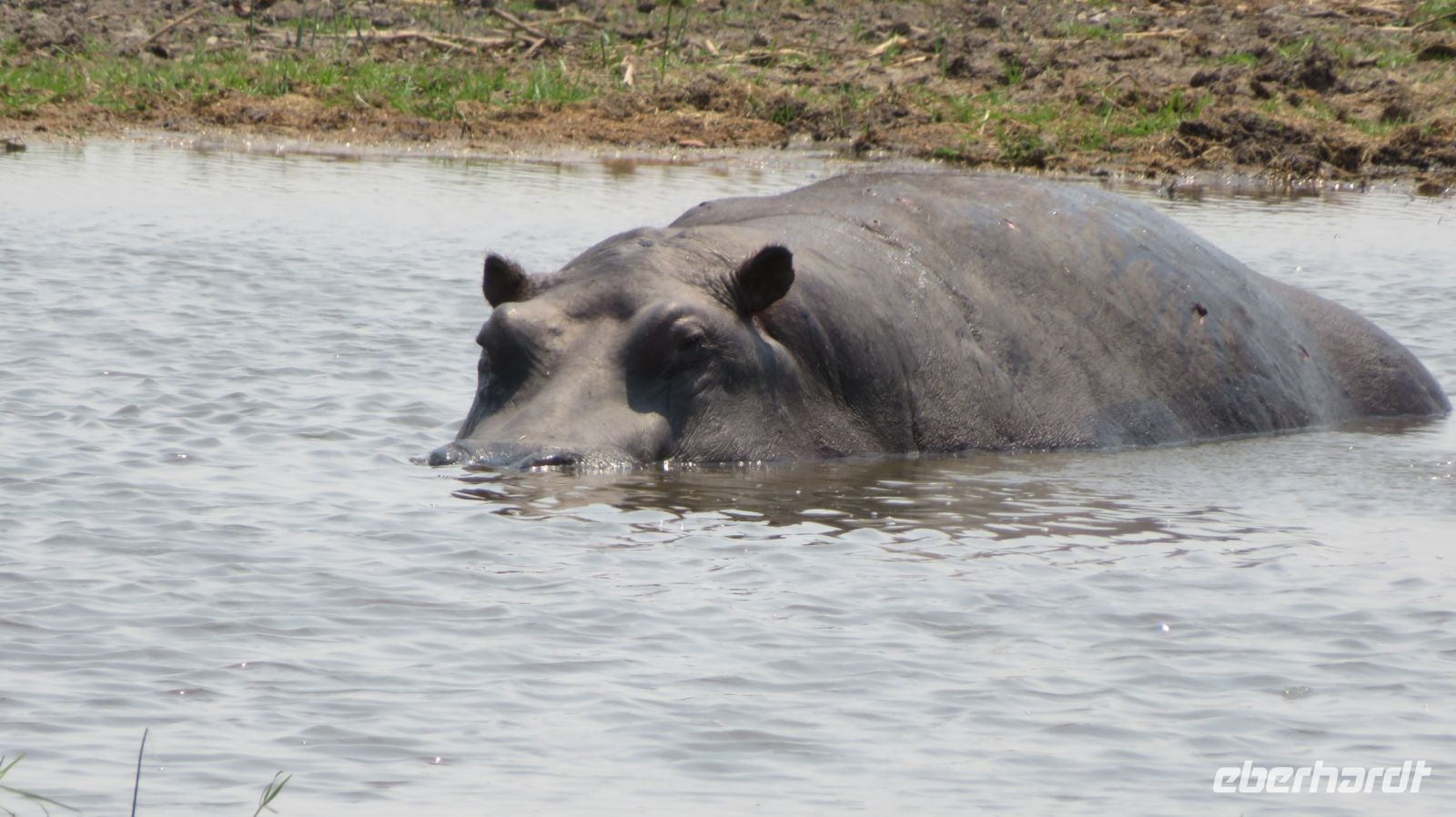 Heute standen Pirschfahrten per Boot und per Jeep auf dem Programm. Am Morgen ging es zur Bootstour auf dem Sambesi. Durch den fehlenden Regen hatte dieser nicht viel Wasser und deshalb konnten wir mit unserem Böötchen nicht in alle Seitenarme. Wir konnten aber trotzdem viele Tiere entdecken - Krokodile, Warane, Buschböcke mit Nachwuchs,, Schlangenhalsreiher, Geier und eine Vielzahl einheimischer Vögel. Am Nachmittag stand die Jeep-Safari auf dem Programm. Wer vorher noch Lust hatte konnte mit Jaco und mir einen kleine Wanderung entlang des den Flussarmes bis zum Namushasha-Herritage Center unternehmen. Wir entdeckten wieder Krokodile, Hippos, allerlei Vögel und an interessanten Informationstafeln waren die hier lebenden Tiere beschrieben. Am Nachmittag startete unsere Jeep-Safari in den Sonnenuntergang erst einmal per Boot zu den bereitstehenden Jeeps. Unseren Weg kreuzten Giraffen, Antilopen, Zebras, Marabus, Impalas, Hippos, jede Menge Elefanten auf dem Weg zum Wasser oder zurück und viele Vögel. Leider haben wir von den hier lebenden Löwen nur die Spuren entdecken können. Der nahende Sonnenuntergang stoppte unsere Suche. Sobald die Sonne am Horizont verschwunden ist mussten wir wieder in der Lodge sein. Schade. Bei einem schönen Abendessen unterm Sternenhimmel endete ein wieder erlebnisreicher Happy Day.