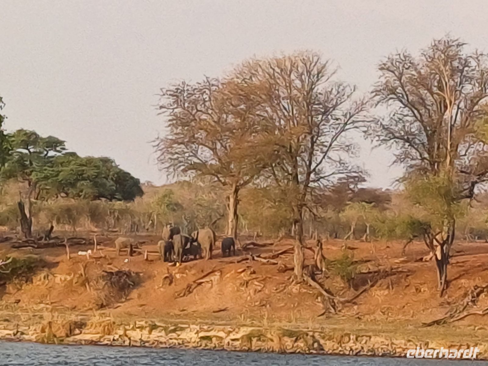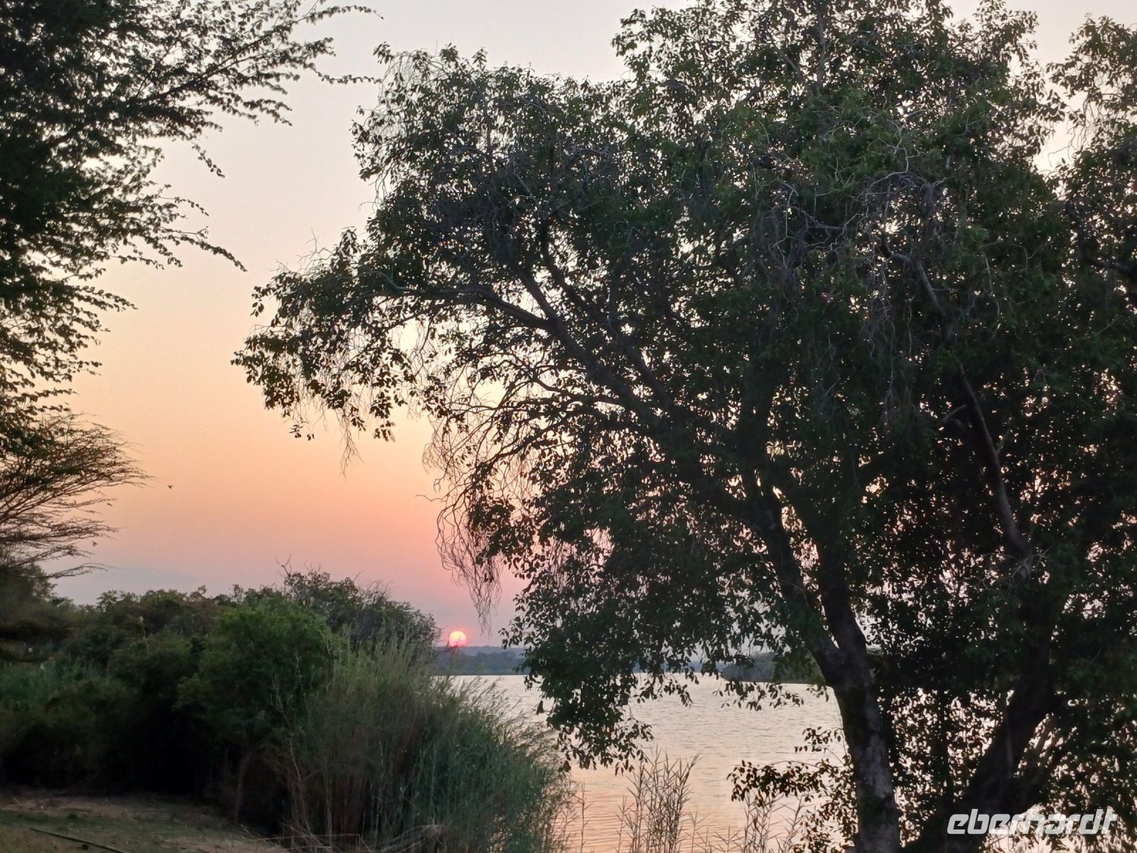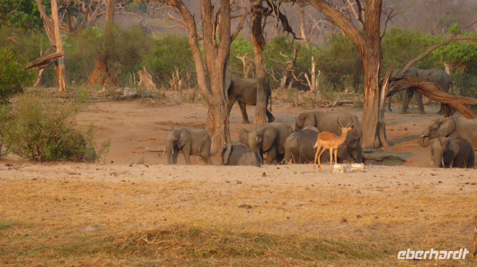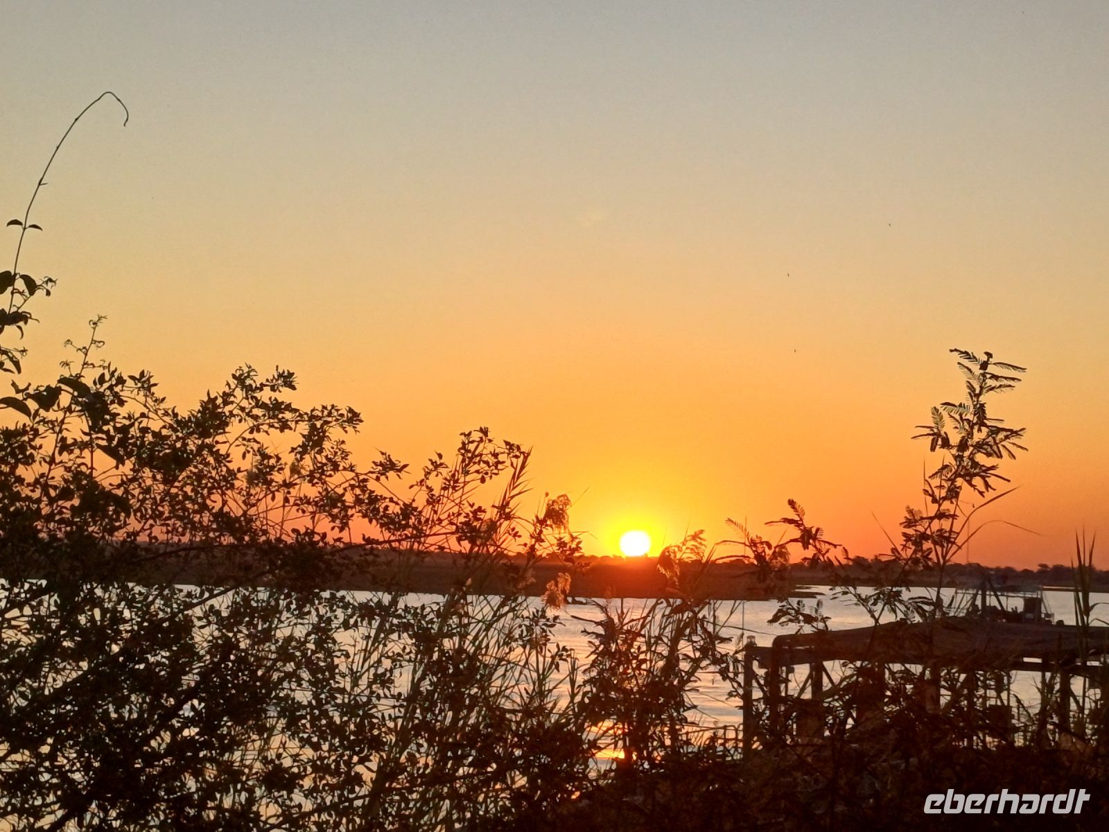 Heute standen Pirschfahrten per Boot und per Jeep auf dem Programm. Am Morgen ging es zur Bootstour auf dem Sambesi. Durch den fehlenden Regen hatte dieser nicht viel Wasser und deshalb konnten wir mit unserem Böötchen nicht in alle Seitenarme. Wir konnten aber trotzdem viele Tiere entdecken - Krokodile, Warane, Buschböcke mit Nachwuchs,, Schlangenhalsreiher, Geier und eine Vielzahl einheimischer Vögel. Am Nachmittag stand die Jeep-Safari auf dem Programm. Wer vorher noch Lust hatte konnte mit Jaco und mir einen kleine Wanderung entlang des den Flussarmes bis zum Namushasha-Herritage Center unternehmen. Wir entdeckten wieder Krokodile, Hippos, allerlei Vögel und an interessanten Informationstafeln waren die hier lebenden Tiere beschrieben. Am Nachmittag startete unsere Jeep-Safari in den Sonnenuntergang erst einmal per Boot zu den bereitstehenden Jeeps. Unseren Weg kreuzten Giraffen, Antilopen, Zebras, Marabus, Impalas, Hippos, jede Menge Elefanten auf dem Weg zum Wasser oder zurück und viele Vögel. Leider haben wir von den hier lebenden Löwen nur die Spuren entdecken können. Der nahende Sonnenuntergang stoppte unsere Suche. Sobald die Sonne am Horizont verschwunden ist mussten wir wieder in der Lodge sein. Schade. Bei einem schönen Abendessen unterm Sternenhimmel endete ein wieder erlebnisreicher Happy Day.