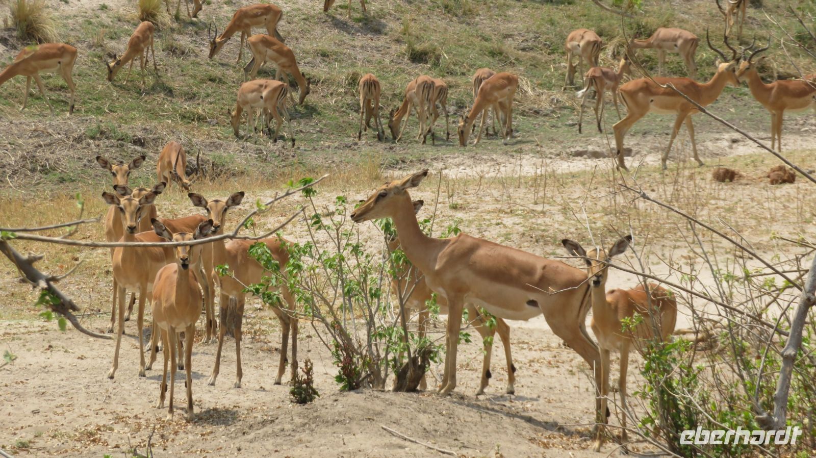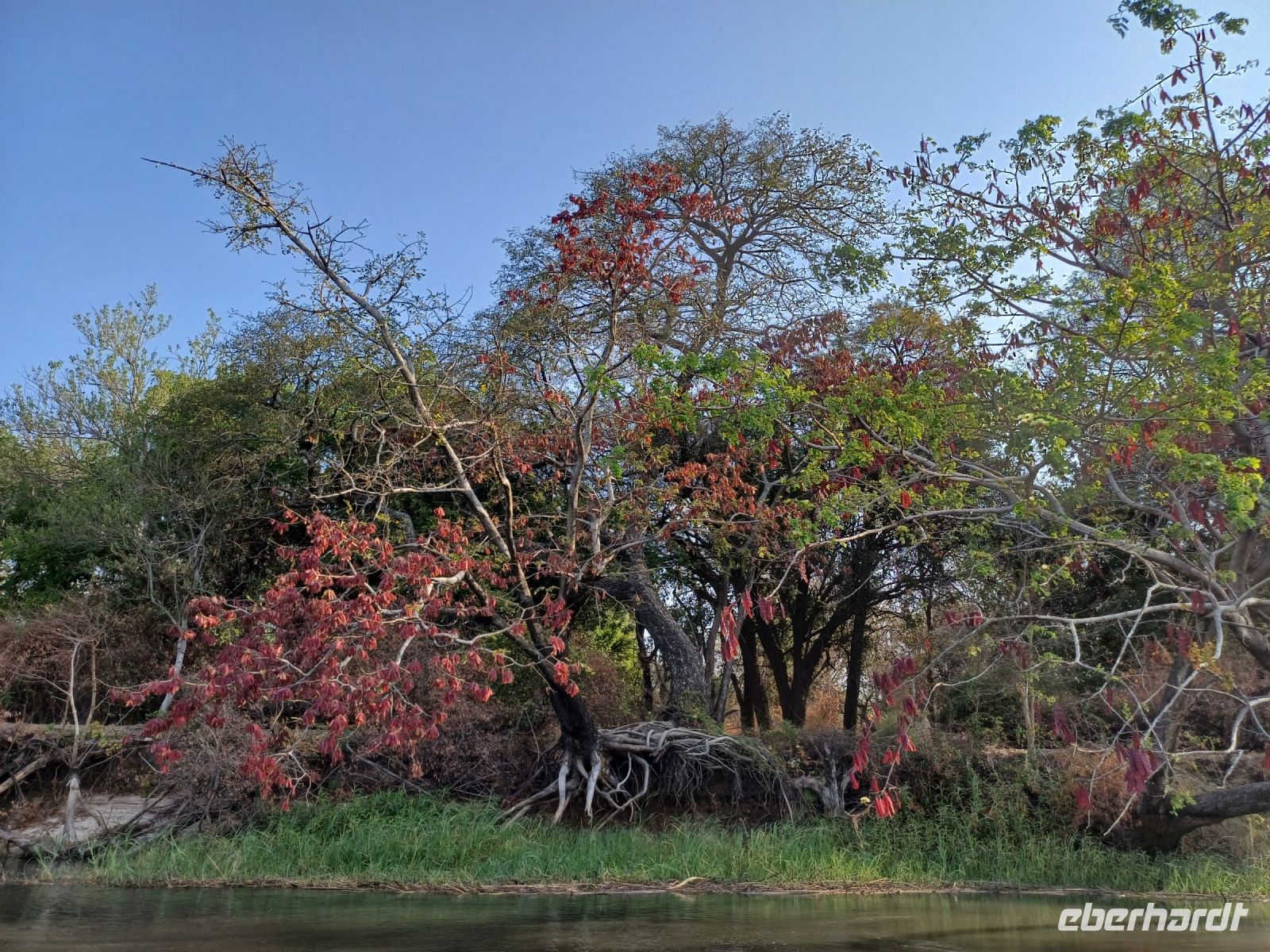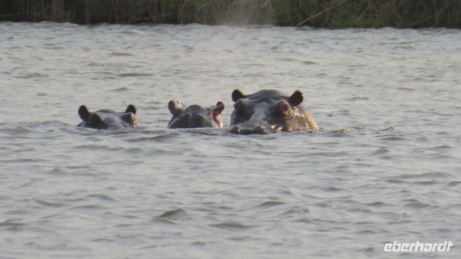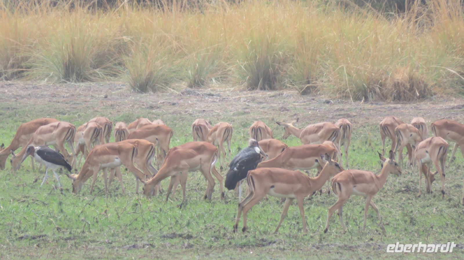 Heute standen Pirschfahrten per Boot und per Jeep auf dem Programm. Am Morgen ging es zur Bootstour auf dem Sambesi. Durch den fehlenden Regen hatte dieser nicht viel Wasser und deshalb konnten wir mit unserem Böötchen nicht in alle Seitenarme. Wir konnten aber trotzdem viele Tiere entdecken - Krokodile, Warane, Buschböcke mit Nachwuchs,, Schlangenhalsreiher, Geier und eine Vielzahl einheimischer Vögel. Am Nachmittag stand die Jeep-Safari auf dem Programm. Wer vorher noch Lust hatte konnte mit Jaco und mir einen kleine Wanderung entlang des den Flussarmes bis zum Namushasha-Herritage Center unternehmen. Wir entdeckten wieder Krokodile, Hippos, allerlei Vögel und an interessanten Informationstafeln waren die hier lebenden Tiere beschrieben. Am Nachmittag startete unsere Jeep-Safari in den Sonnenuntergang erst einmal per Boot zu den bereitstehenden Jeeps. Unseren Weg kreuzten Giraffen, Antilopen, Zebras, Marabus, Impalas, Hippos, jede Menge Elefanten auf dem Weg zum Wasser oder zurück und viele Vögel. Leider haben wir von den hier lebenden Löwen nur die Spuren entdecken können. Der nahende Sonnenuntergang stoppte unsere Suche. Sobald die Sonne am Horizont verschwunden ist mussten wir wieder in der Lodge sein. Schade. Bei einem schönen Abendessen unterm Sternenhimmel endete ein wieder erlebnisreicher Happy Day.