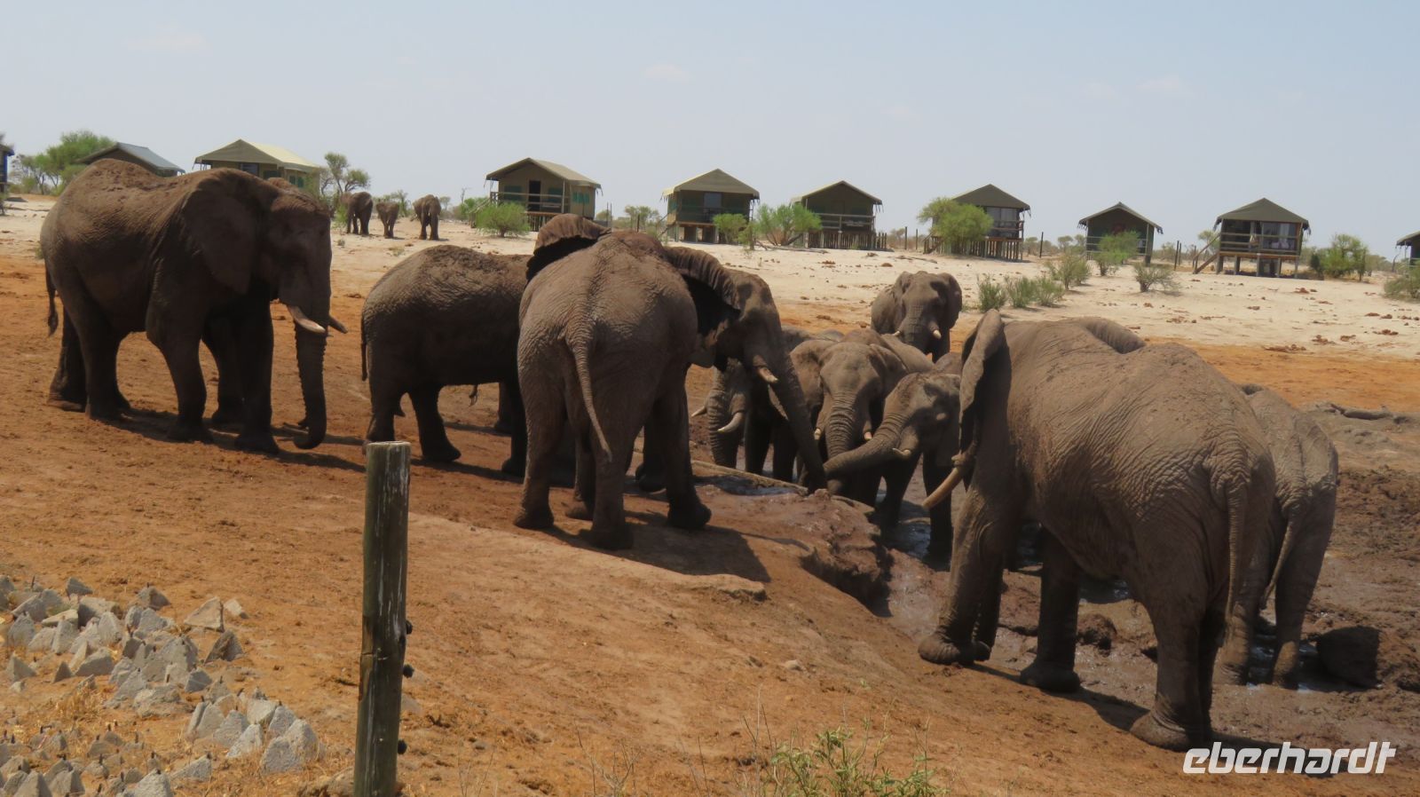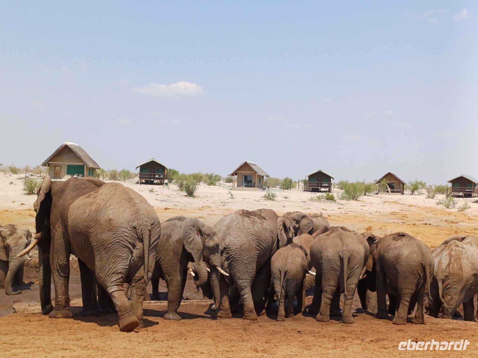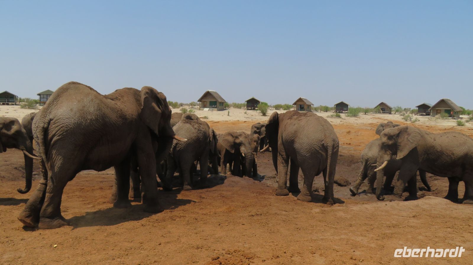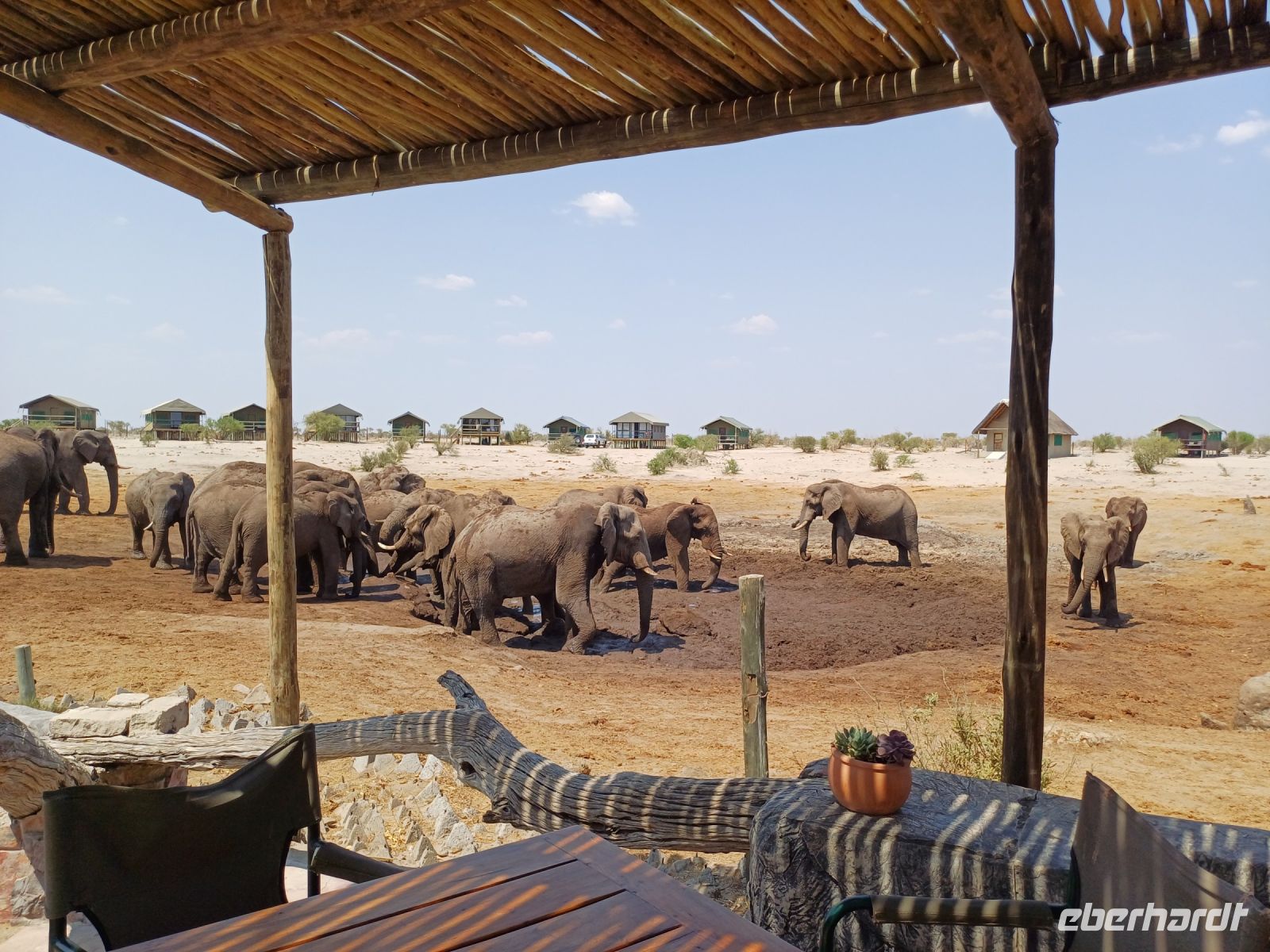 Zum gemeinsamen Abendessen und beim abschließenden gemeinsamen Beisammensein ließen wir unsere die wunderschöne Reise revue passieren. Plötzlich Unruhe im Hotel - eine Elefanten Herde kam an der Bar vorbei um Ihren Durst im Pool zu stillen. Nun mußten wir uns von Jaco verabschieden, der am nächsten Tag schon sehr früh in Richtung Windhoek aufbrach.