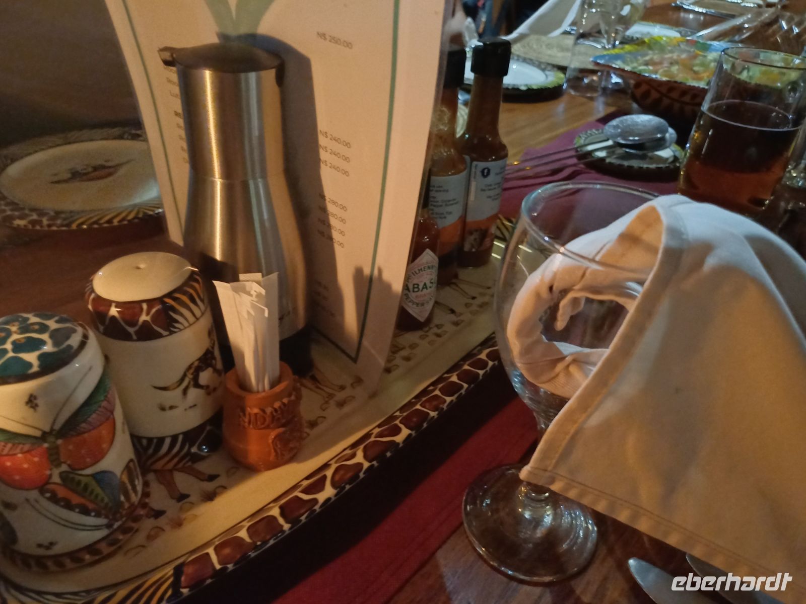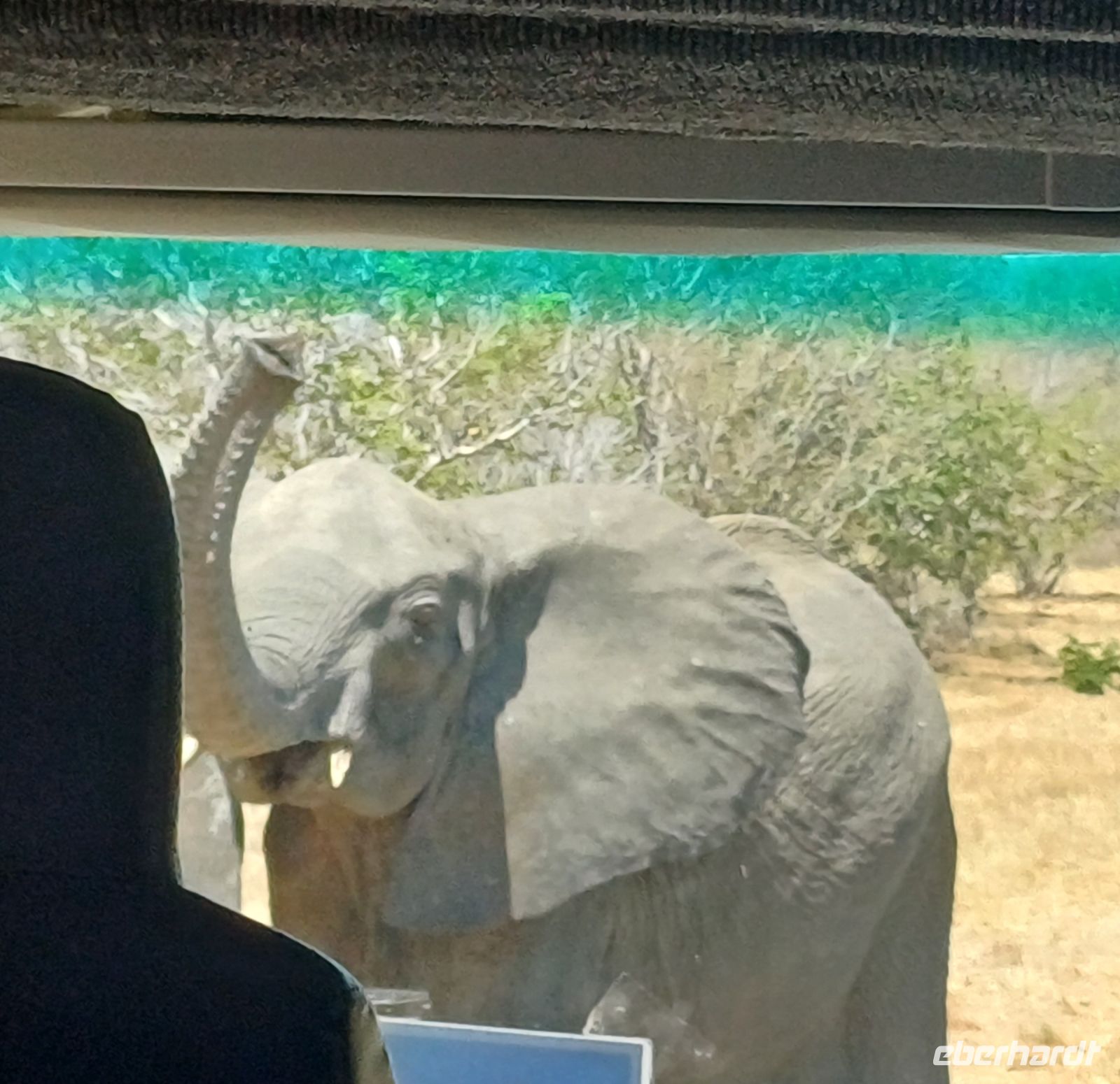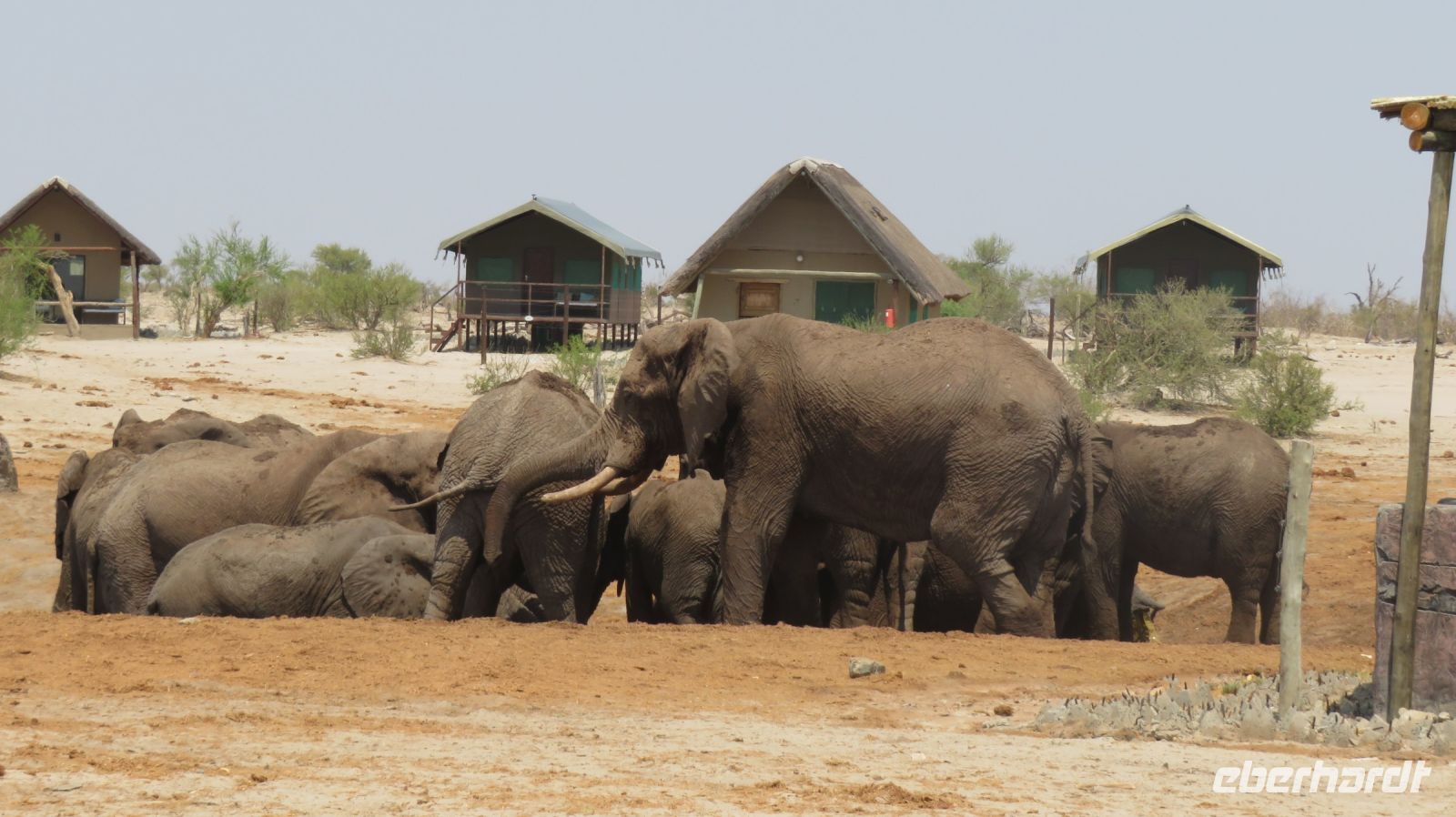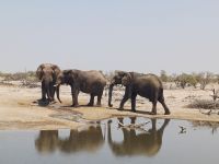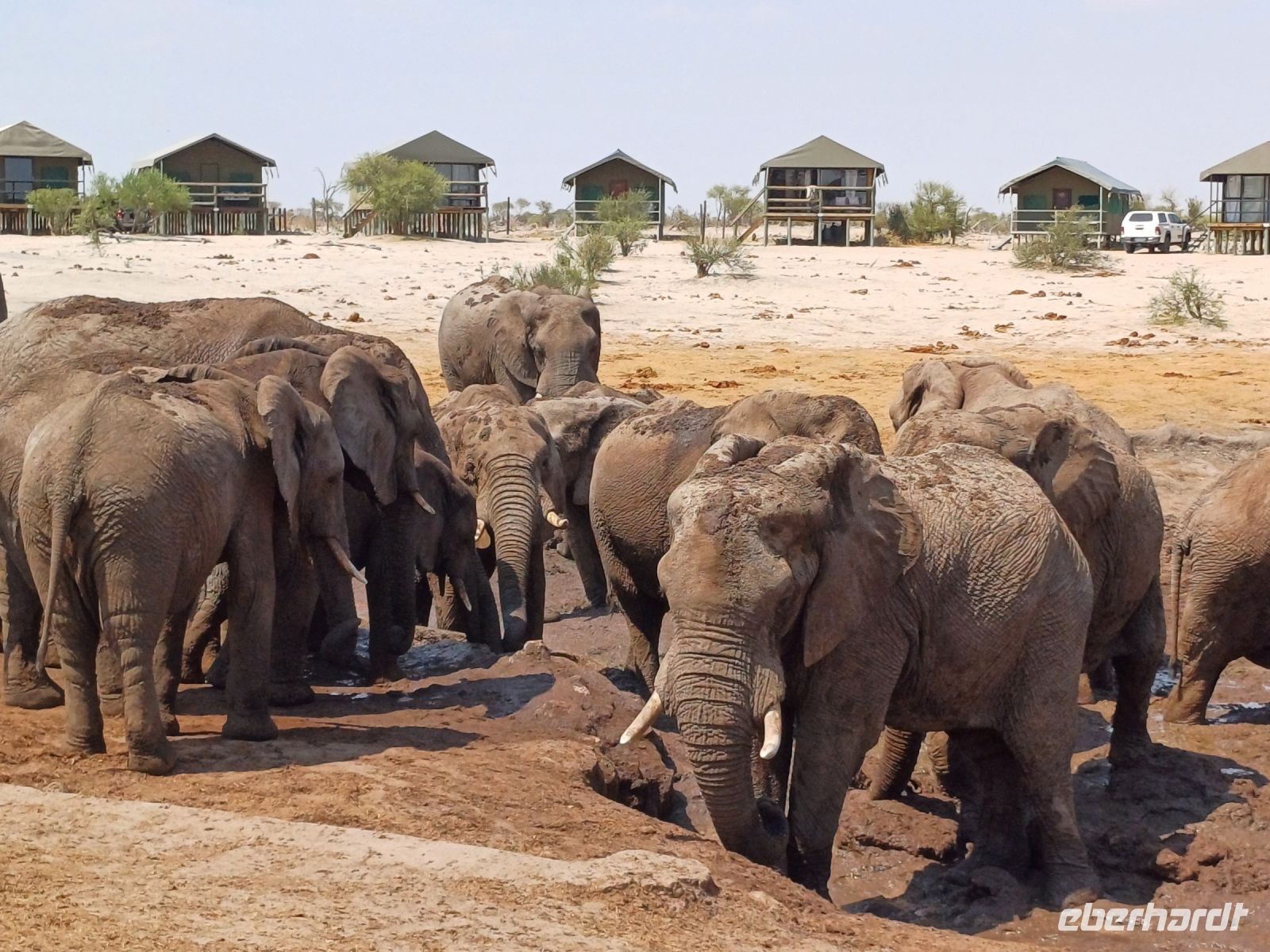 Zum gemeinsamen Abendessen und beim abschließenden gemeinsamen Beisammensein ließen wir unsere die wunderschöne Reise revue passieren. Plötzlich Unruhe im Hotel - eine Elefanten Herde kam an der Bar vorbei um Ihren Durst im Pool zu stillen. Nun mußten wir uns von Jaco verabschieden, der am nächsten Tag schon sehr früh in Richtung Windhoek aufbrach.
