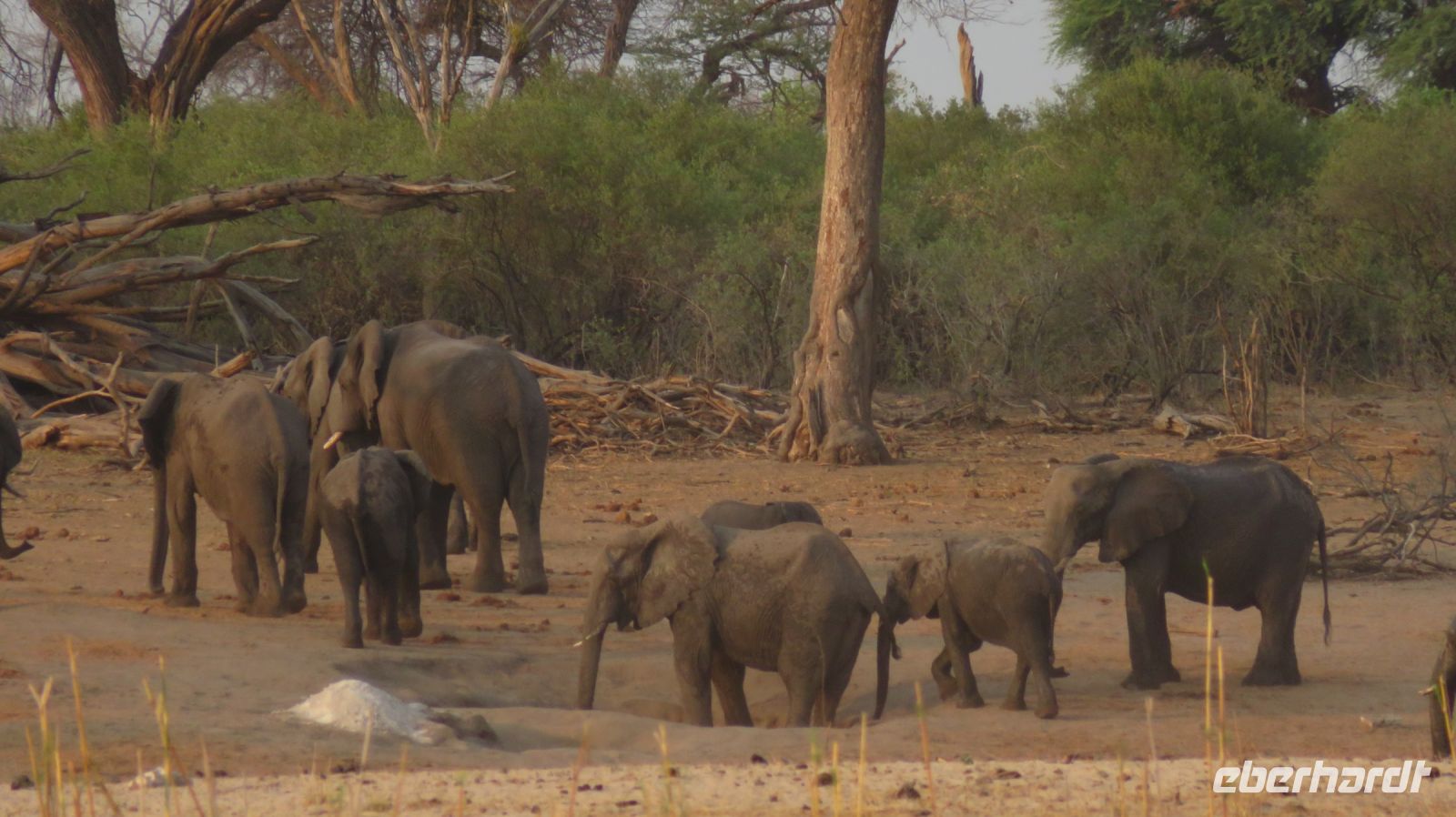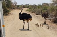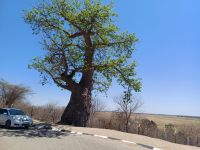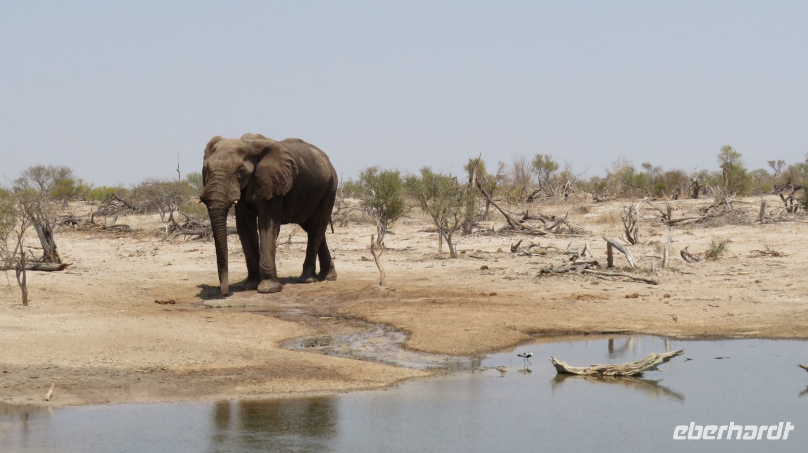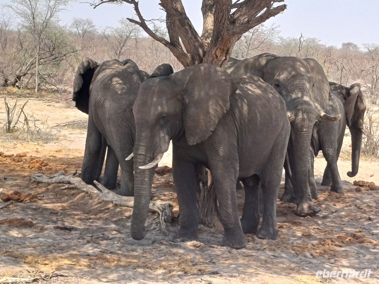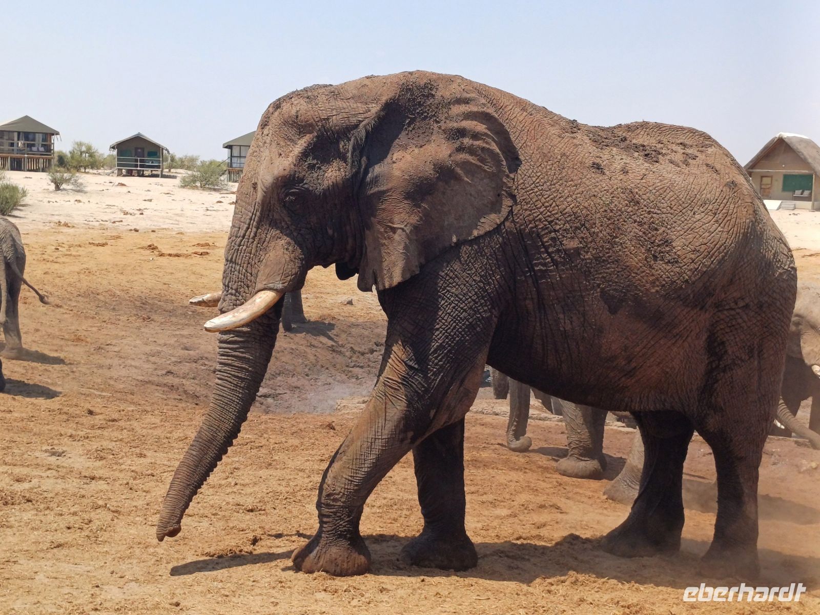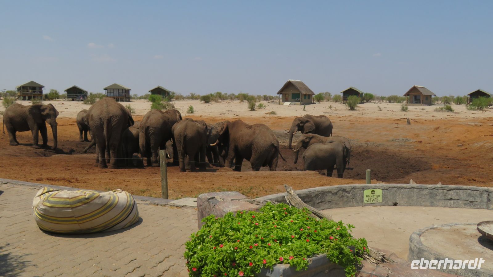 Nach einem ausgiebigen Frühstück ging unsere Entdeckungsfahrt weiter in Richtung Nata. Es ist schon ein Träumchen wenn am Straßenrand plötzlich Elefanten, Giraffen oder Strauße zu sehen sind. Ein Fotostopp folgte dem Nächsten. Gegen Mittag erreichten wir das Elephants Sand Reserve. Beim Picknick am Wasserloch konnten wir eine große Elefantenherde beobachten. Es war hoch interessant die aufmüpfigen kleinen Elefanten von den Älteren zur Ordnung gerufen wurden. Wir waren uns einig hier hätten wir gern übernachtet um dem Elefantentreiben zuzusehen.