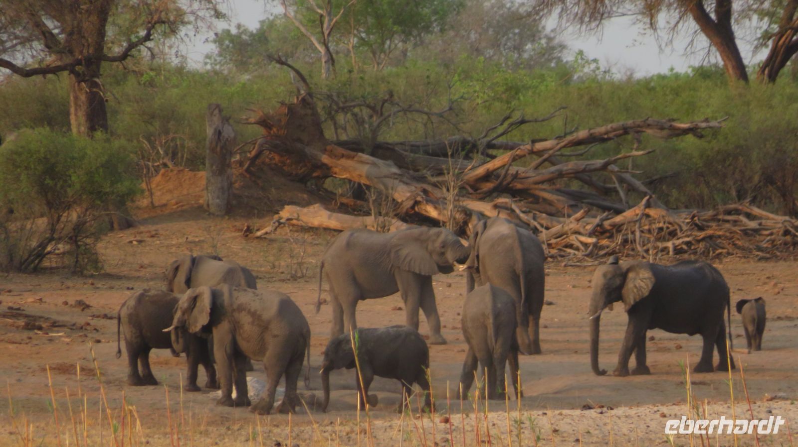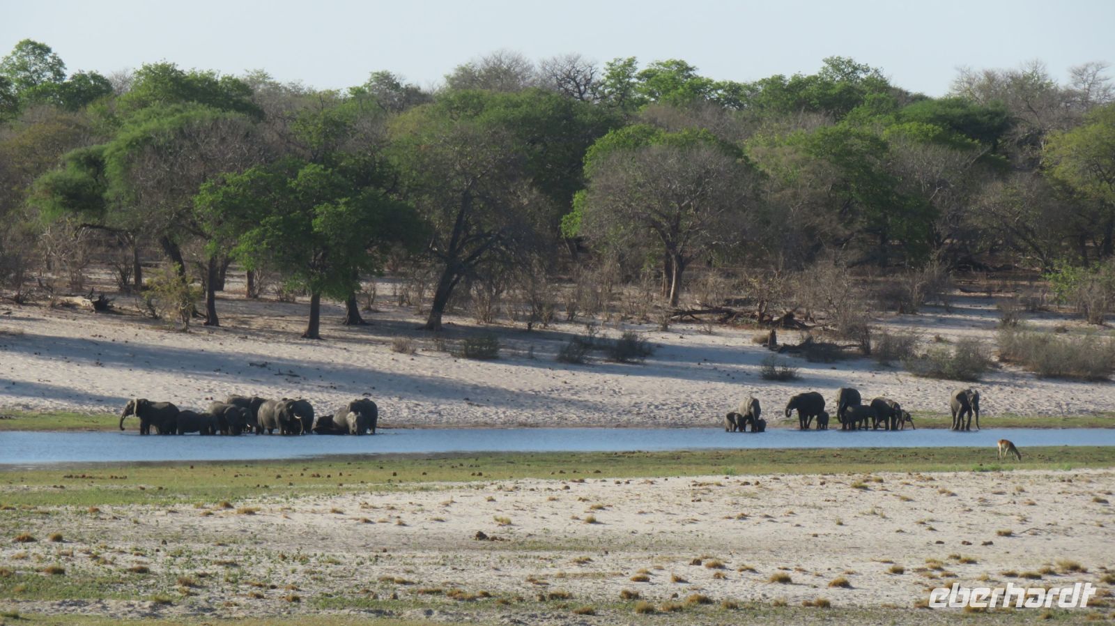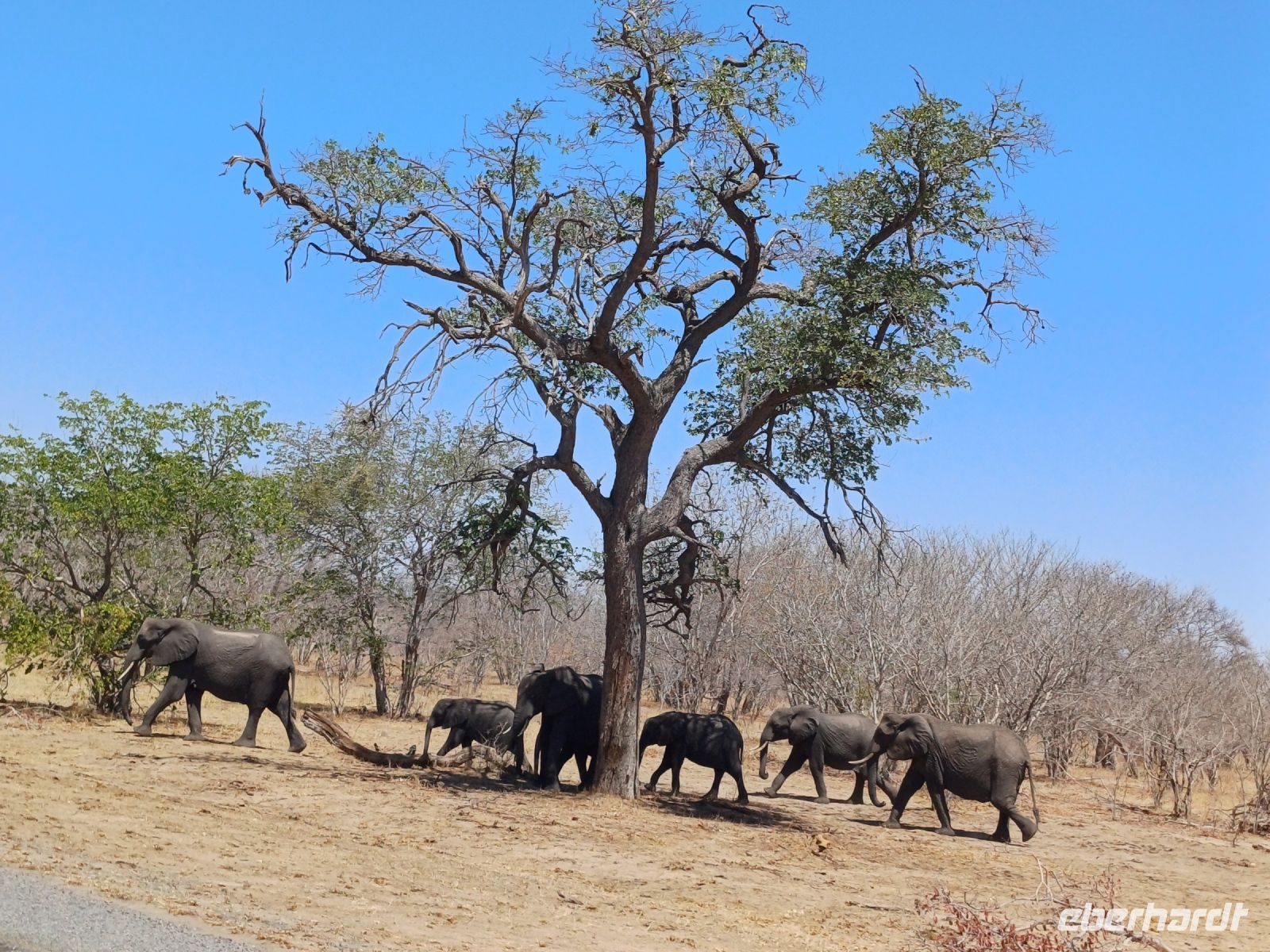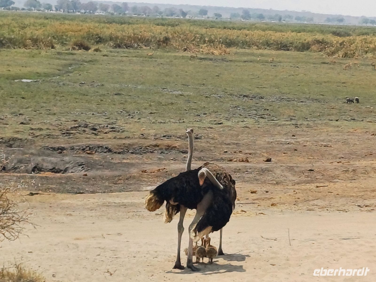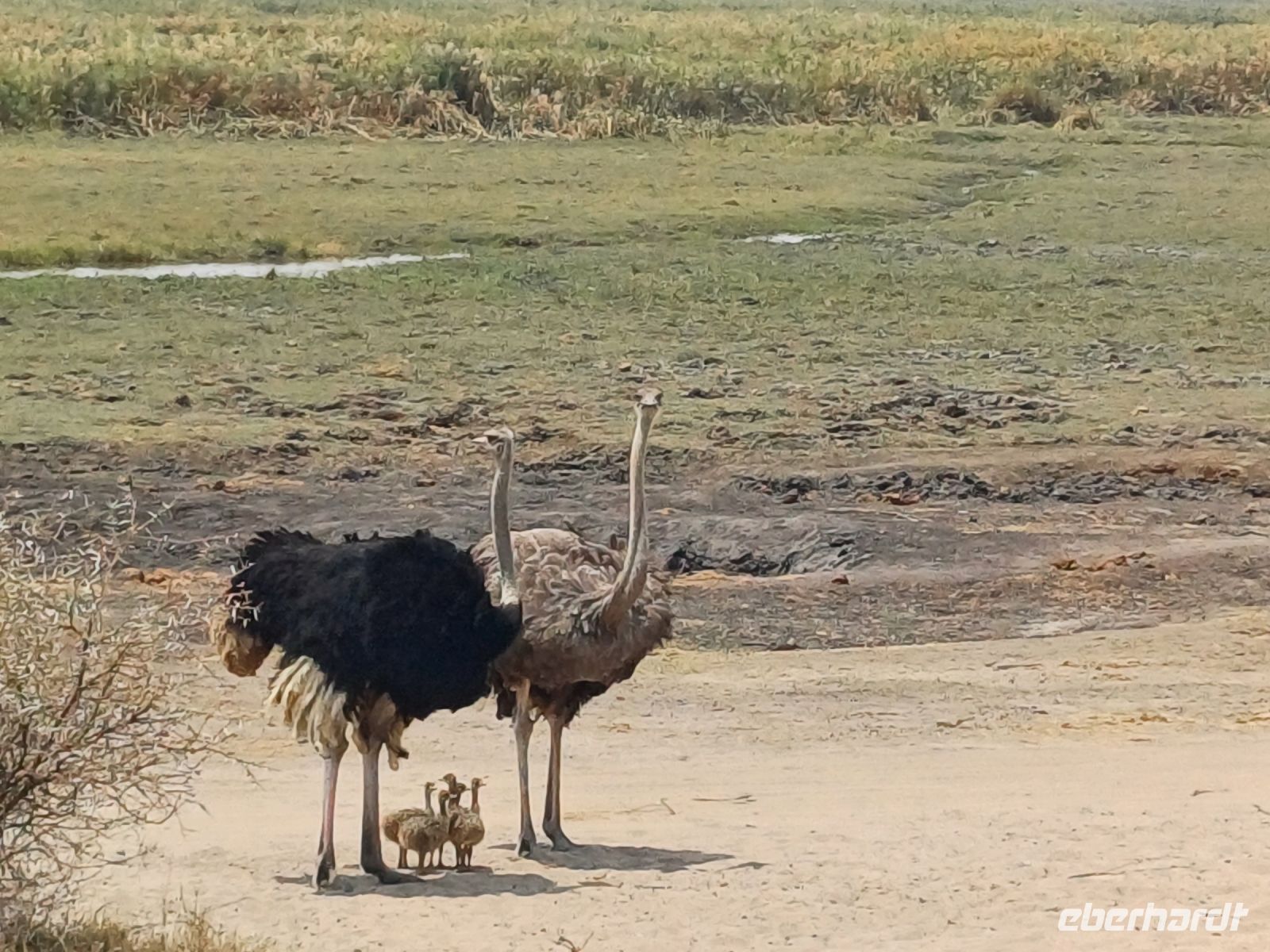 Nach einem ausgiebigen Frühstück ging unsere Entdeckungsfahrt weiter in Richtung Nata. Es ist schon ein Träumchen wenn am Straßenrand plötzlich Elefanten, Giraffen oder Strauße zu sehen sind. Ein Fotostopp folgte dem Nächsten. Gegen Mittag erreichten wir das Elephants Sand Reserve. Beim Picknick am Wasserloch konnten wir eine große Elefantenherde beobachten. Es war hoch interessant die aufmüpfigen kleinen Elefanten von den Älteren zur Ordnung gerufen wurden. Wir waren uns einig hier hätten wir gern übernachtet um dem Elefantentreiben zuzusehen.