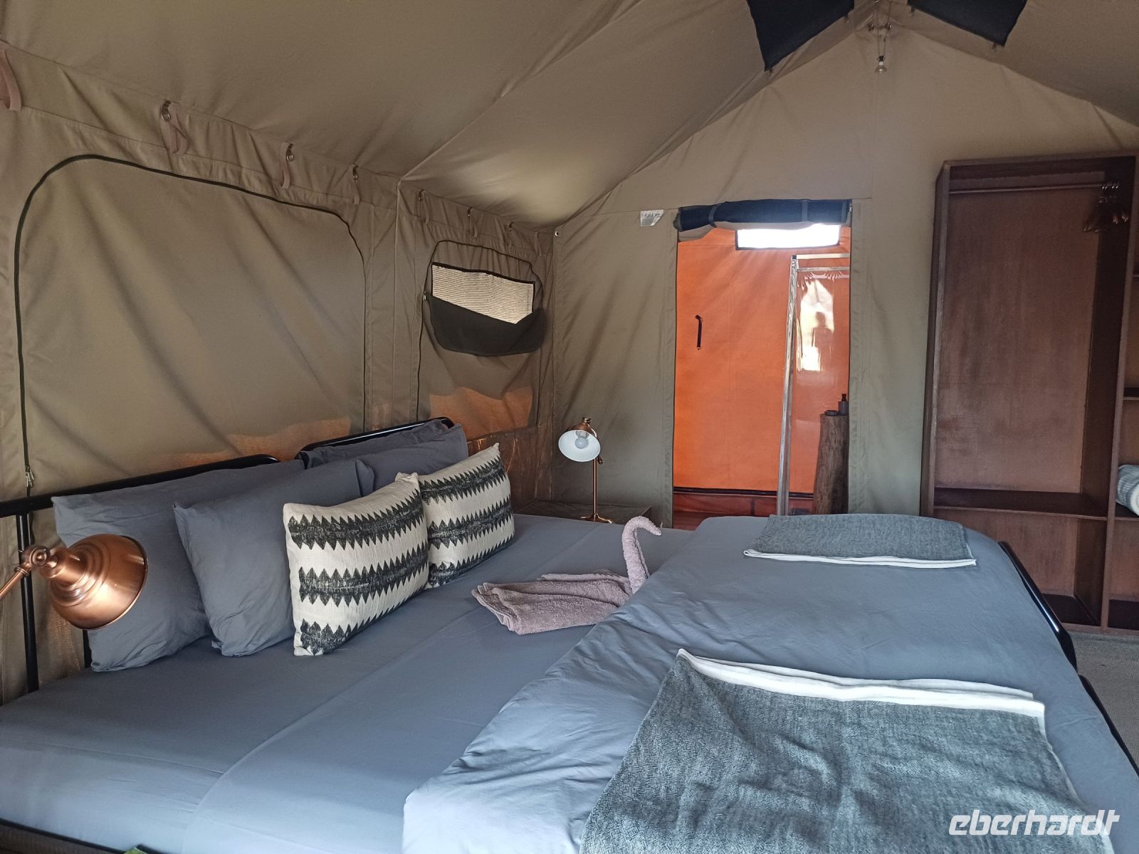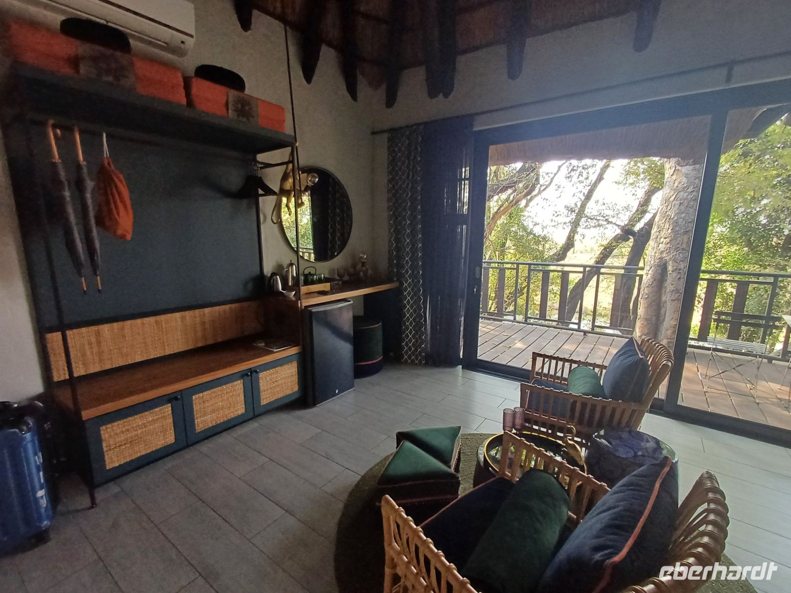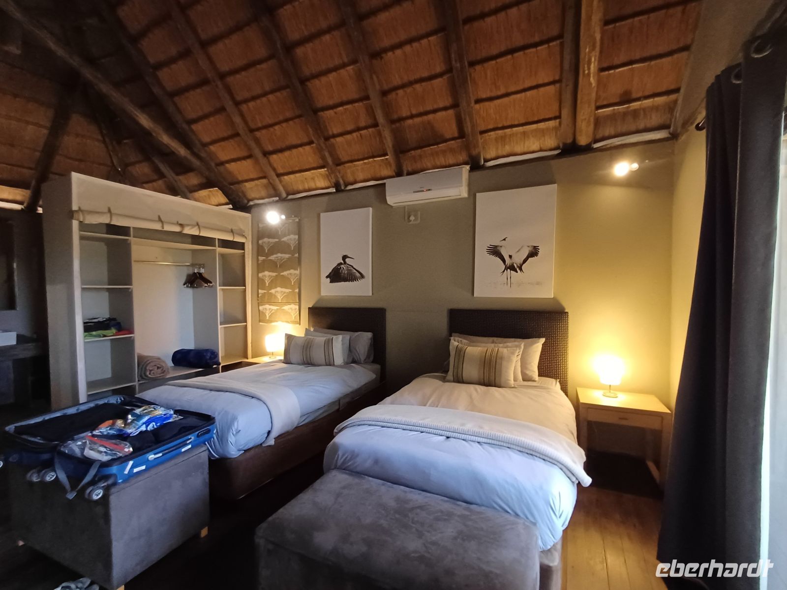 Holzchalets. Per Jeep soll es dann zum Sundowner in die ausgetrocknete Salzpfanne gehen, wo aber ist der Schlüssel für das Auto ??