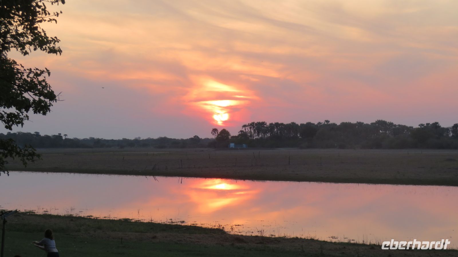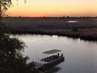 Weiter ging es bis Kongola und am Nachmittag erreichen wir die Namushasha River Lodge, herrlich gelegen am Delta des Kwando. Eine wirklich sehr schöne und luxeriöse Unterkunft in der wir 2 Nächte bleiben werden. Zum Sundowner fuhr uns unser Guide Jaco an einen kleinen Platz außerhalb der Anlage & konnten bei kühlen Drinks und kleinen Knabbereien einen traumhaften Sonnenuntergang genießen. Zum Abendessen waren wir wieder in der Lodge und konnten uns an einem schönen Buffet, unter einem traumhaften Sternenhimmel, bedienen.