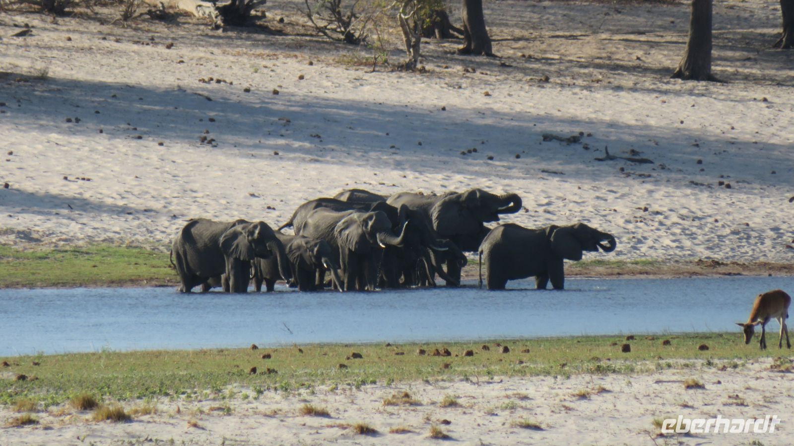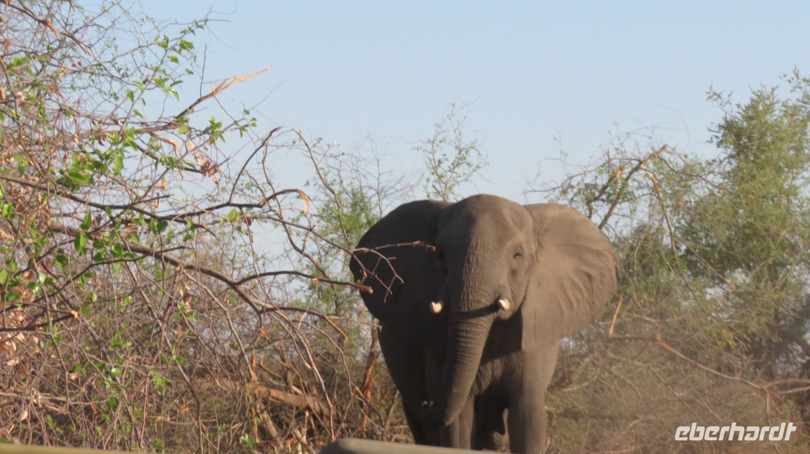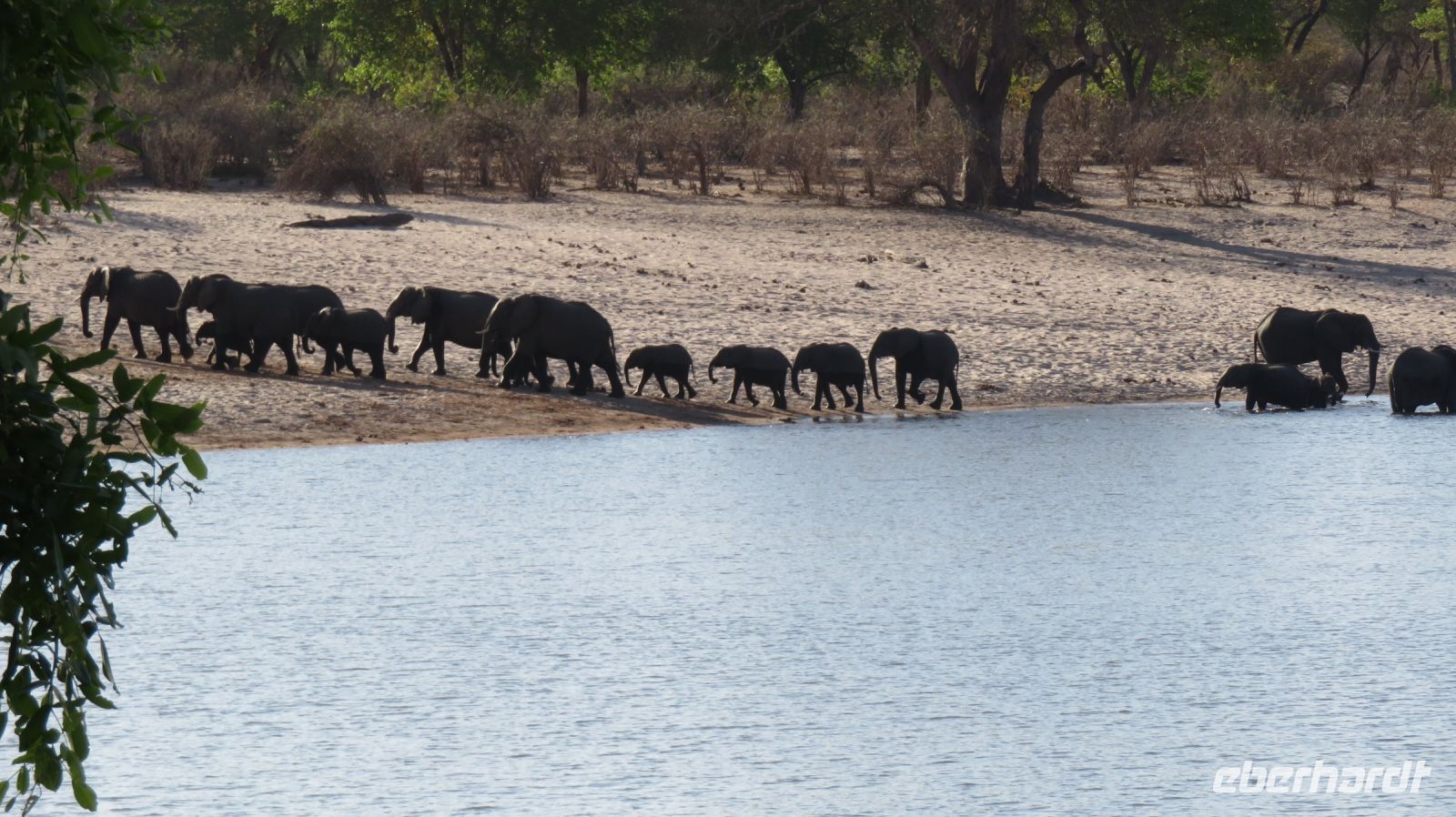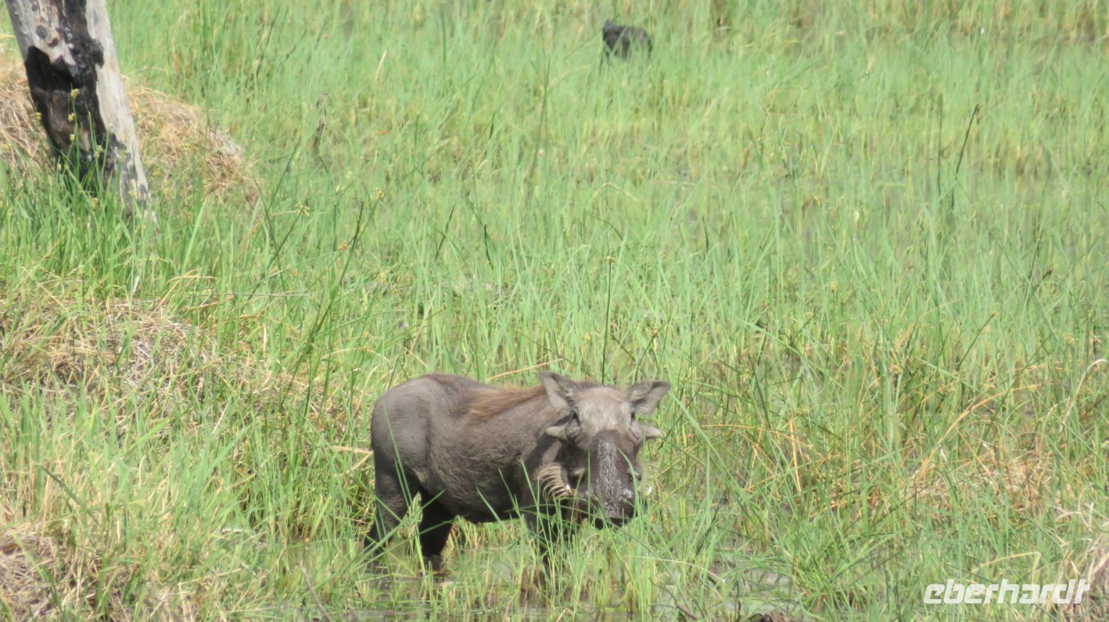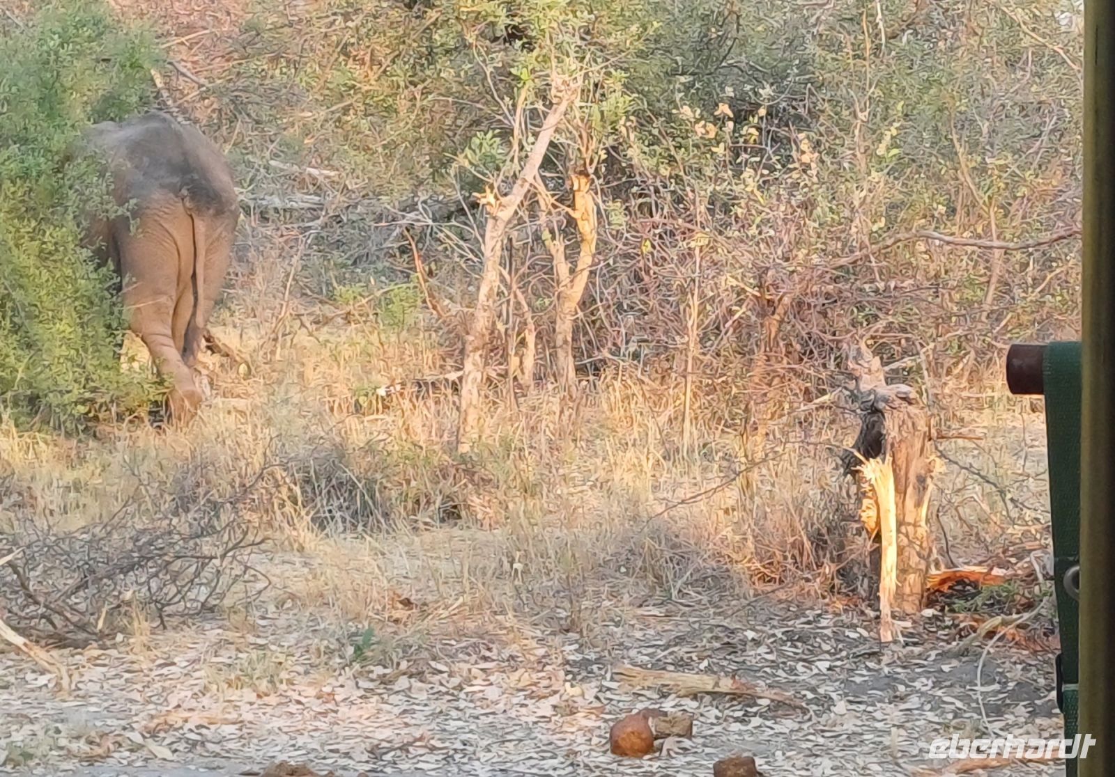 Nach einem schönen Frühstück starteten wir mit Jaco und unserem Truck zur Mahango Core Area im Bwabwata National Park. Auf unserer Pirschfahrt gab es wieder das ein oder andere zu fotografieren bzw. in Ruhe zu beobachten. Warzenschweine, Antilopen, Zebras, Kudus, Büffel, allerlei Vögel, eine Straußenfamilie die Ihre Jungen vor einem Adlerangriff schützt und natürlich Elefanten. In der Lodge zurück hatten wir Zeit zum relaxen oder für einen kleinen Mittagssnack - hier gibt es Currywurst :-). Am späten Nachmittag starteten wir noch einmal zu einer Sundowner-Bootstour auf dem Kavango, wie der Okavango in Namibia genannt wird. Antilopen, Hippos, Elefanten-Herden, Antilopen und verschiedene Vögel (z.B. den afrikanischen Bienenfresser) genossen die Abendsonne beim Trinken am Flußufer und wir konnten Sie in aller Ruhe fotografieren und beobachten. Nachdem die Sonne untergegangen war genossen wir in der Lodge ein leckeres Abendessen und ein weiterer Happy Day voller schöner Erlebnisse ging zuende.