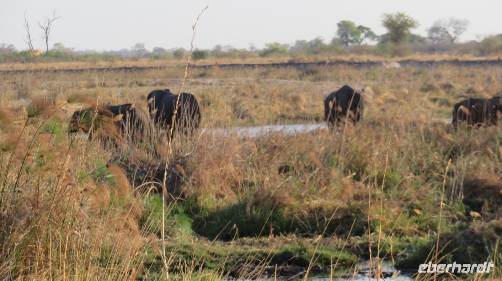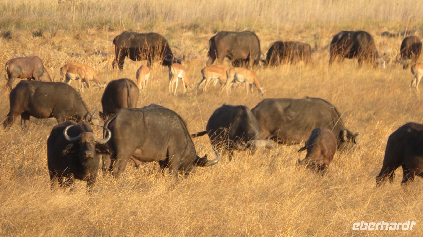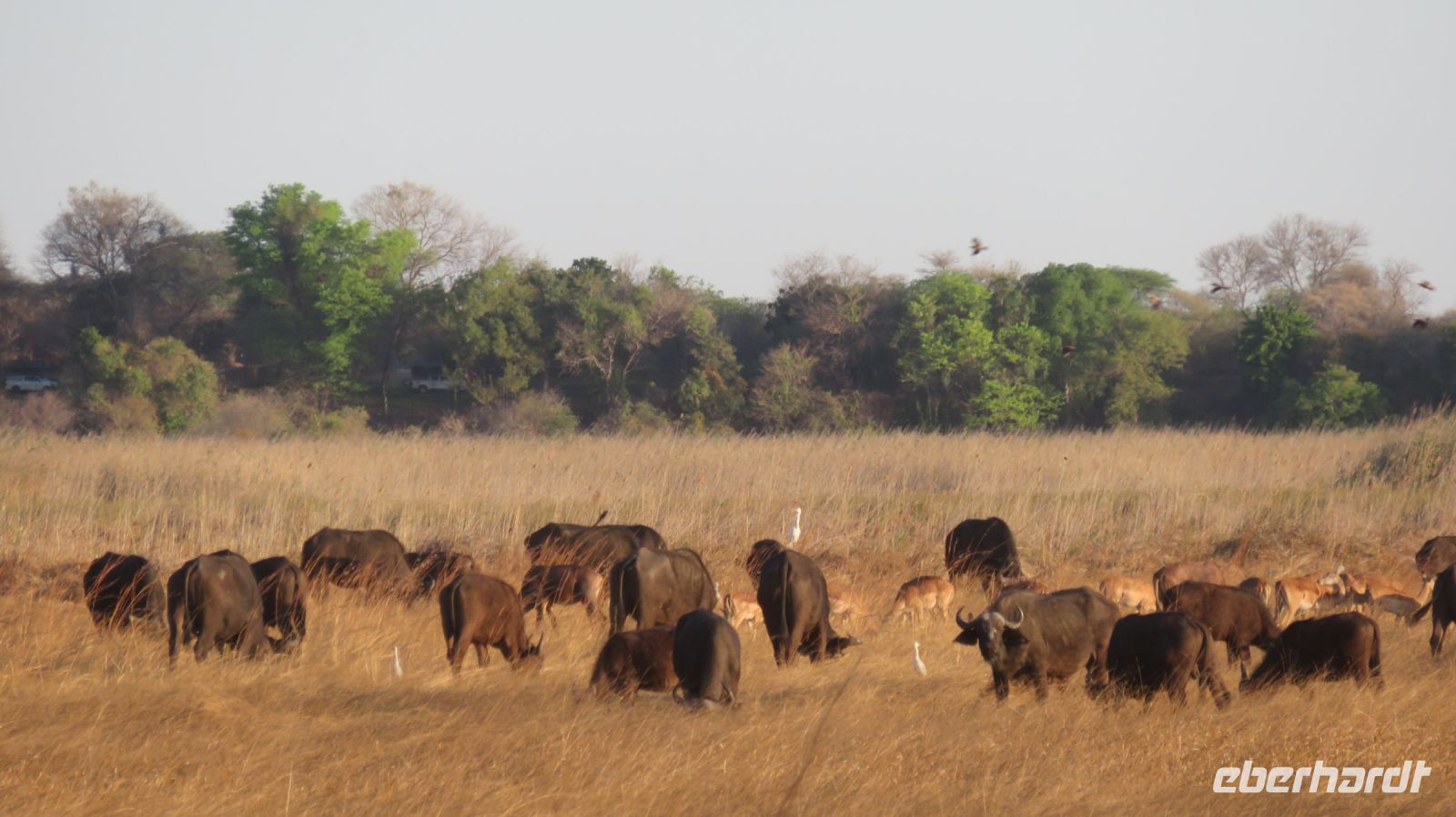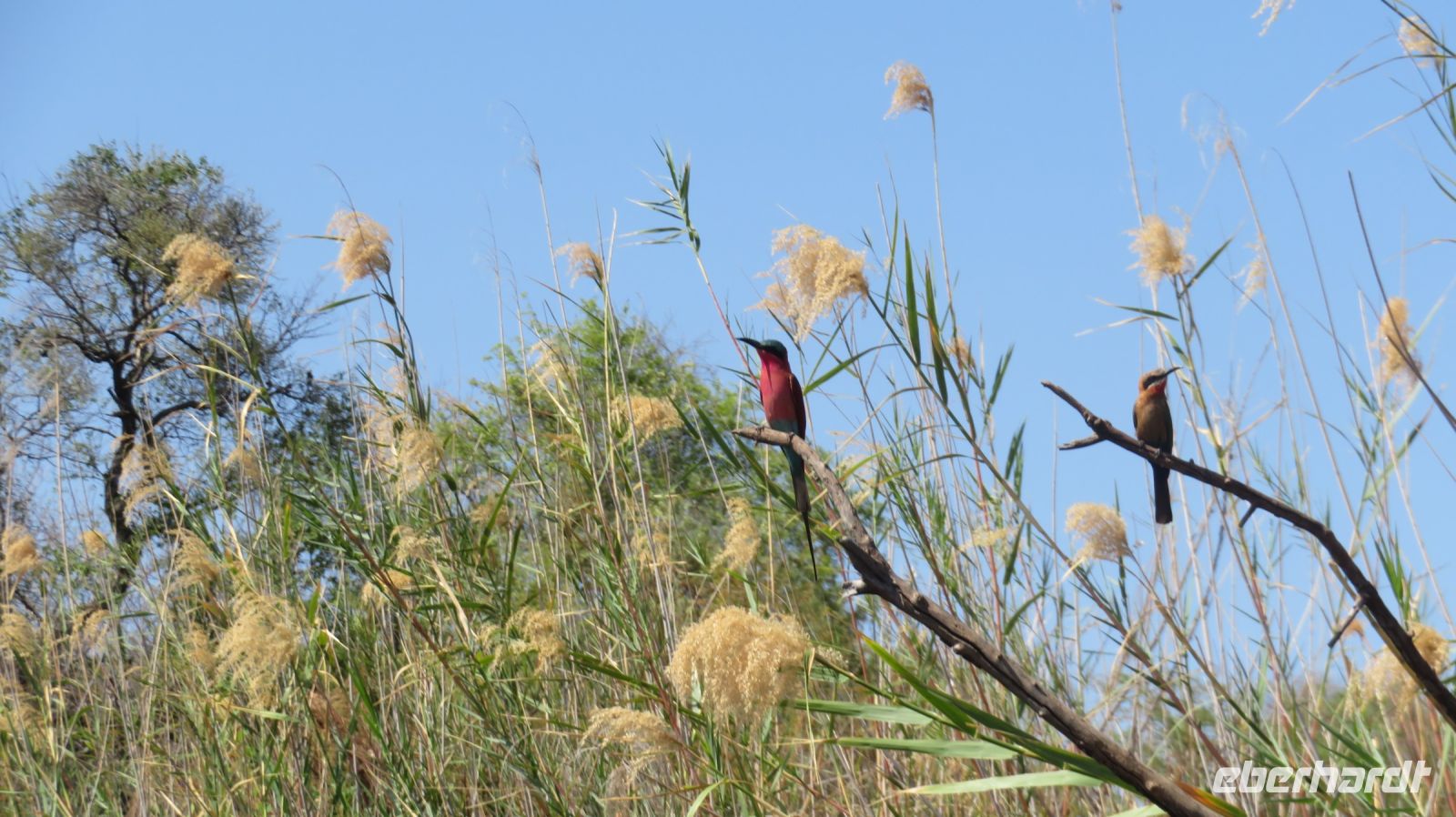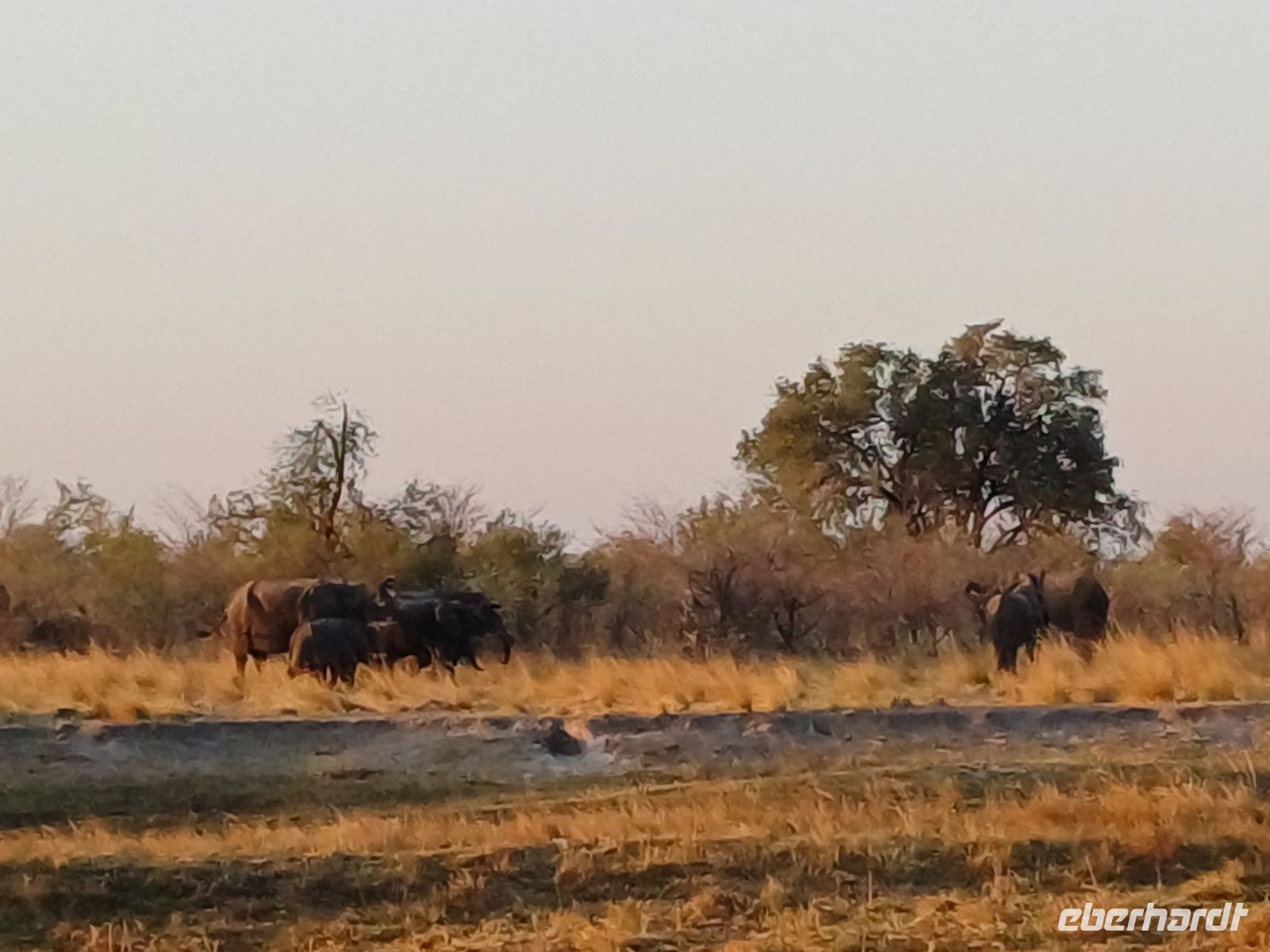 Nach einem schönen Frühstück starteten wir mit Jaco und unserem Truck zur Mahango Core Area im Bwabwata National Park. Auf unserer Pirschfahrt gab es wieder das ein oder andere zu fotografieren bzw. in Ruhe zu beobachten. Warzenschweine, Antilopen, Zebras, Kudus, Büffel, allerlei Vögel, eine Straußenfamilie die Ihre Jungen vor einem Adlerangriff schützt und natürlich Elefanten. In der Lodge zurück hatten wir Zeit zum relaxen oder für einen kleinen Mittagssnack - hier gibt es Currywurst :-). Am späten Nachmittag starteten wir noch einmal zu einer Sundowner-Bootstour auf dem Kavango, wie der Okavango in Namibia genannt wird. Antilopen, Hippos, Elefanten-Herden, Antilopen und verschiedene Vögel (z.B. den afrikanischen Bienenfresser) genossen die Abendsonne beim Trinken am Flußufer und wir konnten Sie in aller Ruhe fotografieren und beobachten. Nachdem die Sonne untergegangen war genossen wir in der Lodge ein leckeres Abendessen und ein weiterer Happy Day voller schöner Erlebnisse ging zuende.
