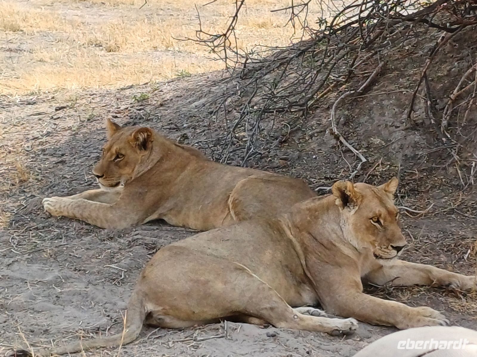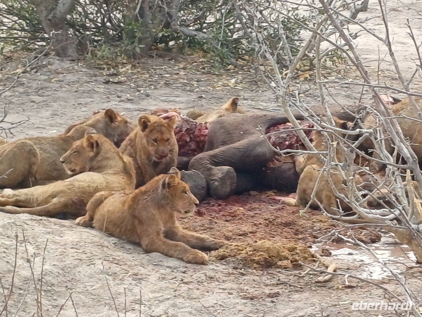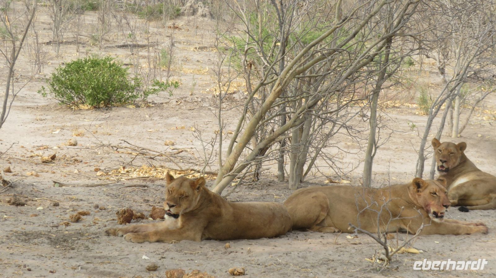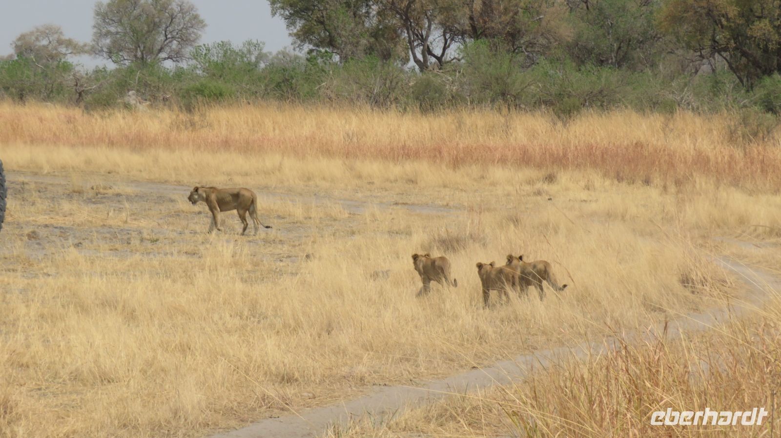Nach einer Nacht unruhigen Nacht mit vielen Tierbesuchen (Löwe, Elefant, brüllendes Hippo) hiess es 5 Uhr aufstehen, Kaffee, Keks und los ging es mit dem Jeep in Richtung Moremi Game Reserve. Am Eingang des fast 5.000 Quadratkilometer großen Schutzgebiet mit über 1.000 Pflanzen- und 560 Vogelarten, sowie vielen Antilopen, Nilpferden, Giraffen, Elefanten, Löwen mußten wir uns anmelden & los ging die Pirschfahrt. Allerdings knurrten unsere Mägen, mittlerweile waren wir 3 Stunden on Tour. Also erst mal frühstücken & dann Tiere suchen. An einem ausgetrocknetem Wasserloch wurden Tische aufgebaut und lecker gefrühstückt. Otti und Ihr Team hatten superleckere Lunchboxen gepackt. Wieder auf den Jeep und schon das erste Highlight ein Löwenrudel hatte einen kleinen Elefanten gerissen und wir konnten Sie beim "Frühstücken" beobachten. Auf der weiteren Pirsch bekamen wir Zebras, Gnus, Warzenschweine, Kudus, Springböcke, Elefanten & mindestens noch 20 Löwen vor die Kamera - ein Traum. Das Mittags-Picknick machten wir an einem Wasserloch unter Beobachtung von mehreren Hippos und allerlei Vögeln. Am Nachmittag machten wir noch einmal Stopp bei dem verfressenen Löwenrudel vom Vormittag & fuhren dann, voller Begeisterung und fantastischer Eindrücke in unsere kleine Lodge zurück. Auch hier gab es Überraschungen die Sräucher vor meinem Zelt waren weg- von Elefanten gefressen & rund um meine kleine Terrasse hatten Sie Ihre Häufchen hinterlassen. Bei einem leckeren Abendessen ließen wir dann den traumhaft schönen Tag ausklingen. Um mit Jaco's Worten zu sprechen ein Happs Day ;-).