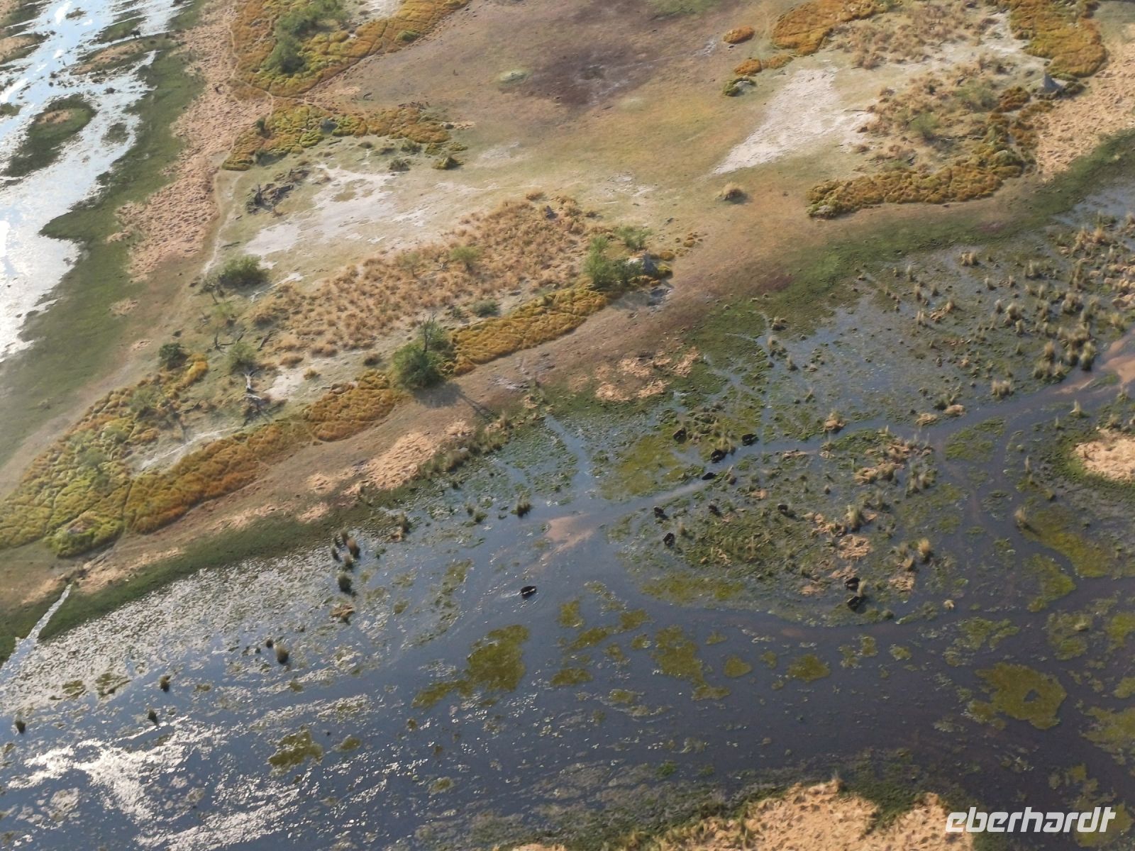 Es hiess Abschied nehmen von Otti & der wunderschönen Shokomoka-Lodge in der Wildnis Botswanas. Die Nacht war wieder gespickt mit Stimmen von brüllenden Löwen, dem Hohoho von Hippos und dem knacken der Äste fressender Elefanten, die auf dem Weg durch unsere Lodge waren. Nach einem gemütlichen Frühstück verabschiedeten uns herzlich vom Team der Lodge und bestiegen unseren Jeep. Entlang des Sandweges am Büffelzauns, mit der einen oder anderen Tiersichtung erreichten wir die Hauptstraße in Richtung Maun. Heute war in Botswana Feiertag - 56. Jahre Unabhängigkeit und deshalb die Straßen leer. Die knappe zwei Stunden, unterbrochen von einem Stopp an einem Shop mit einheimischen Handarbeitsprodukten, waren sehr angenehm. Angekommen in der Thamalakane Lodge luden wir unsere Koffer aus dem Truck und bezogen unsere Zimmer. Den Nachmittag hatten alle Zeit zu entspannen und die Erlebnisse der letzten Tage Revue passieren zu lassen. Außer Michael & ich für uns stand am Nachmittag ein besonderes Highlight auf dem Programm. Ein Helikopter-Flug vom Flughafen Maun über das Okavango-Delta - ein tolles Erlebnis. Die weite trockenen Ebene mit Ihren Oasen, Wasserlöchern, Flußläufen und natürlich Tiere aus der Luft zu sehen. Zum Abendessen trafen wir uns alle auf der Terrasse des Restaurants, wo wir bei einem schönen Sonnenuntergang und leckere Speisen den Tag ausklingen ließen.
