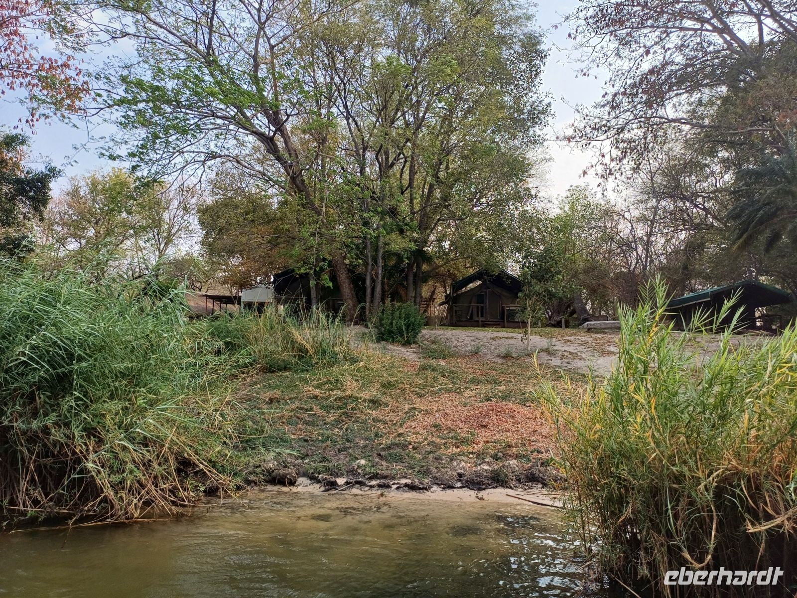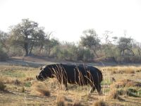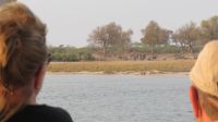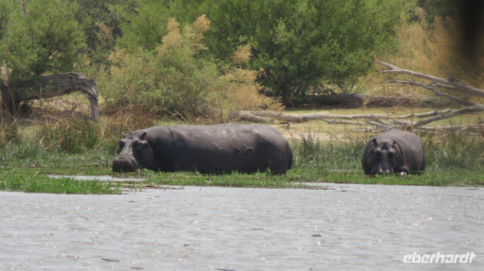 Erst Ausreise-Zettel Botswana ausfüllen, Pass vorlegen - dann Einreisezettel Namibia ausfüllen - Pass vorlegen und schon haben wir die Grenze überschritten. Die Grenze war fast menschenleer und wir konnten unsere Fahrt zügig in Richtung Ndhovu Safari Lodge fortsetzen. Am Nachmittag erreichten wir die sehr malerisch direkt am Okavango gelegene Lodge und erfrischten uns nach dem Bezug der Zelte mit einem frisch gezapften kühlen Hansa- Bier, einer Cola oder einem Malawi-Chanty. Von der Terrasse der Lodge konnten wir im und am Wasser Nilpferde, Antilopen, Büffel, Warzenschweine, Elefanten und einiges mehr beobachten. Den Tag schlossen wir mit einem vorzüglichen Abendessen und dem einen oder anderen leckeren Getränk ab.