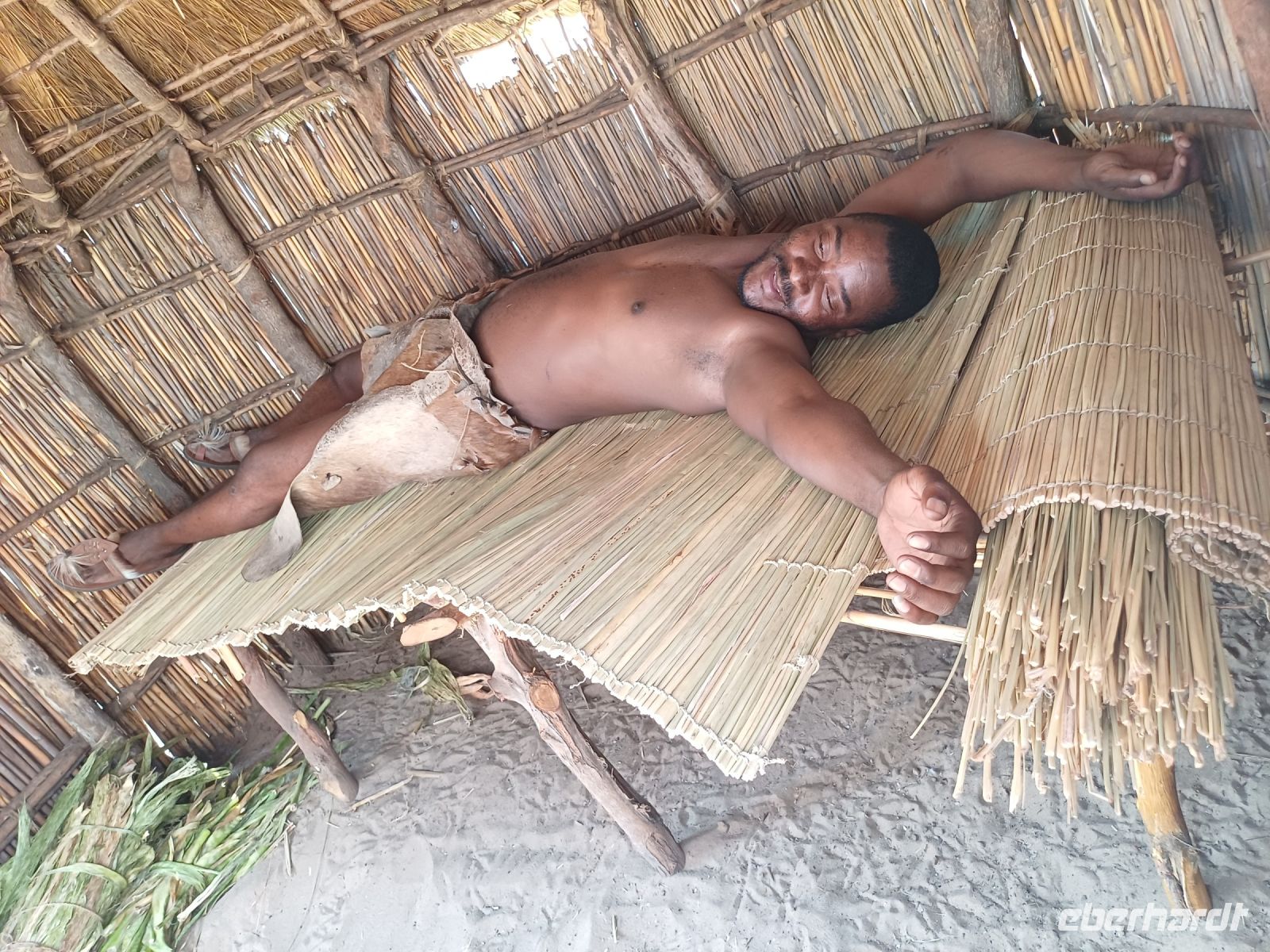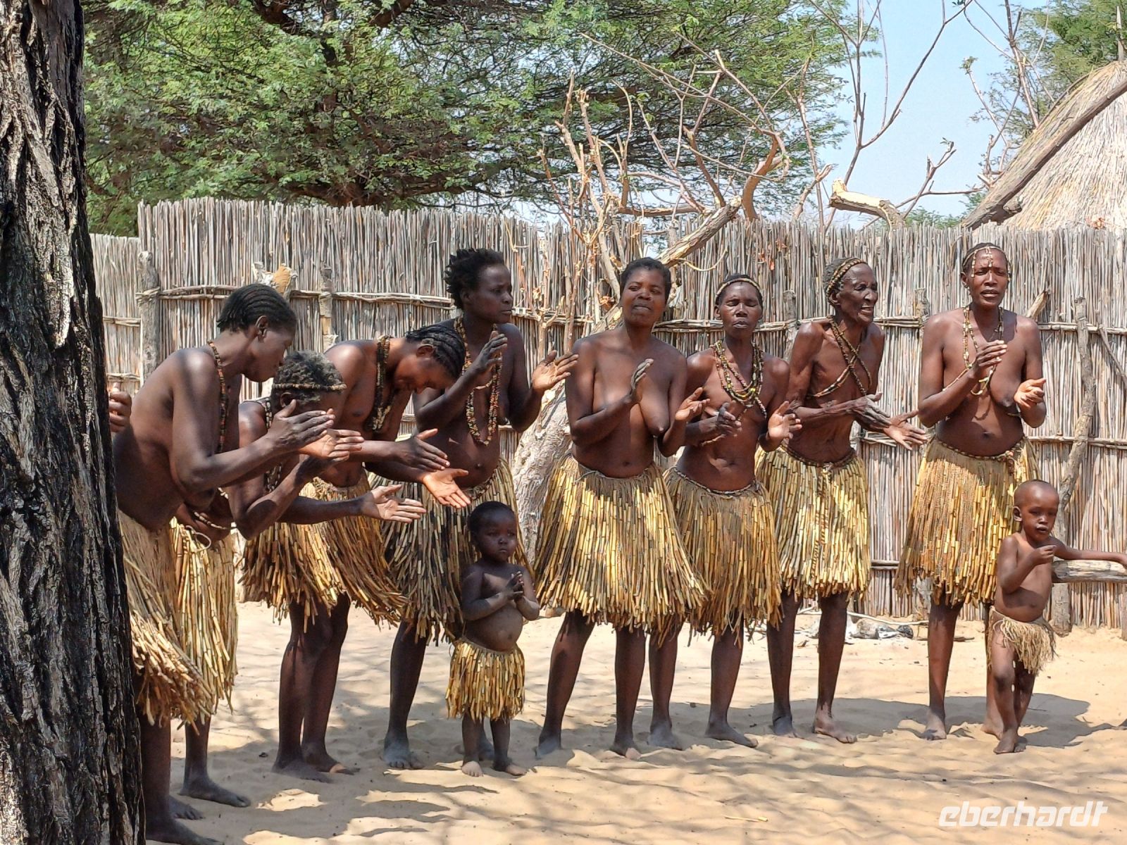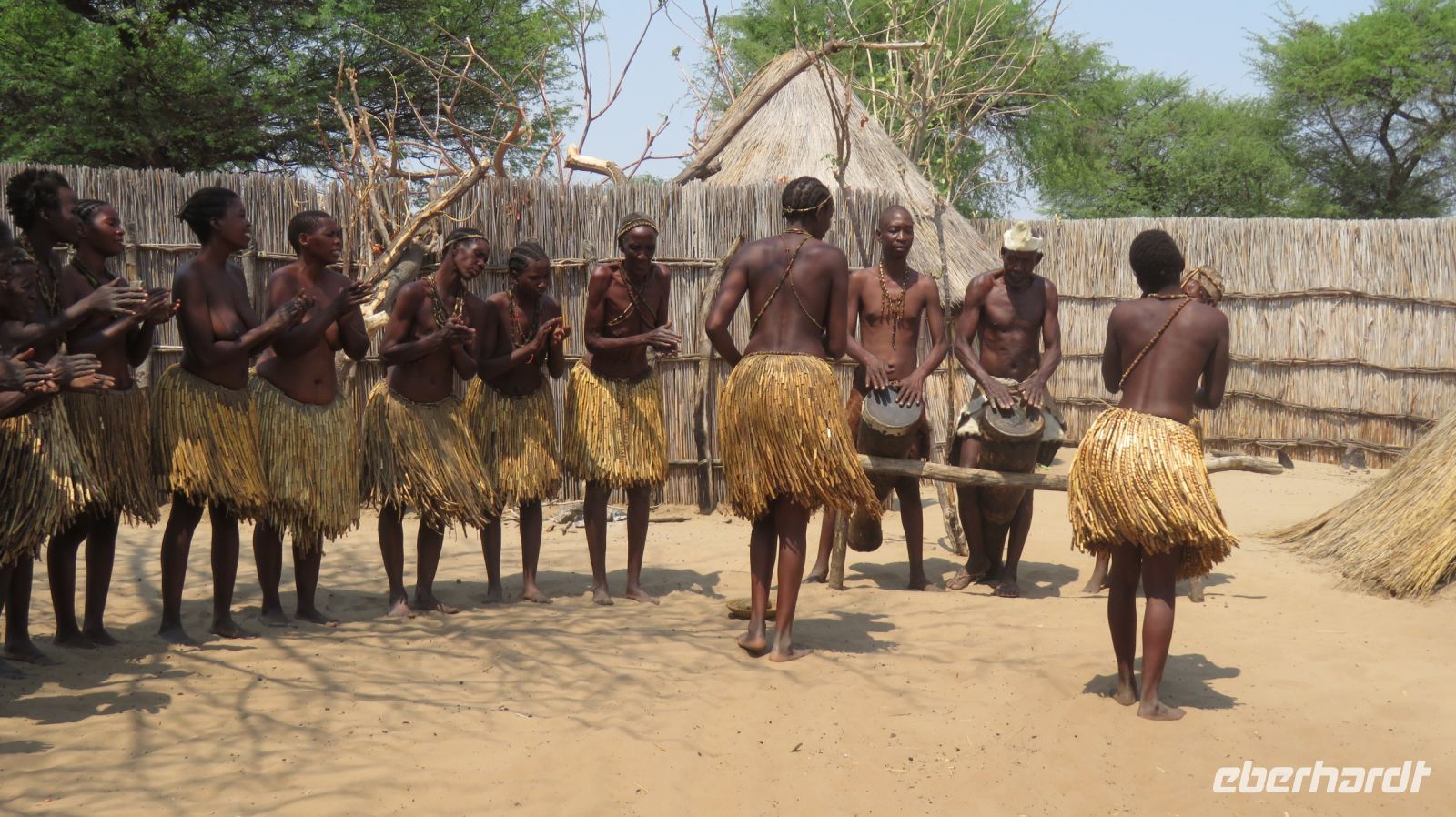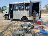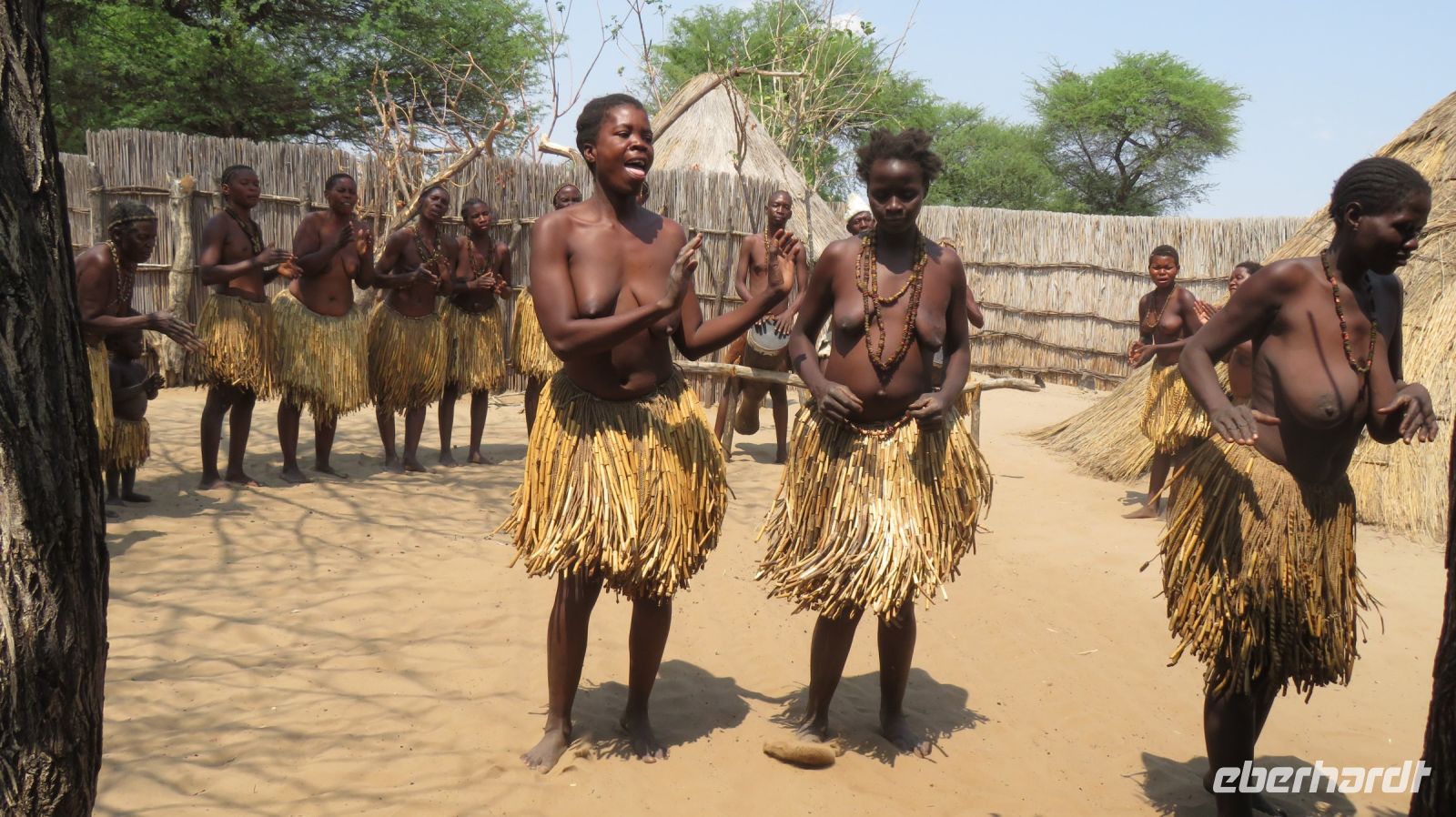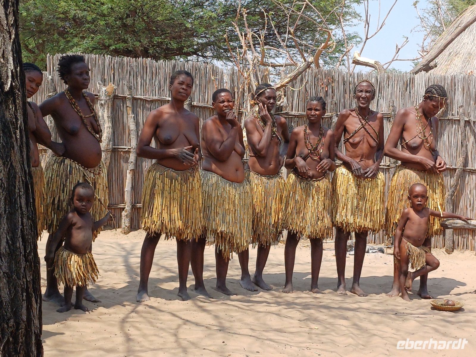Nach dem ging unsere Reise weiter im Caprivi-Zipfel von Namibia. Wir wollten heute picknicken, also erst mal shoppen, was bei dieser Reise wirklich selten möglich war. In unserem Einkaufskörbchen landeten Brötchen, Wurst, Senf und Ketchup und schon ging die Fahrt weiter innerhalb des Bwabwata National Park. Ungefähr 280 km standen auf unserem Tagesplan. Zur Mittagszeit wurde an kleiner Picknickstelle, im Schatten eines Baumes, Grill, Campingtisch & Stühle für unsere Mittagspause ausgepackt. Die von Jaco gekauften & gegrillten Würste waren wirklich echt lecker. Am frühen Nachmittag stand der Besuch des lebendigen Museums der Mafwe, einem Stamm im Caprivi-Streifen, auf dem Programm. In einem traditionell errichteten Dorf erfuhren wir viel über die ursprüngliche Lebensweise, wie das Aufstellen von Fallen für den Tierfang, die Bearbeitung von Lebensmitteln, das Herstellen von Bastmatten & Musikinstrumenten und erhielten einen kleinen Einblick in Ihr kulturelles Leben. Wie ich bei diesem Besuch meinen Spitznamen "Erdferkel" erhielt bleibt unser kleines Gruppengeheimnis. Ein wirklich schöner Einblick in die einheimische Kultur.