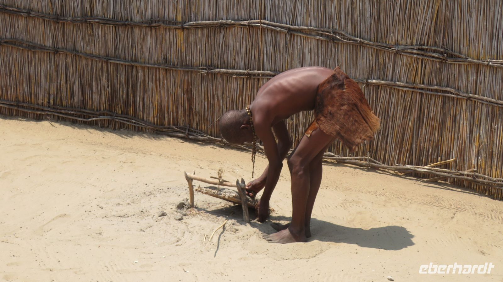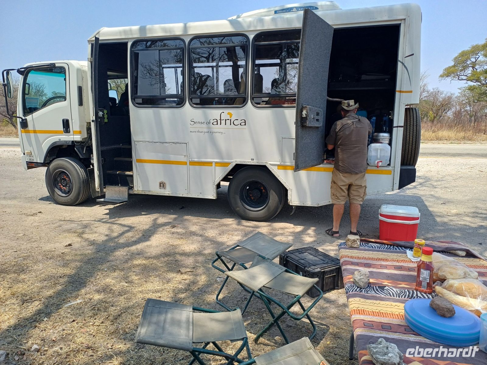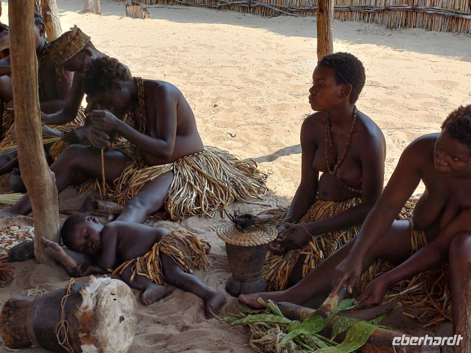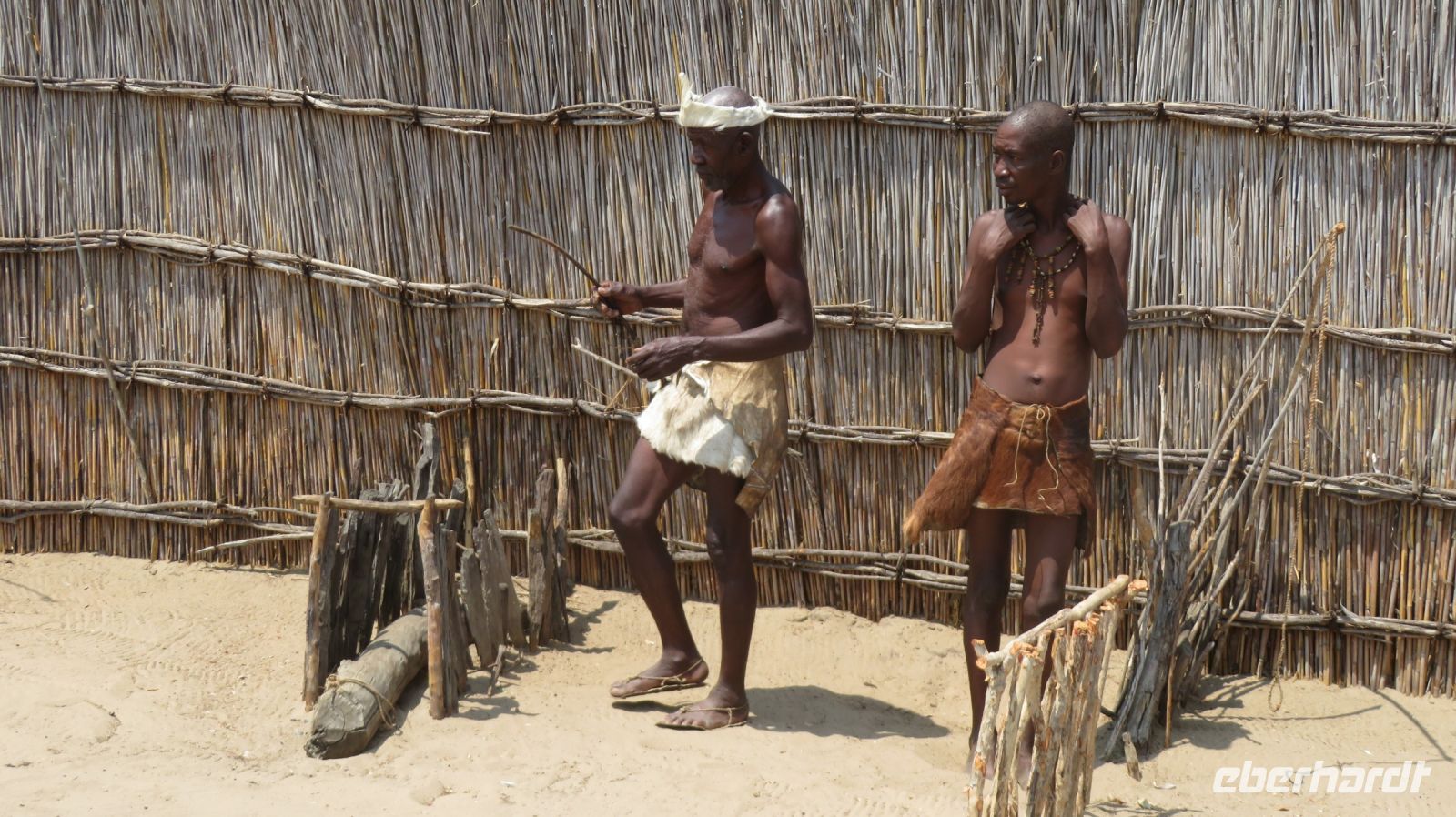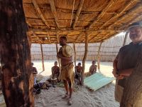 Nach dem ging unsere Reise weiter im Caprivi-Zipfel von Namibia. Wir wollten heute picknicken, also erst mal shoppen, was bei dieser Reise wirklich selten möglich war. In unserem Einkaufskörbchen landeten Brötchen, Wurst, Senf und Ketchup und schon ging die Fahrt weiter innerhalb des Bwabwata National Park. Ungefähr 280 km standen auf unserem Tagesplan. Zur Mittagszeit wurde an kleiner Picknickstelle, im Schatten eines Baumes, Grill, Campingtisch & Stühle für unsere Mittagspause ausgepackt. Die von Jaco gekauften & gegrillten Würste waren wirklich echt lecker. Am frühen Nachmittag stand der Besuch des lebendigen Museums der Mafwe, einem Stamm im Caprivi-Streifen, auf dem Programm. In einem traditionell errichteten Dorf erfuhren wir viel über die ursprüngliche Lebensweise, wie das Aufstellen von Fallen für den Tierfang, die Bearbeitung von Lebensmitteln, das Herstellen von Bastmatten & Musikinstrumenten und erhielten einen kleinen Einblick in Ihr kulturelles Leben. Wie ich bei diesem Besuch meinen Spitznamen "Erdferkel" erhielt bleibt unser kleines Gruppengeheimnis. Ein wirklich schöner Einblick in die einheimische Kultur.