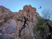 Nach wieder nur einen Nacht hieß es Koffer packen. In Botswana soll es auch Berge geben und die wollten wir heute kennenlernen. Nach ca. 50 Kilometern auf einer holprigen Schotterpiste erreichen wir die Tsodilo Hills, eine Hügelkette im Norden der Kalahari. Der höchste Punkt der vier Berge hat eine Höhe von ca. 1500m. In den Tsodilo Hills ist eine der höchsten Konzentration von Felsmalereien auf der Welt zu finden und ist