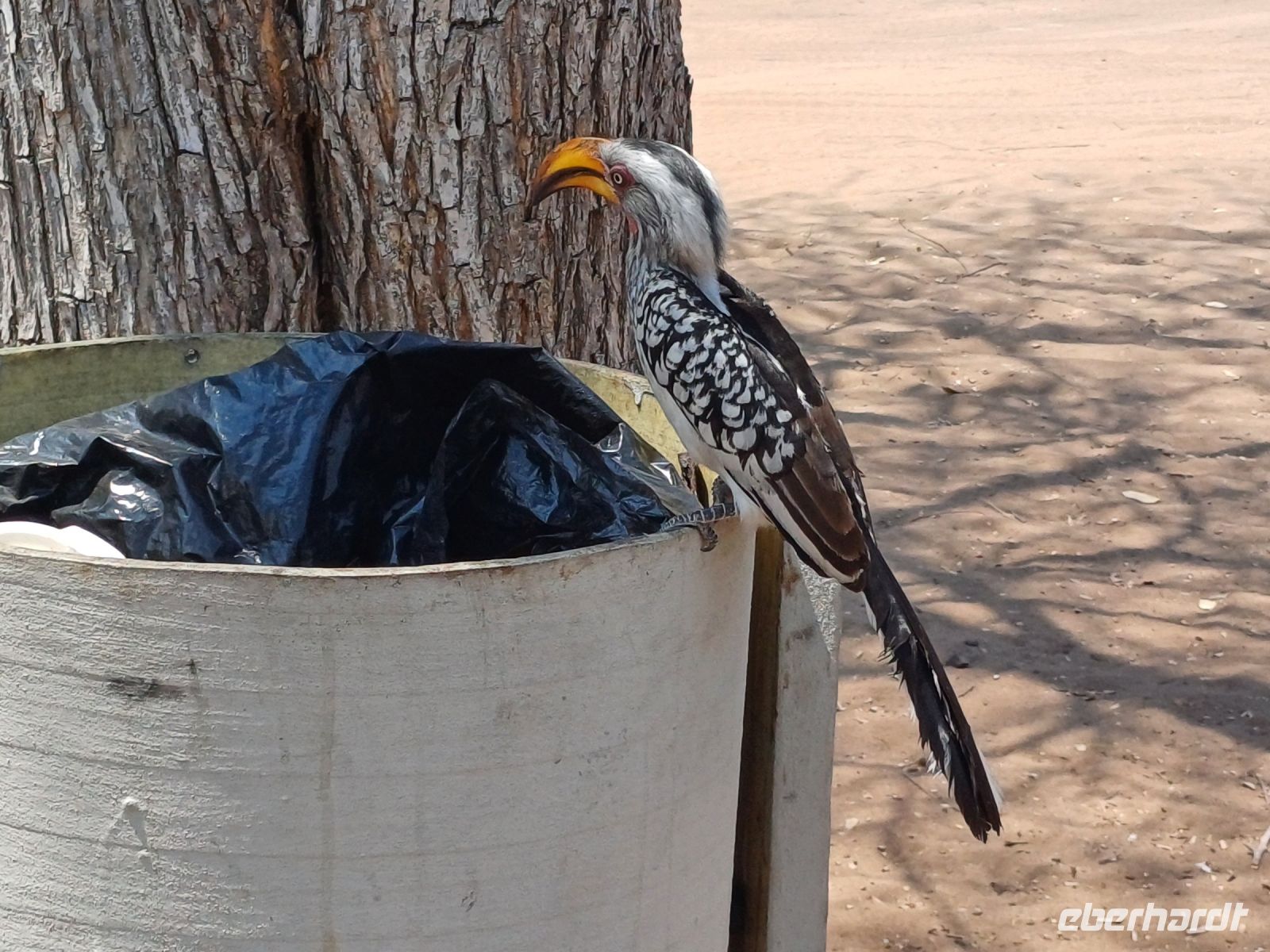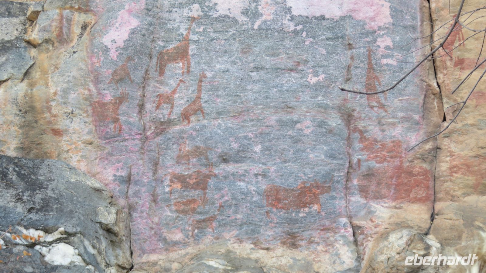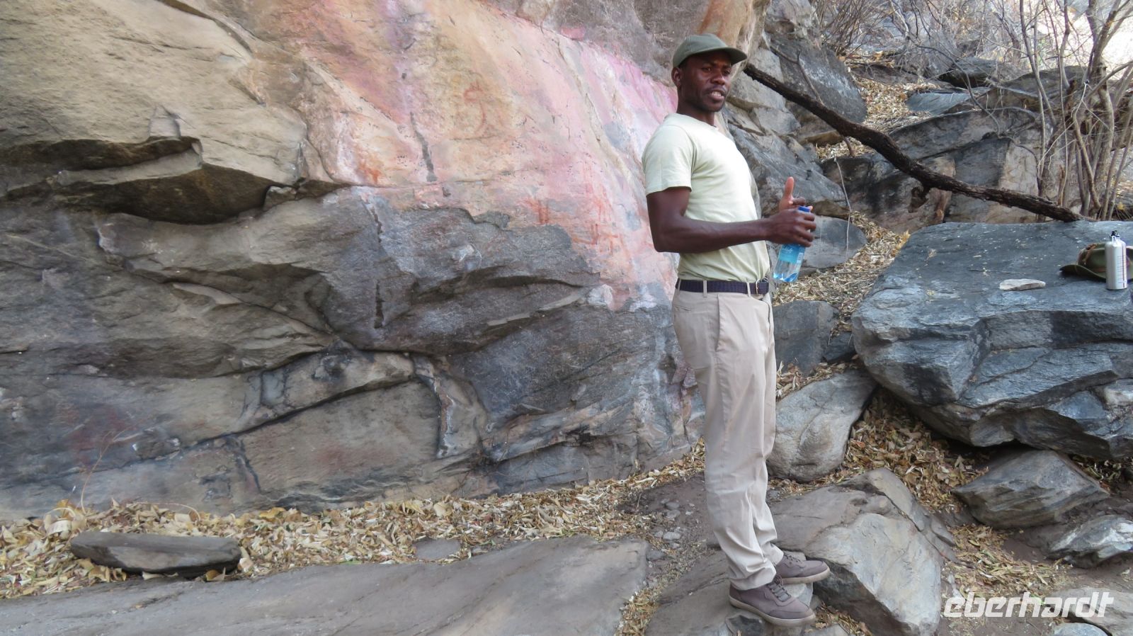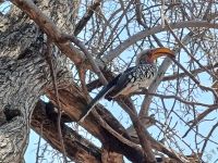 UNESCO Weltkulturerbestätte. Wir unternahmen mit unserem lokalen Guide eine kleine Wanderung auf dem Rhino Trail. Er zeigte uns tausende von Jahren alte, sehr beeindruckende, Felsmalereien und durch Auswaschung entstandene Farbschattierungen. Nach einem kleinen Mittagspicknick (unter Beobachtung von 2 Gelbschnabel-Tokkos) und dem Besuch des kleinen Museums starteten wir in Richtung Namibia.