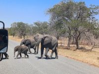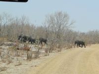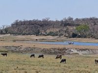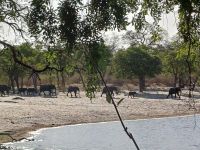 Heute mussten wir zeitig aufstehen - 5.20 Uhr Treff am Truck - 5.30 UHr Kaffee & Keks und schon startete unsere Jeep-Safari im Chobe Nationalpark. Ich glaube bei der 20 minütigen Anfahrt haben alle ganz schön gefroren & wir waren froh über jeden einzelnen Fotostopp am Straßenrand. Unser lokaler Guide kannte sich aus und los ging die morgendliche Suche nach Tieren. Die ersten die wir fanden waren leider tote Elefanten aber auch das gehört zur Natur. Dann waren Sie da Giraffen, Antilopen, Warzenschweine, Impalas., Elefanten und viele Vögel. Im Uferbereich des Chobe dann Hippos und Löwen die sich in der Morgensonnen räkelten. Nach runde 4 Stunden Pirschfahrt verließen wir den Park und fuhren zurück, um in der Chobe Bush-Lodge ausgiebig zu frühstücken. Dann hiess es erholen vom frühen Aufstehen. Am Nachmittag folgte dann eine traumhafte Bootstour. Unsere kleine Gruppe hatte ein Boot für sich alleine und wir sahen so viele Tiere am Ufer des Chobe - Krokodile, eins wurde von einem Elefanten-Teenie gejagt, Hippos, eins mit einem Weißkopfseeadler auf dem Rücken, Büffel, riesige Elefantenherden, Vögel, Reiher... es war so schön dies alles zu sehen und vor allem genießen zu können. Einfach wieder ein Happy Day.