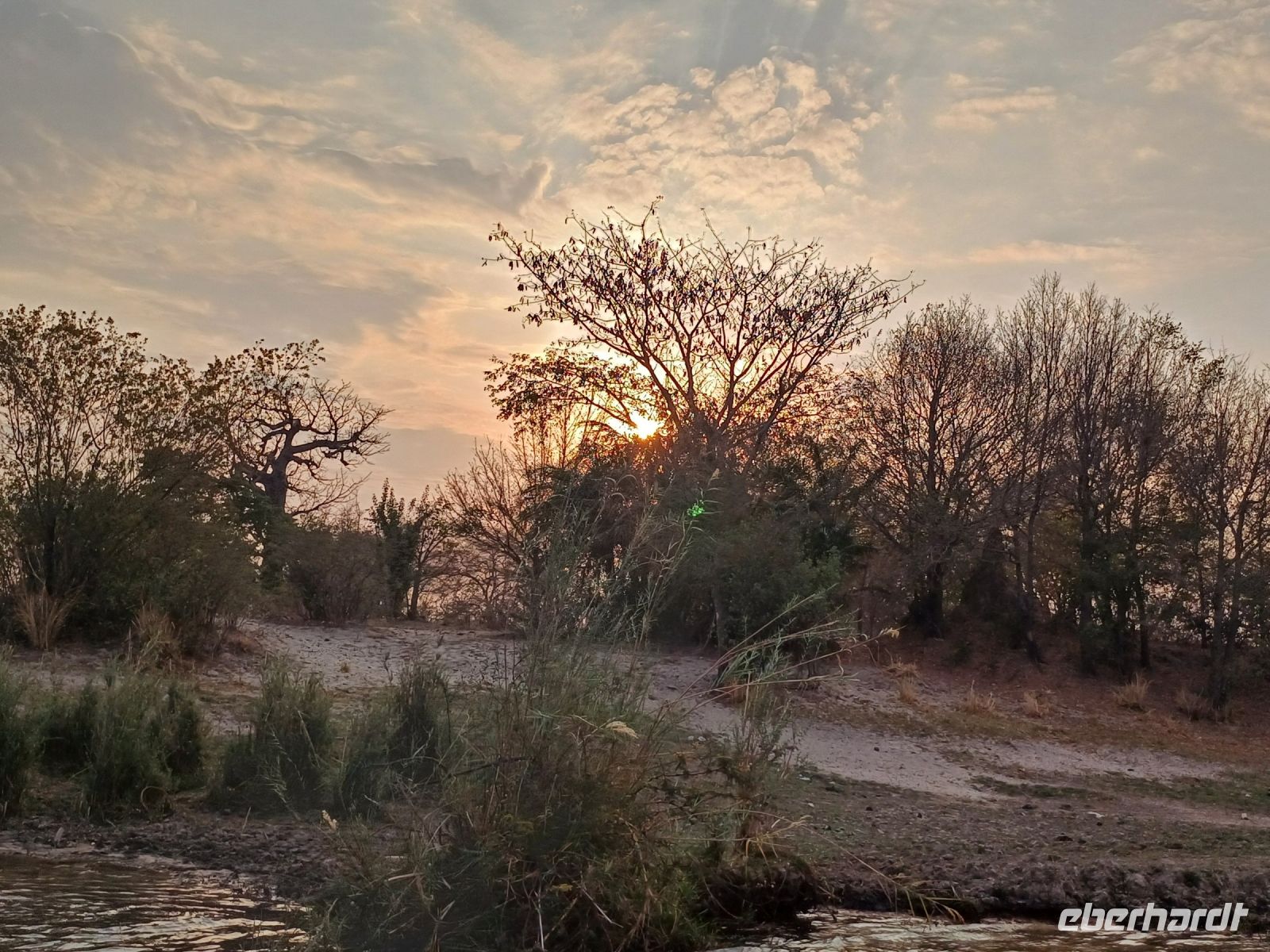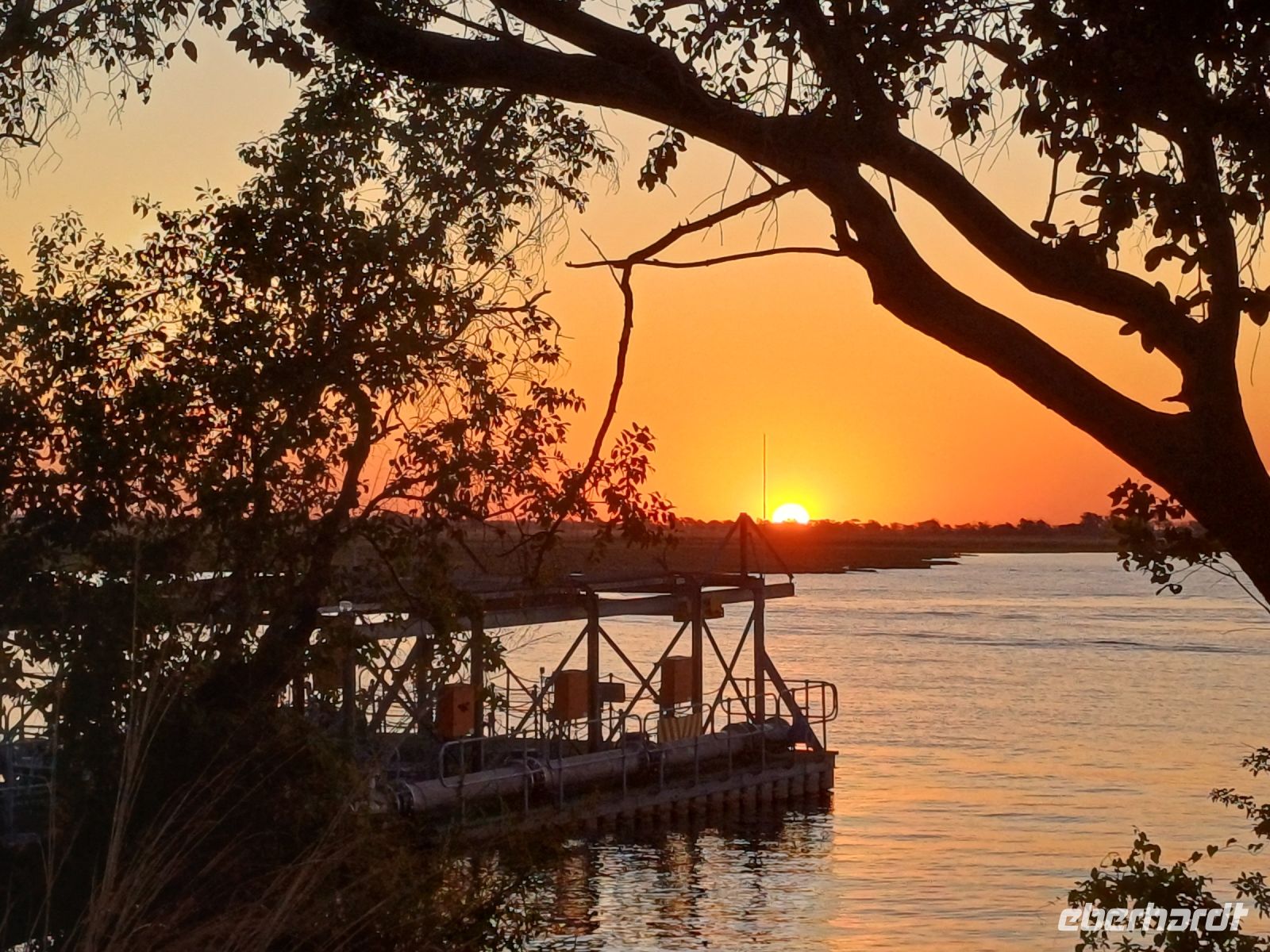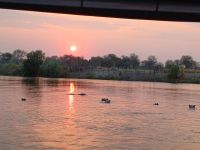 Heute verlassen wir Namibia und kehren zurück nach Botswana. Noch ein kurzer Stopp in Katima Mulilo und schon sind wir an der Grenze. Der Papierkram hat uns wieder. Ausreiseformular Namibia, Stempel im Pass und schon waren wir im Niemandsland. Hier gab es zwei Möglichkeiten mit dem Truchk & Jaco bis zum Grenzübergang nach Botswana oder mit Kathrin zu Fuss über die Ngoma-Brücke. Die Gruppe teilt sich ;-) & trifft sich zum gemeinsamen Schuhe desinfizieren wieder. Die Formaltäten sind schnell geklärt und die Fahrt ging weiter durch den den Chobe Nationalpark, einem der Bekanntesten in Botswana. In Kasan erreichen wir am frühen Nachmittag unser Quartier für wieder 2 Nächte , die Cobe River Lodge / Bush-Lodge. Schnell hatten wir unsere Zimmer bezogen und trafen uns zu einem gemütlichen Spaziergang durch die nördlichste Stadt Botswanas - Kasane. Diese liegt am Vierländereck Botswana, Namibia, Sambia und Simbabwe und unweit von Kasane mündet der Chobe in den Sambesi. Da es eine rein touristische Stadt ist gibt es allerdings nicht viel zu sehen außer Lodges, Shopping Center oder Souvenir-Shops. Den Tag ließen wir bei einem schönen Sonnenuntergang mit dem ein oder anderem Getränk und einem leckeren Abendessen im Sedudu Grill Restaurant ausklingen.