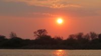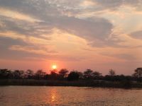 Am Morgen verließen wir die Thamalakane River Lodge via Maun - dem Tor zum Okavango-Delta. Unsere zu bewältigende Tagesstrecke beträgt heute ca. 380 km zuerst in Richtung Süden und dann weiter Richtung Nordwesten. Bei den Straßenverhältnissen dauert das ne Weile. In kleine Ort Gumare stoppen wir um unseren Truck zu tanken und uns bei den warmen Temperaturen ein Eis zu gönnen. Am Nachmittag erreichten wir die idyllisch am Okavango gelegene Shakawe River Lodge. Nach dem Bezug unserer strohgedeckten Chalets, mit allem denkbaren Komfort, haben wir etwas Zeit die Seele baumeln zu lassen. Dann trafen wir uns zur Sundowner-Bootsfahrt auf dem Okavango-Hauptkanal. Am Anfang hatte unser Böötchen leichte Startschwierigkeiten, die aber schnell behoben wurden. Während der Fahrt durch das Flussdelta konnten wir tolle Fotos von einheimischen Vögeln, Pflanzen wie Paphyrus und Krokodilen machen und einen wunderschönen Sonnenuntergang genießen. Unser Bootsführer zeigte uns auch wie ein Weißkopfsee Beute aus dem Wasser holte. Ein Fisch wurde ins Wasser geworfen, der Adler gerufen und schwups kam dieser angeflogen und schnappte sich den Leckerbissen. Toll dies einmal zu sehen. Ein wiederum schmackhaftes 3-Gänge-Menü beim gemeinsamen Abendessen beendete dann den Tag.