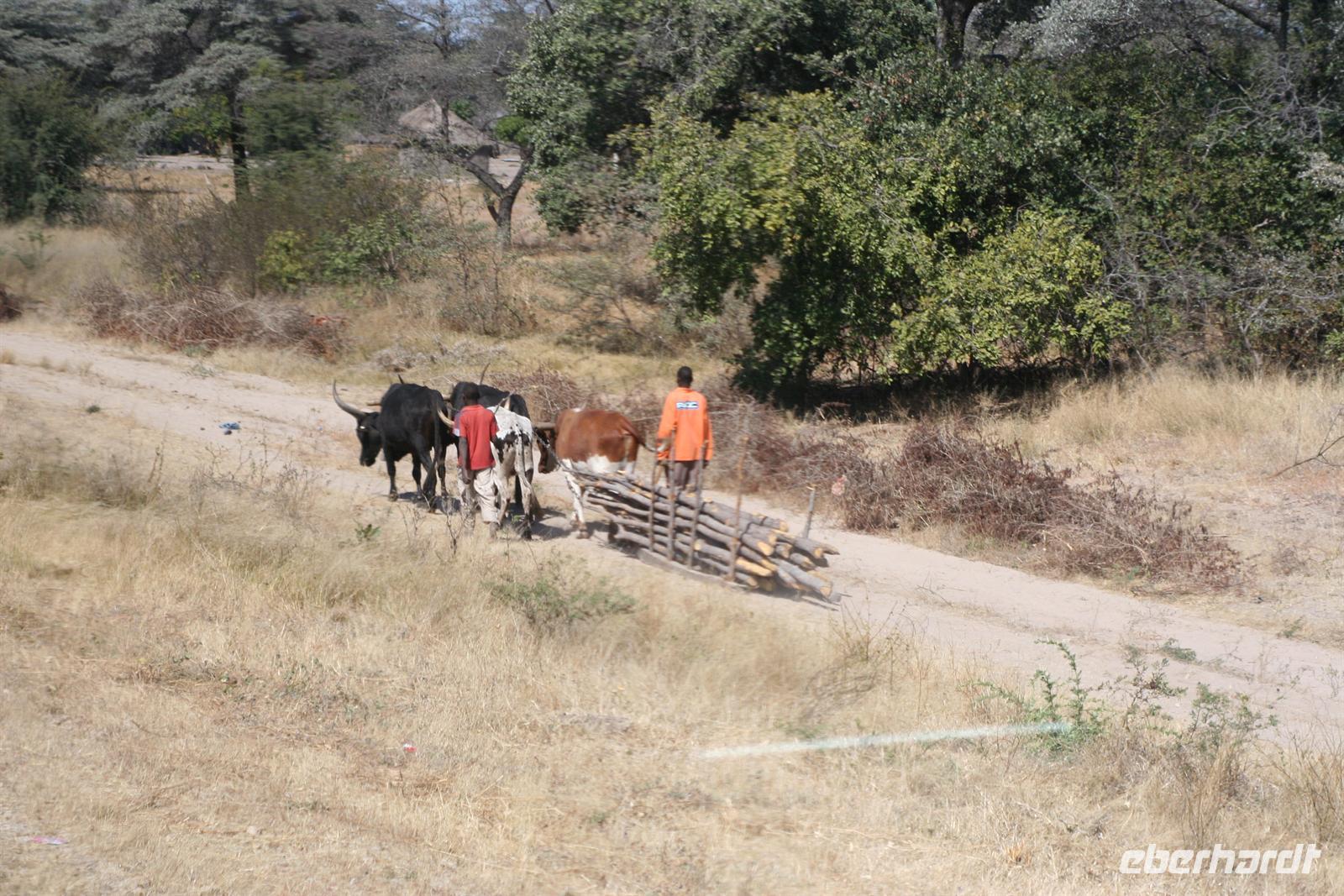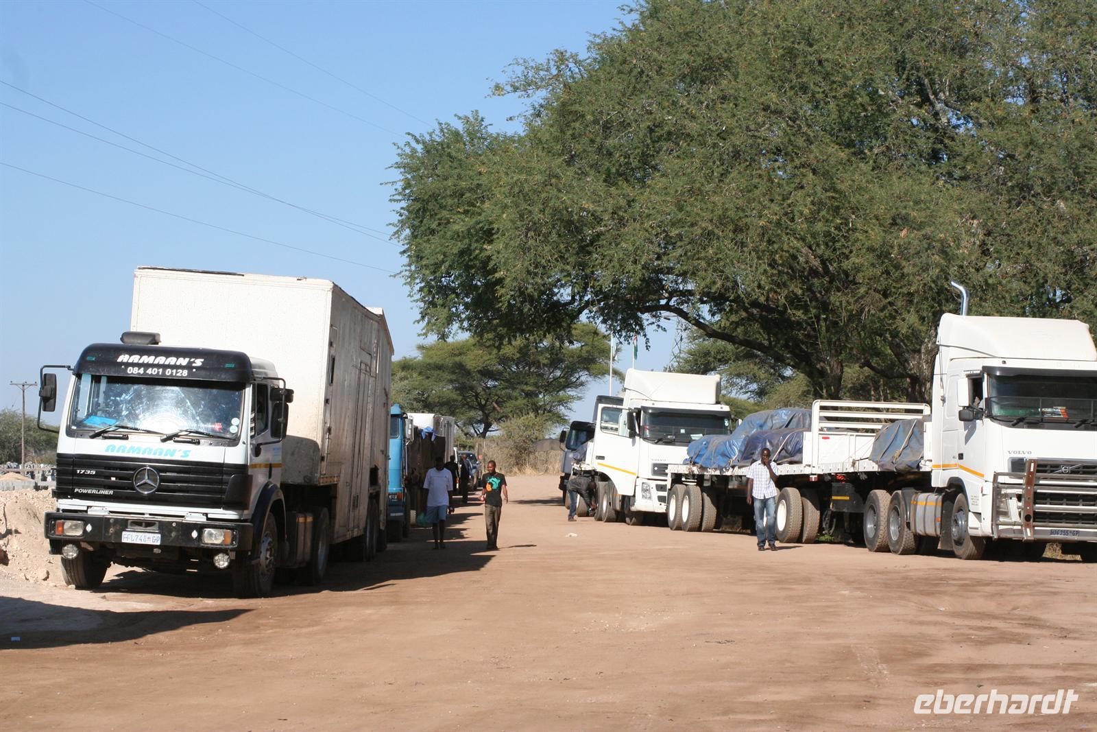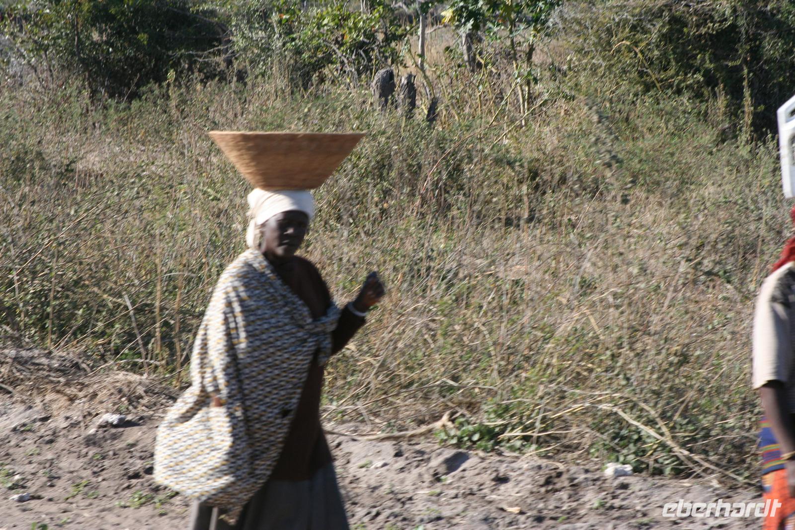Mit Mokoros und kleinen Fahrzeugen gelangten wir zum Parkplatz unseres Busses in Etsha. Auf der weiteren Fahrt passierten wir wieder eine Veterinärschleuse und