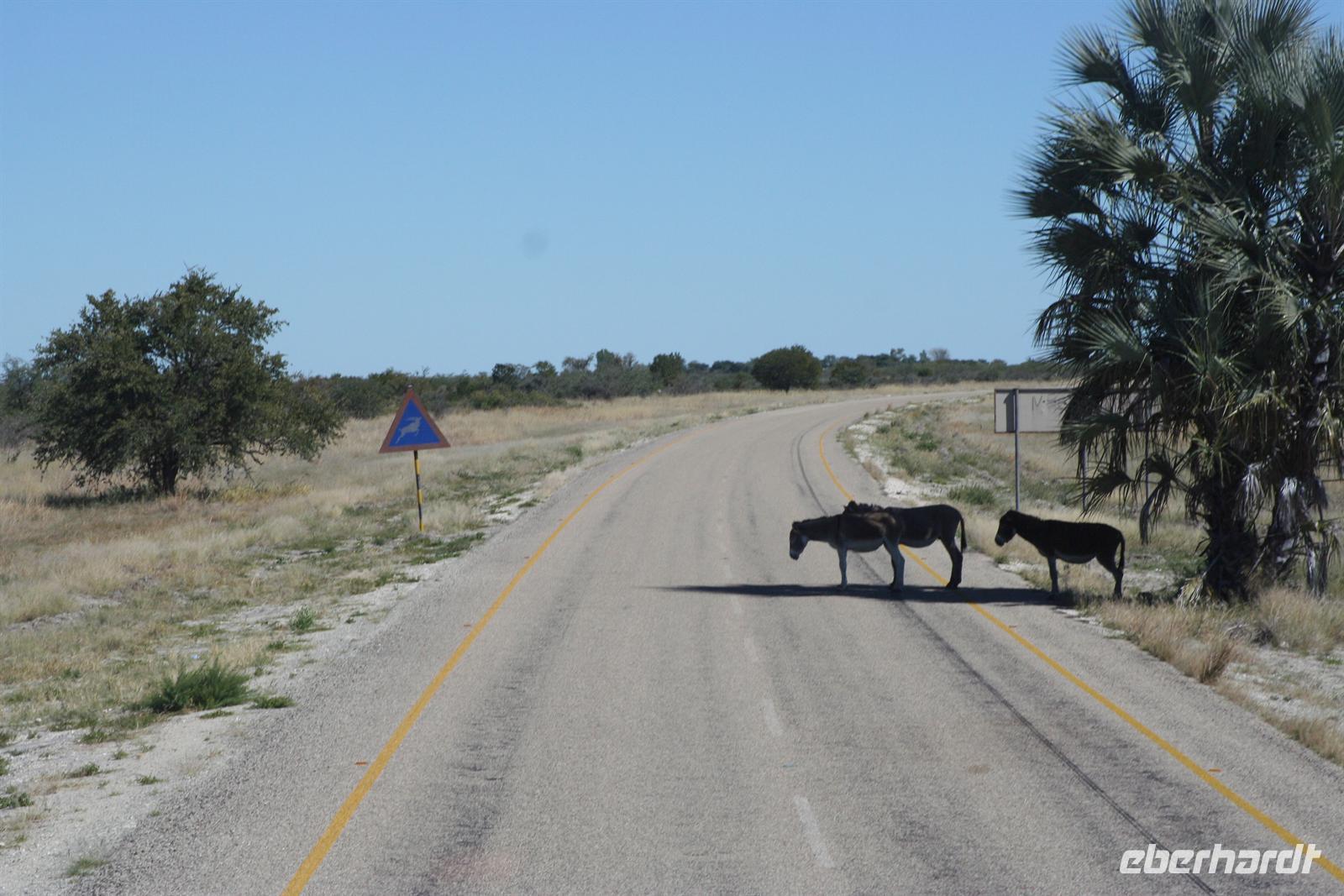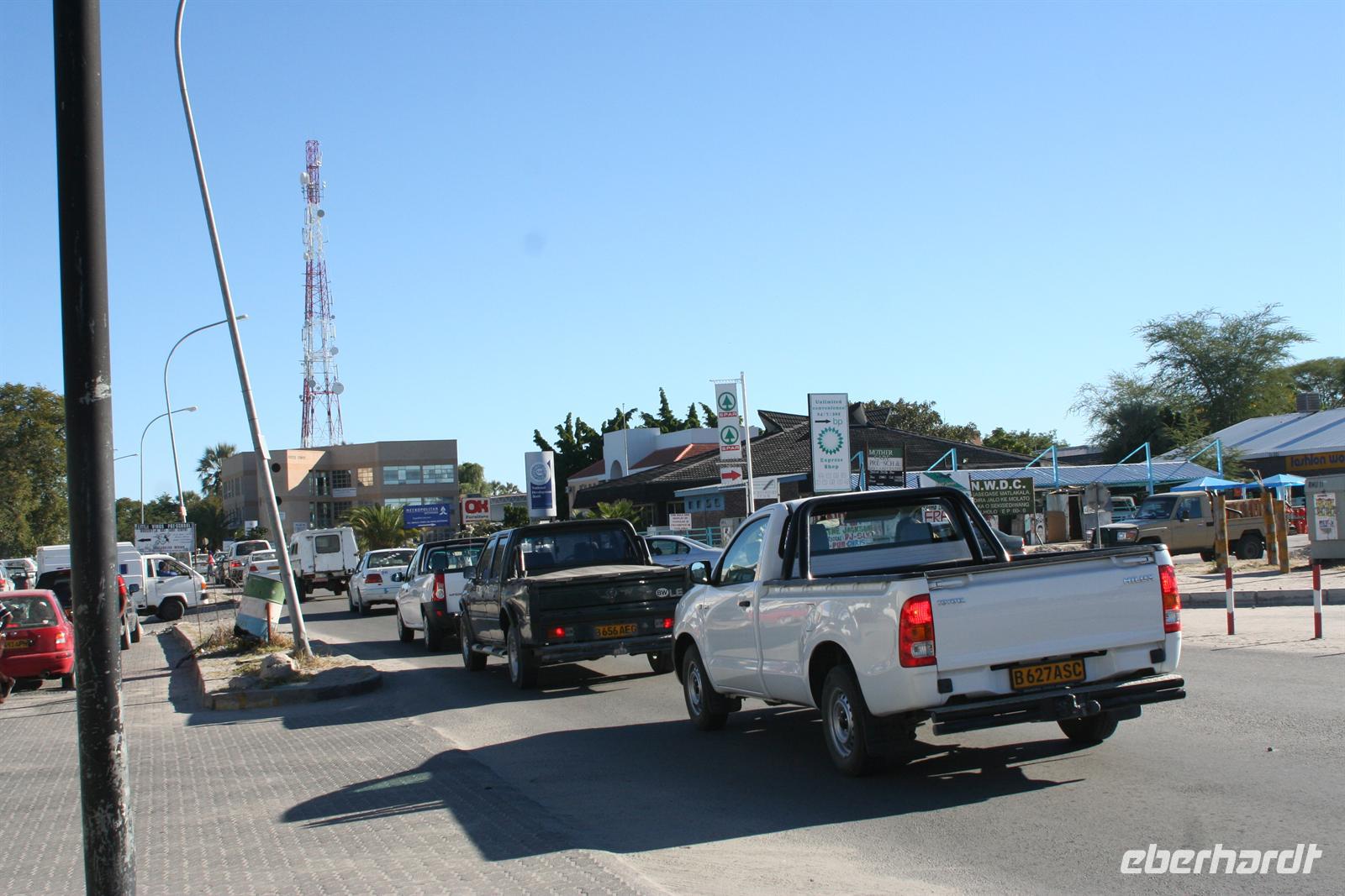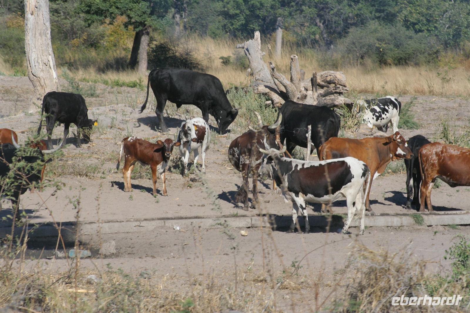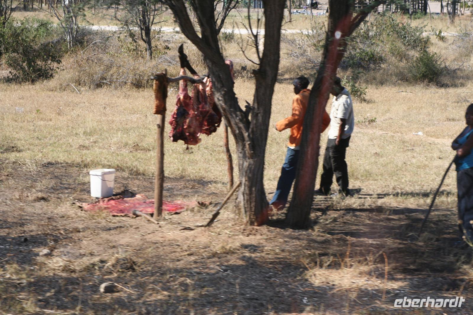 Mit Mokoros und kleinen Fahrzeugen gelangten wir zum Parkplatz unseres Busses in Etsha. Auf der weiteren Fahrt passierten wir wieder eine Veterinärschleuse und