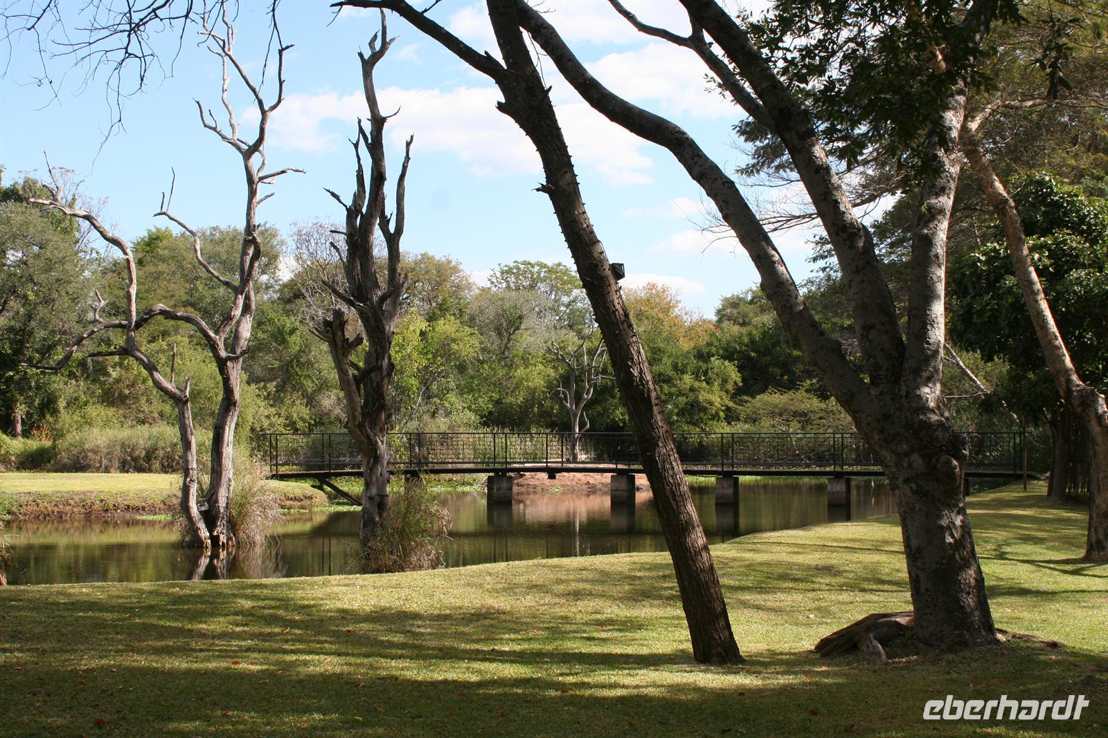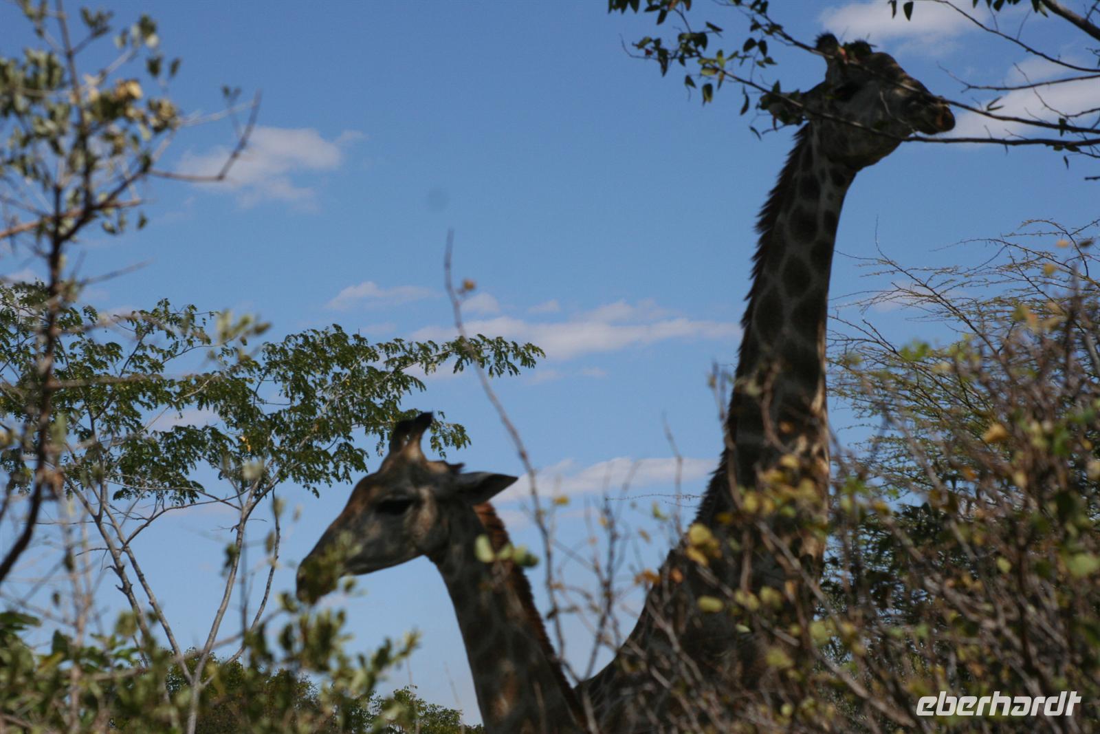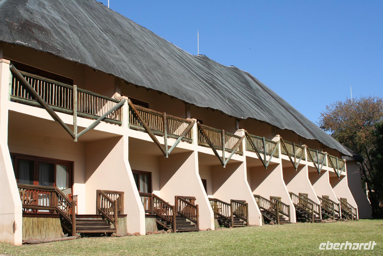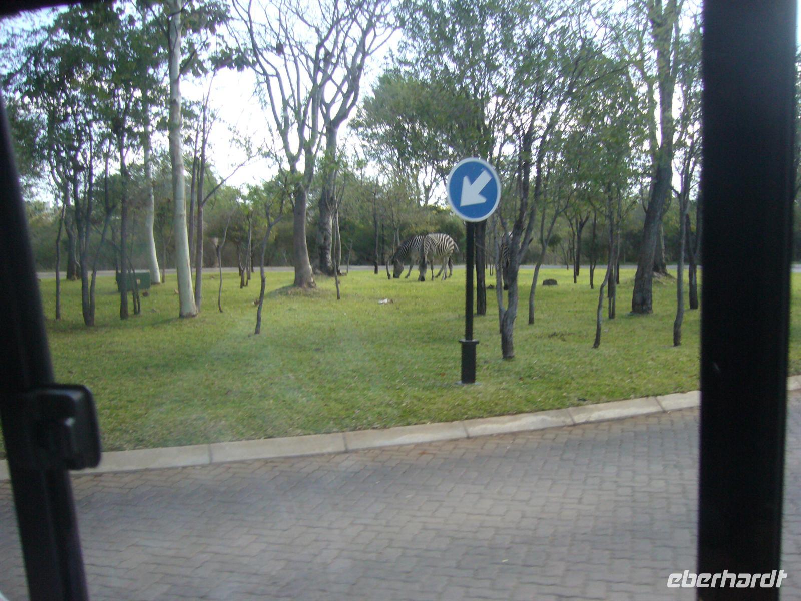 Im Sambesi Sun Resort, welches einen direkten Zugang zu den Wasserfällen (inklusive) hat, wurden wir mit Trommelwirbel, afrikanischen Tänzen und einem Fruchtcocktail begrüßt. Nach dem wir unsere modernen Zimmer mit Balkon oder Terrasse in der weitläufigen, gepflegten Anlage bezogen hatten, erkundeten wir die Umgebung: Poolanlage, Restaurants, Shops, Bar und ein Park, in dem sich Giraffen und Zebras tummelten, außerhalb des bewachten Geländes spazierten auch Elefanten!