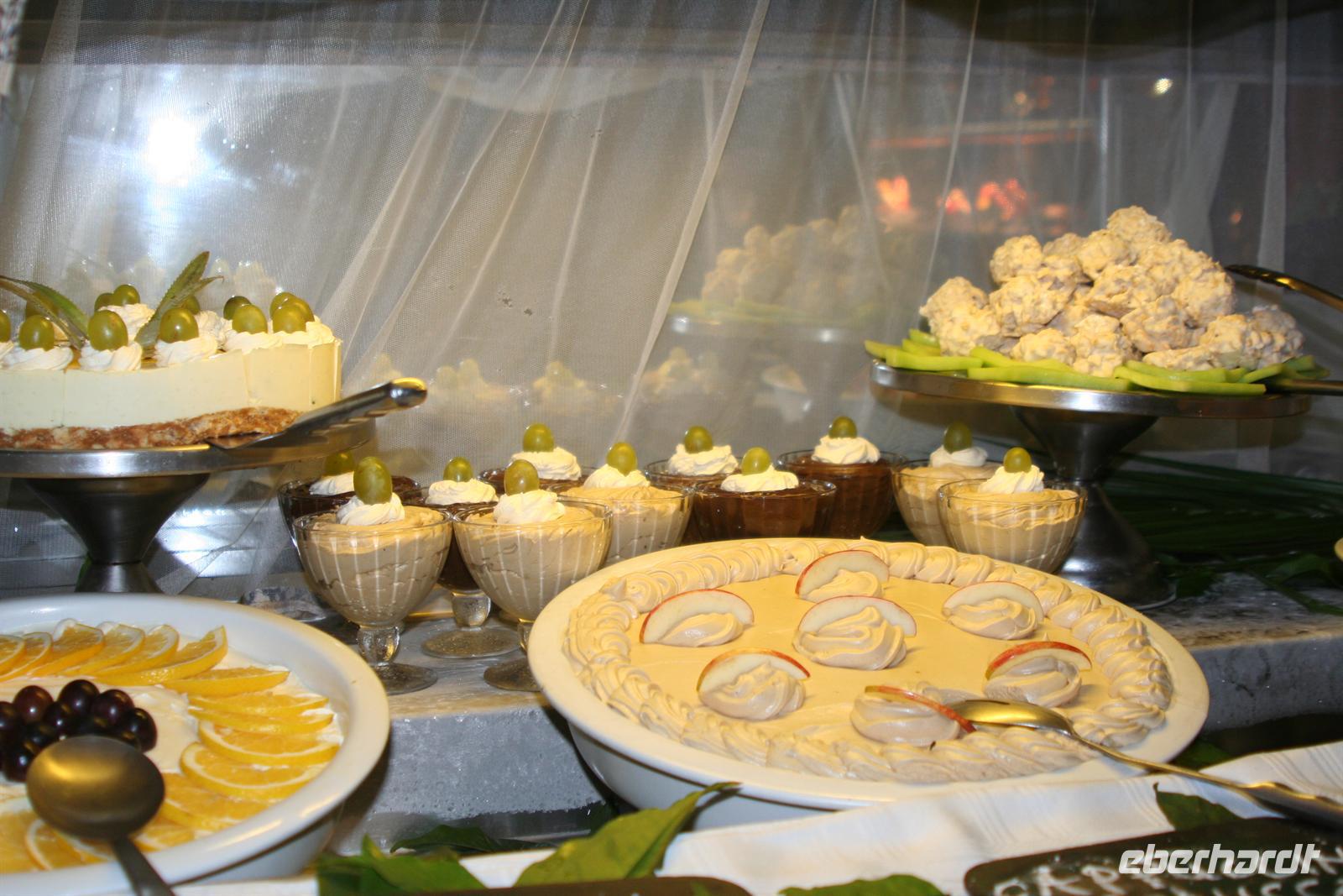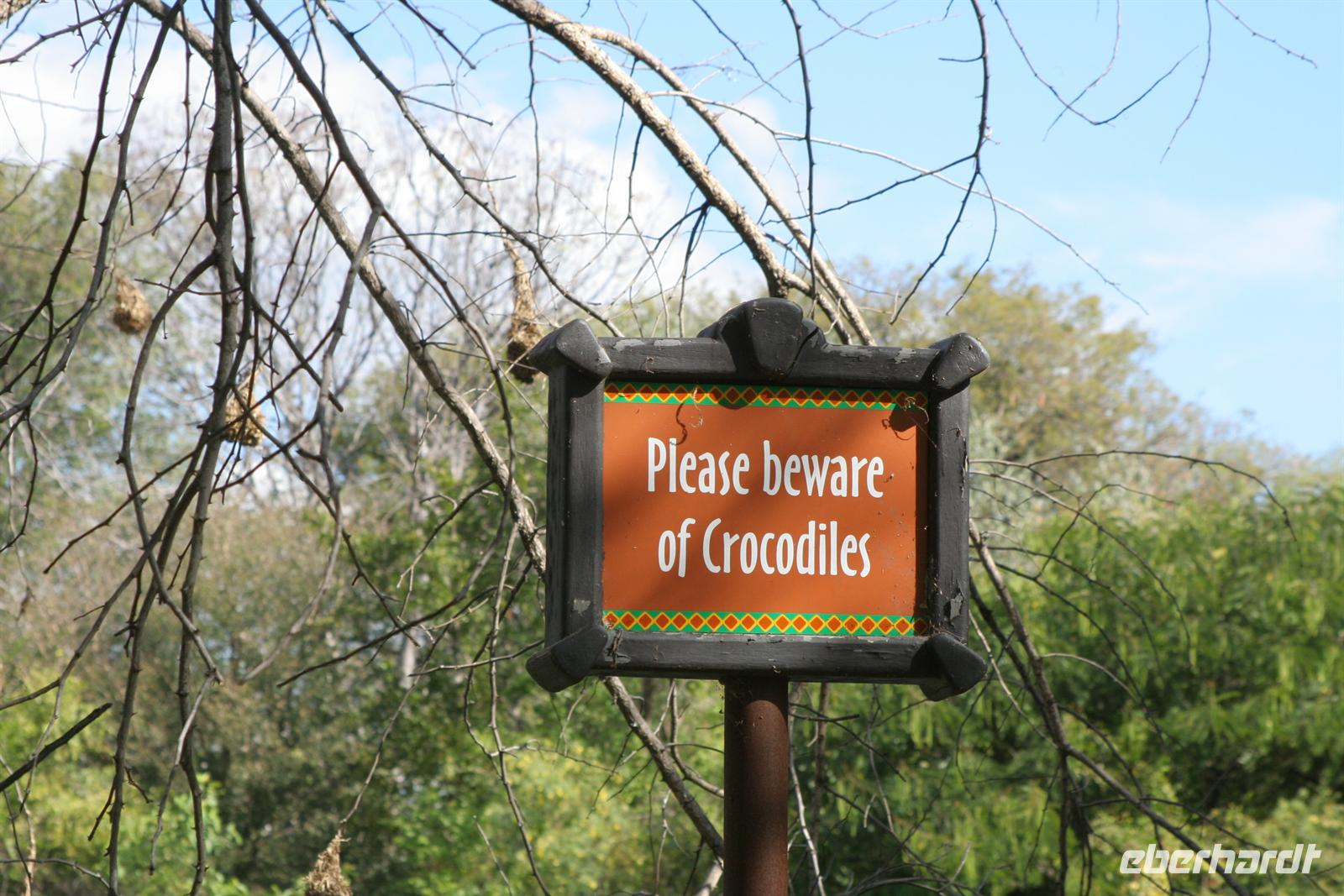 Auch unsere Zimmer liessen keine Wünsche offen. Den freien Nachmittag genossen wir bei Sonnenschein am Pool und beim Erkunden des Geländes. Am Ufer weckten diverse Warnschilder unser Interesse: Vorsicht Krokodile! Also gingen wir äußerst vorsichtig auf Pirsch am Flussufer. Zum Sonnenuntergang trafen wir uns in der Bar und unsere männlichen Reisegäste wurden mit einem deutschen Schnäpschen überrascht (heute war Männertag). Das Abendessen genossen wir anschließend in vollen Zügen: ein riesiges Buffet mit Schauküche, Grill und allen erdenklichen Köstlichkeiten erwartete uns. Kein Wunder, dass wir fast 3 h das Abendessen zelebrierten und ich, Süssschnauze noch einmal ans Dessertbuffet musste. Obwohl wir am nächsten Tag früh aufstehen mußten, wurde der Abend noch lang.