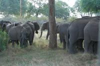 Auf unserer Pirschfahrt sahen wir unzählige Elefantenherden, seltene Säbelantilopen, Zebras, Impalas, Wasserböcke, Paviane und jede Menge große und kleine Vögel. An einem See bauten wir unsere "Bar" auf und genossen bei einem kühlen Getränk die untergehende Sonne, während sich ein Elefant ganz ungeniert an uns heran schlich und bald unsere ganze Aufmerksamkeit auf sich zog. Bei diesem super Ausflug vergassen wir die Zeit und fuhren im Dunklen zurück. Die Bootsfahrt war umso spannender. In der Lodge wurden wir mit einem Sherry empfangen, der uns schnell wieder aufwärmte. Beim gemeinsamen Abendessen und am Lagerfeuer mit einem Amarula liessen wir diesen erlebnisreichen Tag ausklingen.