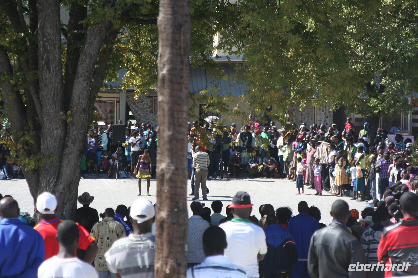 Nach dem Frühstück statteten wir der nahe liegenden, namibischen Grundschule noch einen spontanen Besuch ab. Obwohl Ferien (Feiertag) waren und keine Schüler über den Hof tobten, gab uns die freundliche Schulleiterin (Lehrer wohnen auf dem Gelände) eine kleine, interessante Führung durch das neue Schulgelände (diese Schule wurde erst im vergangenen Jahr aus Fördermitteln und mit finanzieller Unterstützung der Regierung gebaut).