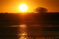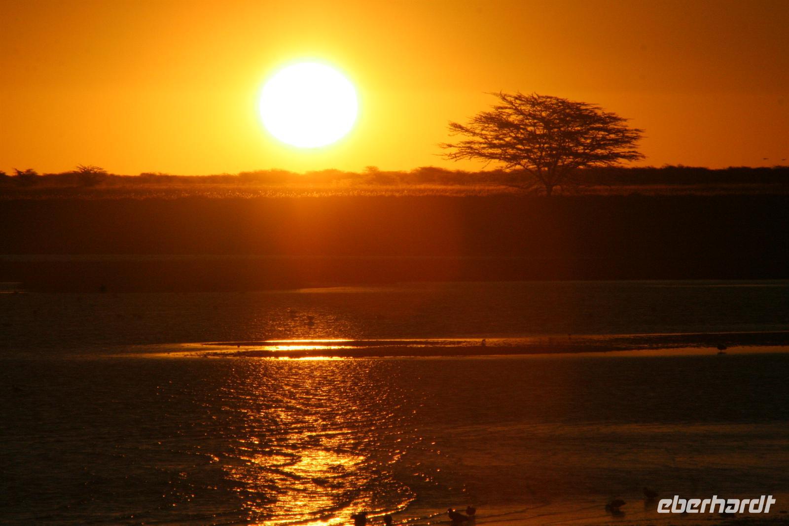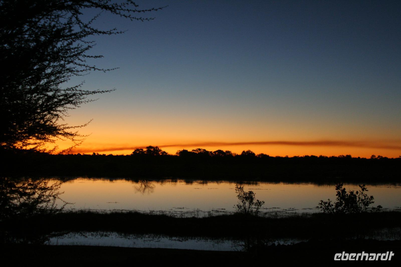 Am Rande des See erlebten wir einen unglaublichen Sonnenuntergang in der Einsamkeit, den wir anschließend mit einem "Sundowner" begossen.