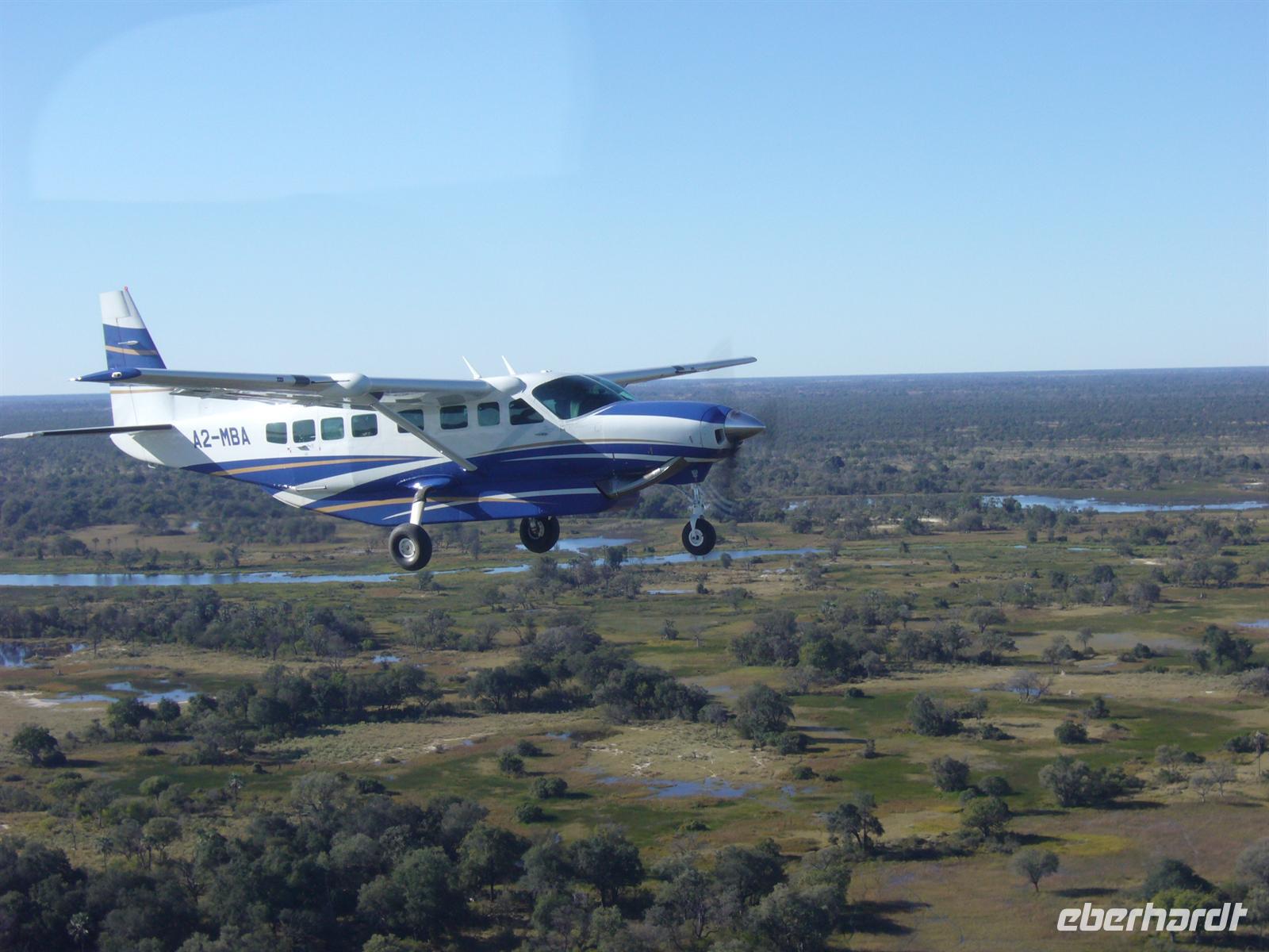 Pirschfahrt im Moremi–Reservat und Flug über das Okavango–Delta