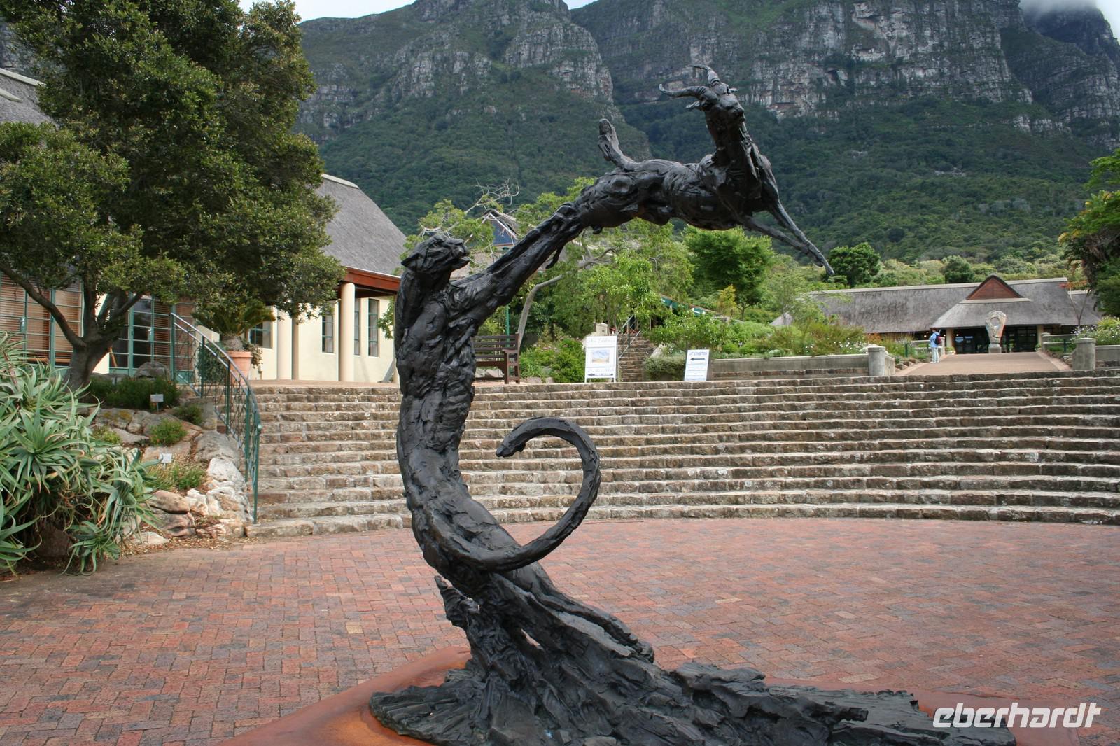 Der nächste Morgen begann natürlich bedrückt! Das Hotelpersonal konnte zwar einige Dinge aufklären, aber es gab keine Beweise! Wir warteten auf den Ermittler, während der Rest der Gruppe zur Besichtigung des Botanischen Garten in Kirstenbosch fuhr - sie kamen davon begeistert zurück. Der nächste Weg führte uns zur Botschaft, um einen neuen Pass zu beantragen, die Ausstellung sollte sofort möglich sein bei Bestätigung durch die deutsche Behörde. Dies dauerte dann einige Zeit und benötigte einige Telefonate. Wir beschlossen, dass ich mit der betroffenen Familie in Kapstadt bleibe und Andrea mit den anderen Gästen planmäßig nach Knysna fährt. Als wir den neuen Pass hatten, versuchten wir unser Glück auf der amerikanischen Botschaft, aber diese kann nur helfen bei vorheriger Registrierung im Internet. Was das Eberhardt-Büro in Deutschland erledigte und uns somit einen Termin für den nächsten Morgen besorgen konnte. Wir fuhren zu einem sehr schönen Hotel in Kapstadt und beruhigten bei einem Abendessen in kleiner Runde di Nerven. Für den nächsten Nachmittag buchten wir Flüge nach Port Elizabeth, um dort wieder auf die Gruppe zu treffen. Die Gruppe hatte mit Andrea derweil den Weg nach Knysna zurück gelegt und erlebte ein leckeres Abendessen in der Lagunenstadt.