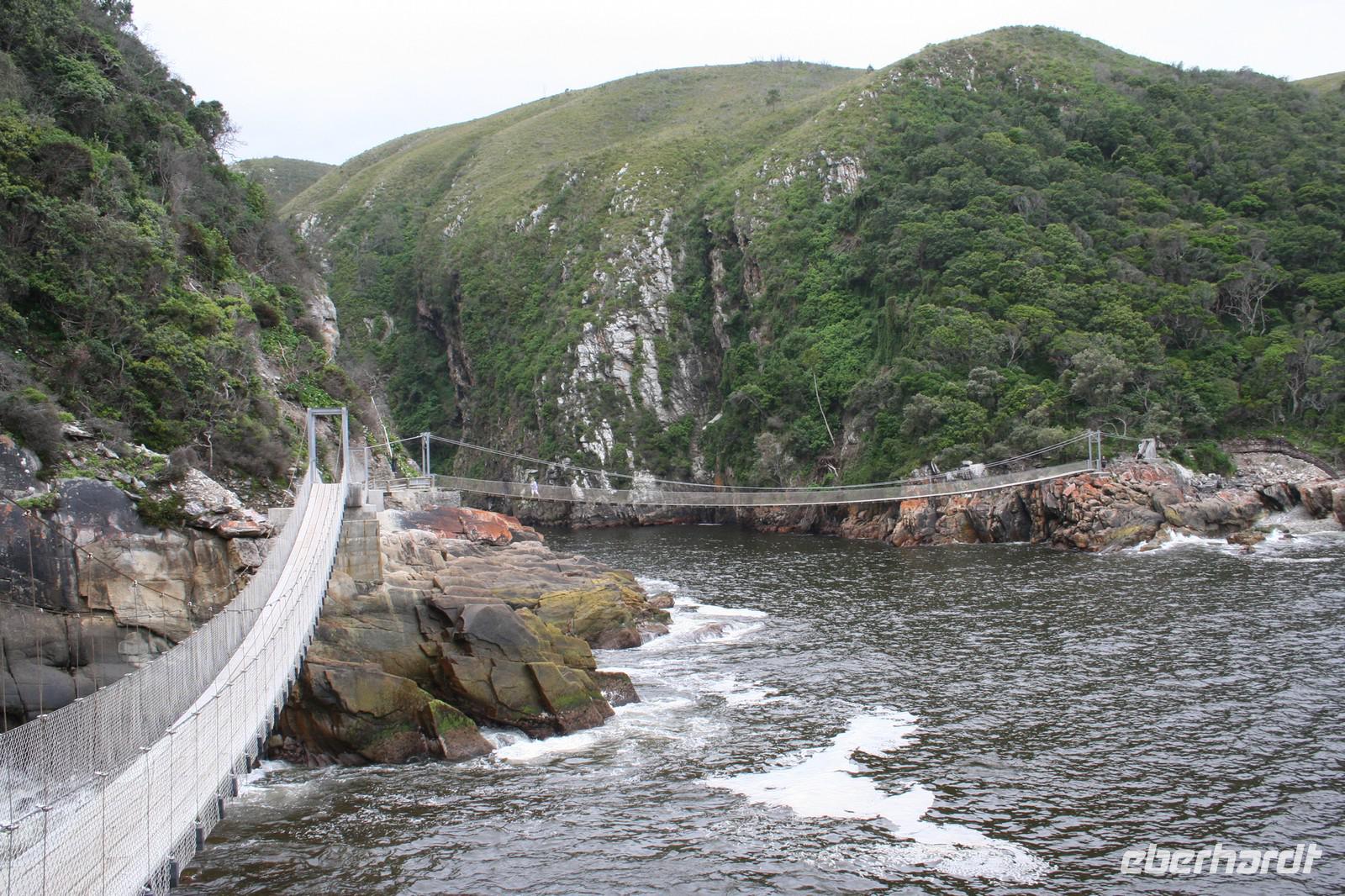 Die Gruppe, die ich in Andreas vertrauensvolle Hände gegeben hatte, konnte sich heute von der Schönheit des Tsitsikamma-Nationalparks überzeugen und begoss dies auch mit einem leckeren Amarula in schöner Kulisse. Dazu konnten alle getrocknete Früchte und das für Afrika typische Biltong und Droewors probieren. Natürlich stand auch der riesige Gelbholzbaum auf dem Programm und an der höchsten Bungee-Brücke (behaupten zumindest die Afrikaner ) konnte man sogar einige Mutige beobachten.Für uns drei „Noch-Kapstädter“ stand heute ein wichtiger Termin auf der Agenda! Die amerikanische Botschaft, allerdings wurden wir schon nach 2 Minuten wieder weg geschickt, denn die Passfotos, die die Deutsche Botschaft verlangt, werden natürlich bei der amerikanischen Botschaft nicht akzeptiert. Die Apotheke, die solche Fotos ausstellt, hatte typisch afrikanische Öffnungszeiten (8.30 Uhr (+/-) und so konnten wir auch erst 15 Minuten später die Fotos bekommen. Nach einem langen Sicherheitscheck stellten wir uns für das Interview zur Visa-Beantragung an. Der Mann war sehr verständnisvoll, stellte nur kurz wenige Fragen und nahm die Fingerabdrücke ab. Er gab auch gleich seiner Kollegin Bescheid und sie nahm uns gleich im Anschluss an die Reihe, erklärte uns aber, dass es sich um ein automatisches System der Abfrage in Washington handelt und sie nichts zur Beschleunigung tun kann und das Visum eigentlich 12 Stunden dauert. Enttäuschung machte sich breit und wir gingen erst einmal einen Kaffee trinken. Aber schon klingelte mein Telefon und wir erhielten die Info, dass das Visum im Pass zur Abholung bereit ist. Endlich waren alle Formalitäten erledigt. Alle etwas glücklicher fuhren wir zum Flughafen, um am Abend die Gruppe in Port Elizabeth wieder zu treffen. Beim Abendessen wurden die Ereignisse der letzten Tage erörtert und wir kullerten sozusagen aus dem Restaurant, denn die Portionen waren riesig, wie auch die Lautstärke, aber ruhig wurde es dafür die nächsten beiden Tage…