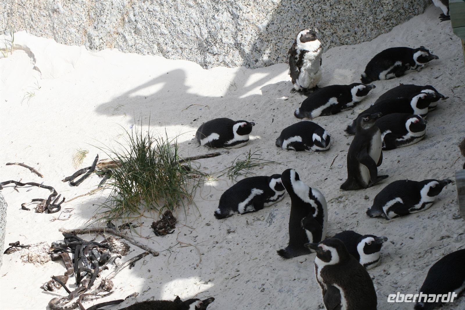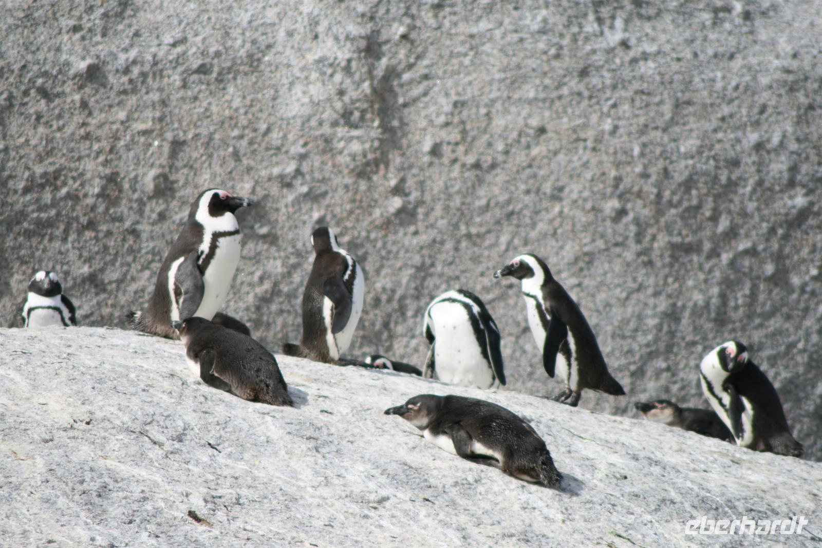 Im Anschluss durfte natürlich das obligatorische Foto nicht fehlen und als Abschluss des Tagesprogramms statteten wir den African Penguins in Boulders Beach noch einen Besuch ab. Sehr euphorisch waren die putzigen Tierchen nicht, denn sie befinden sich gerade in der Mauser und können somit drei Wochen nicht fressen, weil sie in dieser Zeit nicht ins Wasser können. Dann erfolgte der heiß ersehnte Check-In im Hotel und alle genossen eine heiße Dusche und fühlten sich in neuer Kleidung wie neue Menschen . Gut so, denn wir hatten noch einen wunderschönen Tagesabschluss vor - ein Abendessen im Drehrestaurant des Ritz Hotels, im 21. Stockwerk mit wunderbarem Ausblick auf Kapstadt und den Atlantik. Eine tolle Aussicht, ein tolles Menü, ein toller Tagesabschluss und Reiseauftakt!