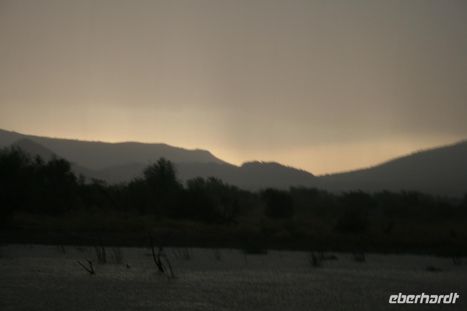 Beeindruckend waren die bedrohlichen Donner und Blitze schon und es können wahrscheinlich nicht viele von einem solchen Erlebnis in Afrika berichten, aber nach einer halben Stunde gaben wir auf und fuhren zurück in die Lodge. Allerdings waren wir schon ziemlich „nass wie Pudel“ und von dem warmen Regen, den uns unser Fahrer versprochen hatte, spürten wir auch nichts mehr. Aber nach einer heißen Dusche ging es allen wieder gut und wir genossen ausgiebig die vorzügliche Küche der Lodge.