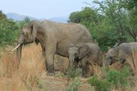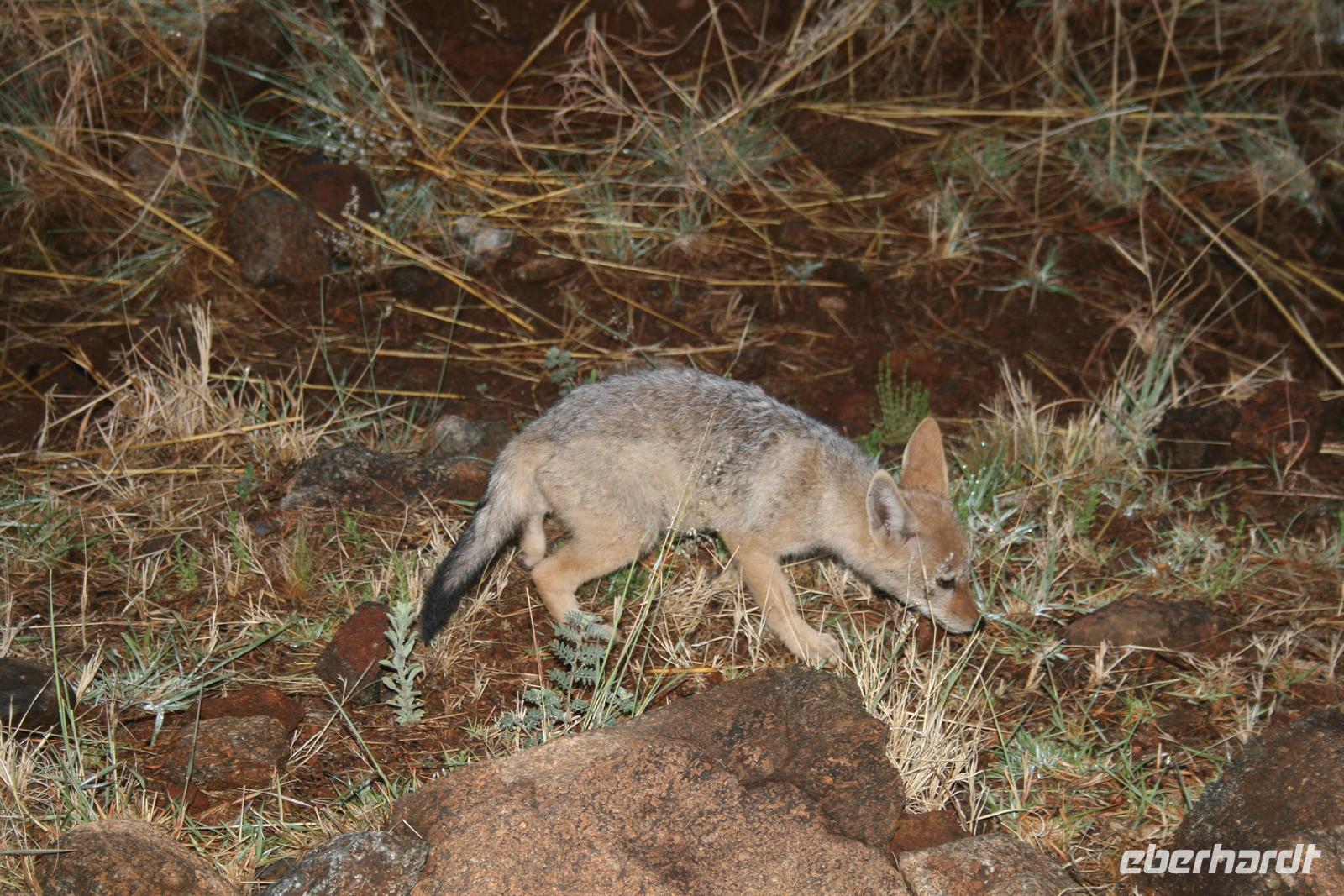 Wir wurden belohnt - die Elefanten kreuzten die Straße zwischen unserem Jeep und den anderen. Da hielten wir schon mal die Luft an und staunten! Ein beeindruckendes Erlebnis! Auf dem Heimweg brach die Dunkelheit ein und unser Fahrer, Jan-Hendrik, versuchte mit einem zusätzlichen Scheinwerfer noch ein Tier zu erspähen. Wir entdeckten keines und waren dennoch höchst zufrieden mit unserem Tag. Als Abschluss erlebten wir noch ein typisches Braai - ein Grillen im Nationalpark unter freiem Himmel. Und der Schakal, der uns beiwohnte, freut sich auch jeden Tag über dieses Ereignis.