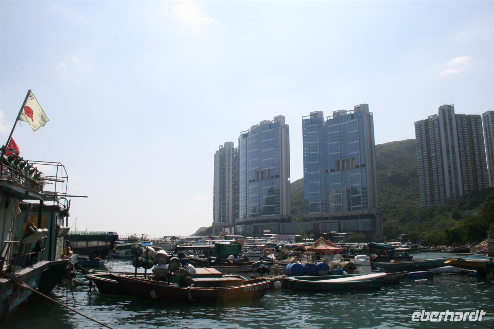 Wir erreichten Hongkong etwas verspätet, aber bei herrlichem Sonnenschein und 25 Grad Celsius. Frau May erwartete uns bereits und wir begannen gleich mit einer Erkundung der 7-Millionen-Metropole. Viele Hochhäuser aber auch viel Grün und Wasser zeichnen diese Metropole aus. Zuerst stoppten wir an der Repulse Bay, an der ein gutes Beispiel des Glaubens der Hongkonger steht - ein Hochhaus mit einem Loch in der Mitte, das dem Drachen der in dem dahinterliegenden Berg wohnt, erlaubt, frei zu fliegen. Das Haus wurde somit nach Feng Shui gebaut. Die Geschichte über die wir am meisten staunten, betrifft aber den Nachwuchs - zum einen ist es sehr teuer Kinder aufzuziehen, da diese neben den besten Schulen auch diverse Kunst- und Sportkurse besuchen müssen. Am entscheidendsten für die glückliche Zukunft des Kindes ist der Geburtstermin - dafür wird eine Wahrsagerin befragt, die einen Termin 4-8 (!) Wochen vor dem offiziellen Geburtstermin festlegt, an welchem das Kind per Kaiserschnitt geboren wird.Wir schlenderten zwischen allerlei Souvenirs und Kleidung über den Stanley-Markt und legten eine kleine Dschunken-Rundfahrt im Aberdeen-Hafen zu den Hausbooten ein. Die uns umgebenden Jachten waren auch nicht zu verachten. Im Hotel wurde dann eine kleine Erfrischungspause eingelegt und am Nachmittag legten wir einen Spaziergang zum Hongkong Park ein - eine ruhige, grüne Oase inmitten der lauten Großstadt. Der Zugang war nicht so leicht zu finden und somit mussten wir einige Umwegen gehen, aber nach dem vielen Sitzen im Bus und Flieger tat uns das Laufen gut. Zum Abschluss unseres Hongkong-Aufenthaltes fuhren wir zum Aussichtspunkt Victorias Peak und betrachteten die Stadt von oben. Das Abendessen hielt einige Überraschungen bereit und ich hoffe, dass der Blick auf das nächtliche Hongkong einiges wieder gut machen konnte.