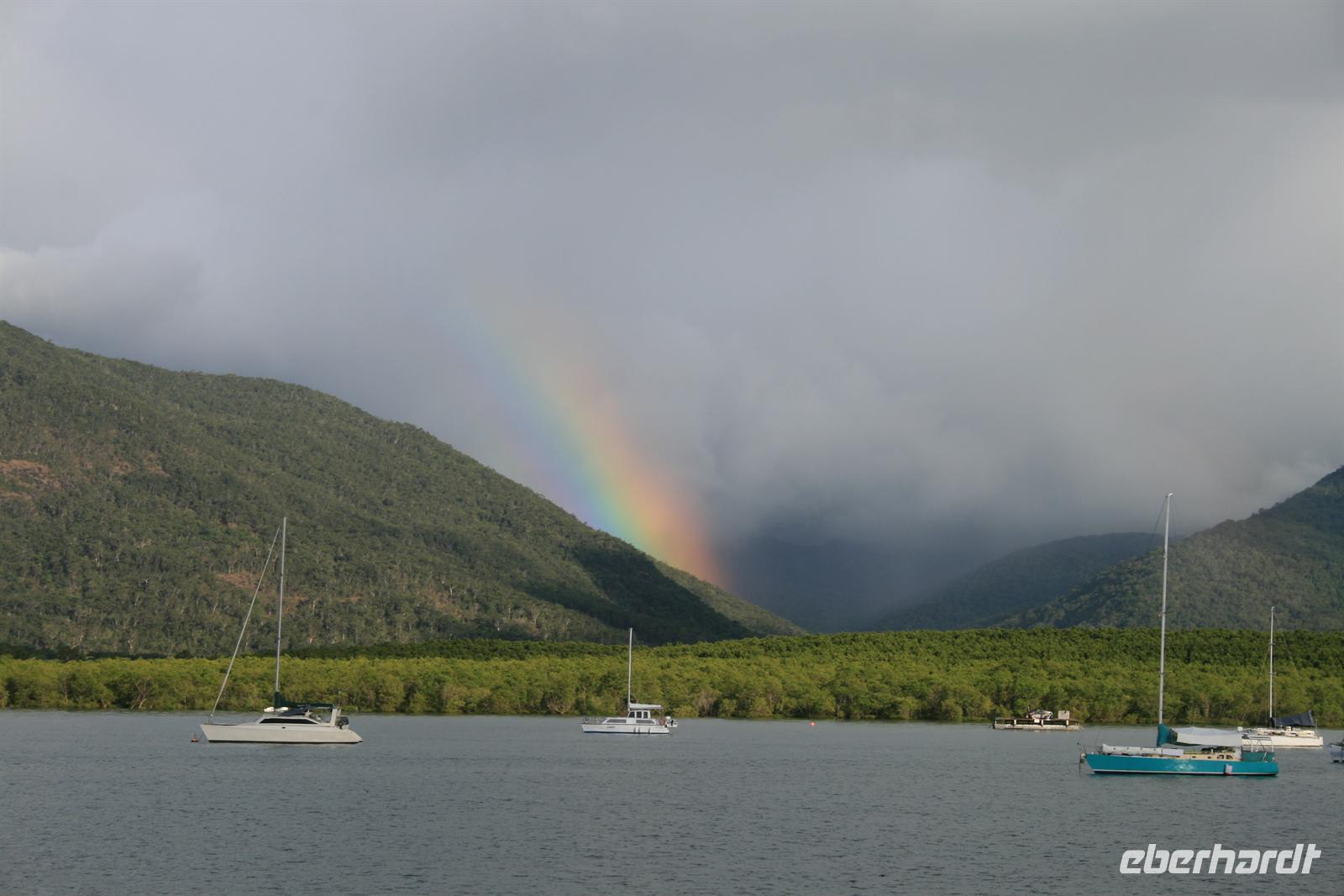 es, bis zum Riff, also nah an die Korallen zu schwimmen, und sich dort treiben zu lassen. Mit etwas Geduld entdeckt man einen Fisch nach dem anderen, einer bunter als der andere und auch unter den Korallen entdeckte man die verschiedensten Farben! Rundum war dies wieder ein tolles Erlebnis - für viele auch das erste Mal Schnorcheln. Auf der Rückfahrt hatte sich der Wellengang ein wenig beruhigt und als tolle Zugabe sahen wir mehrere leuchtende Regenbögen! Herrlich! Das Abendessen genossen wir größtenteils wieder im Hotelrestaurant und waren auch sehr froh darüber, denn es goss wie aus Kannen - aber das gehört zum grün-üppigen tropischen Norden.