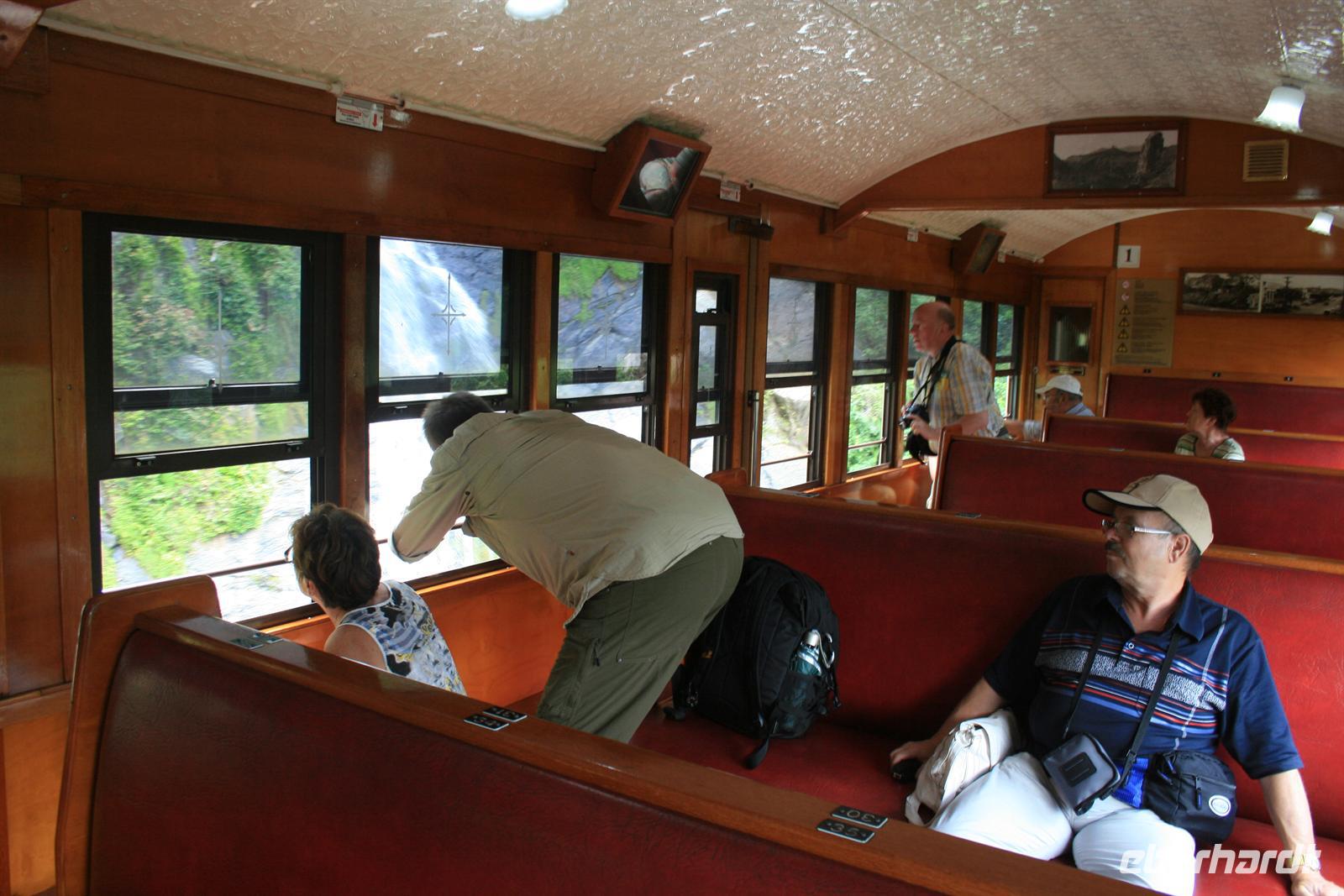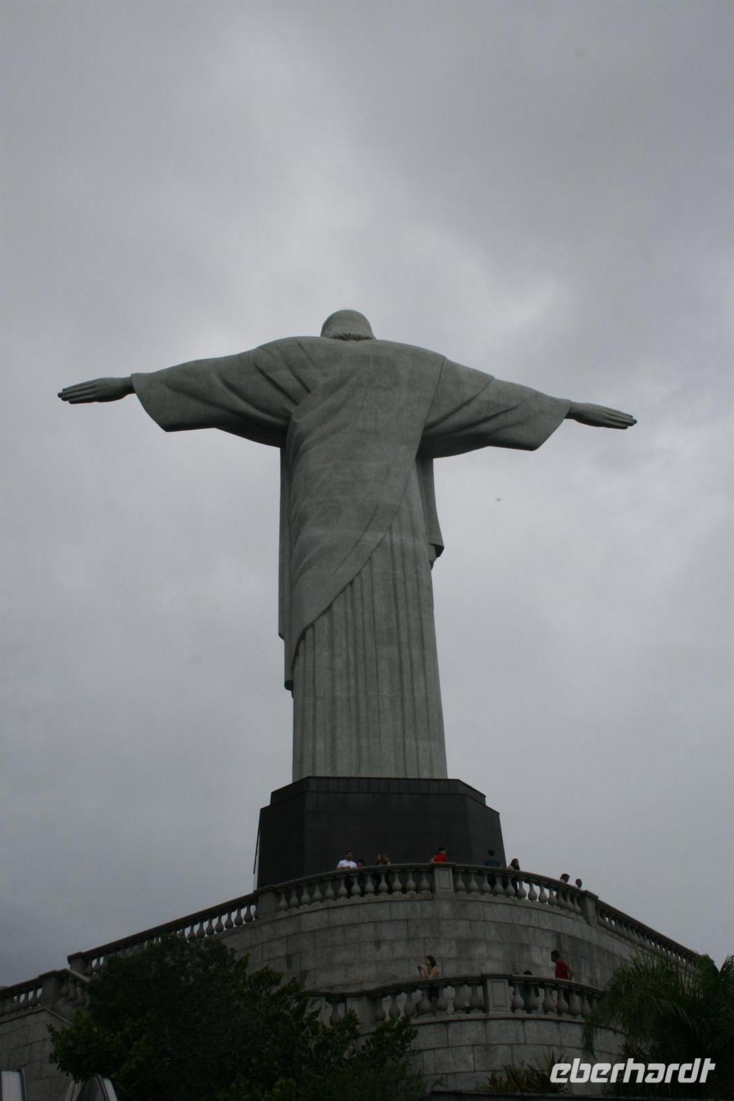 Zurück am Bus entschieden wir aufgrund des tollen Blickes auch heute gleich auf den Corcovado zu fahren. Diese Auffahrt war ein Erlebnis für sich - mitten durch den sattgrünen Regenwald sahen wir riesige Jackfrüchte und kleine Mangos an den Bäumen. Im ersten Wagen sorgte eine Combo auch für Salsaklänge während der Auf- und Abfahrt. Auf dem Corcovado stand ein Bild mit der riesigen Statue natürlich ganz oben auf der Wunschliste und wir haben doch einige tolle Schnappschüsse verewigt. Von dem 709 Meter hohen Berg konnten wir noch einmal den Blick schweifen lassen und stellten fest, dass die ersten Wolken im Anmarsch waren, was sich auch am Nachmittag bestätigte. Wir hatten also alles richtig entschieden.