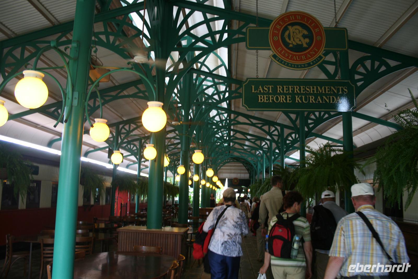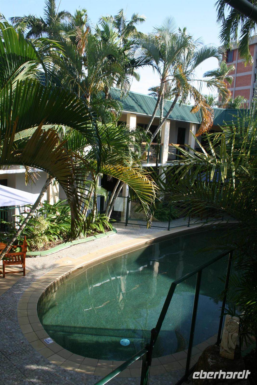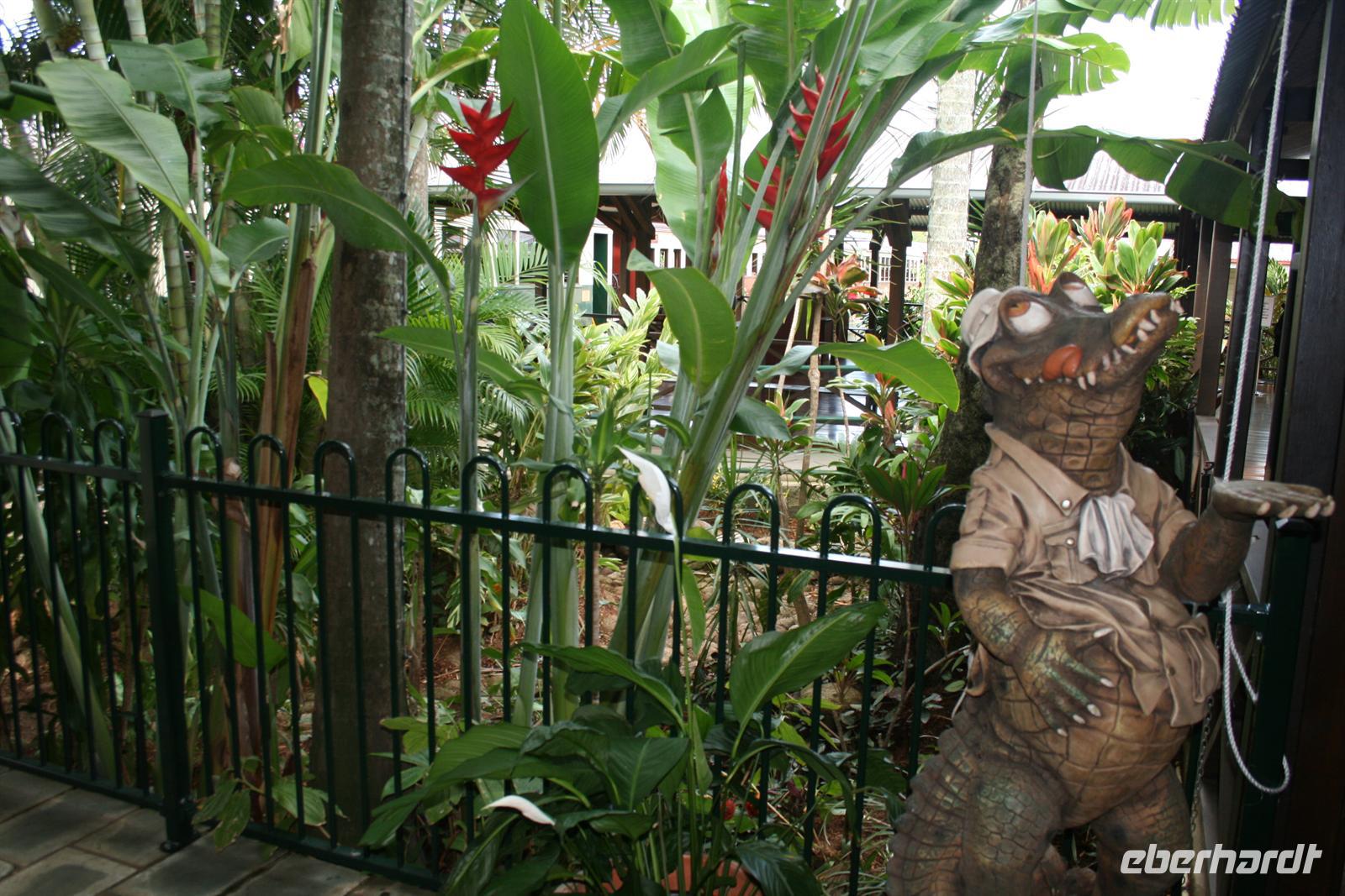 Der Umstieg in Brisbane war aufgrund einer nochmaligen intensiven Sicherheitskontrolle etwas anstrengend, aber wir freuten uns, am frühen Nachmittag im tropischen Cairns anzukommen. Der heutige Tag galt dann der Erholung und der ersten Erkundung des Örtchens Cairns. Bei einem Spaziergang entlang der Promenade ließen wir die tolle Atmosphäre des tropischen Ortes auf uns wirken. Einige erkundeten noch das lebhafte „Nachtleben“ und ein großer Teil der Gruppe ging im balinesischen Restaurant des Hotels essen. Das Essen ist nicht billig, aber von bester Qualität und so ließen wir es uns schmecken und gut gehen. Sowohl Fisch und vegetarische Gerichte als auch australische Spezialitäten wie Krokodil findet man auf der Speisekarte. Auch Alkohol ist in Australien nicht so preiswert wie bei uns, aber das Bier schmeckt gut und in der Happy Hour ist es auch um einiges günstiger. Natürlich waren alle müde von der Anreise und so schliefen wir bald friedlich.