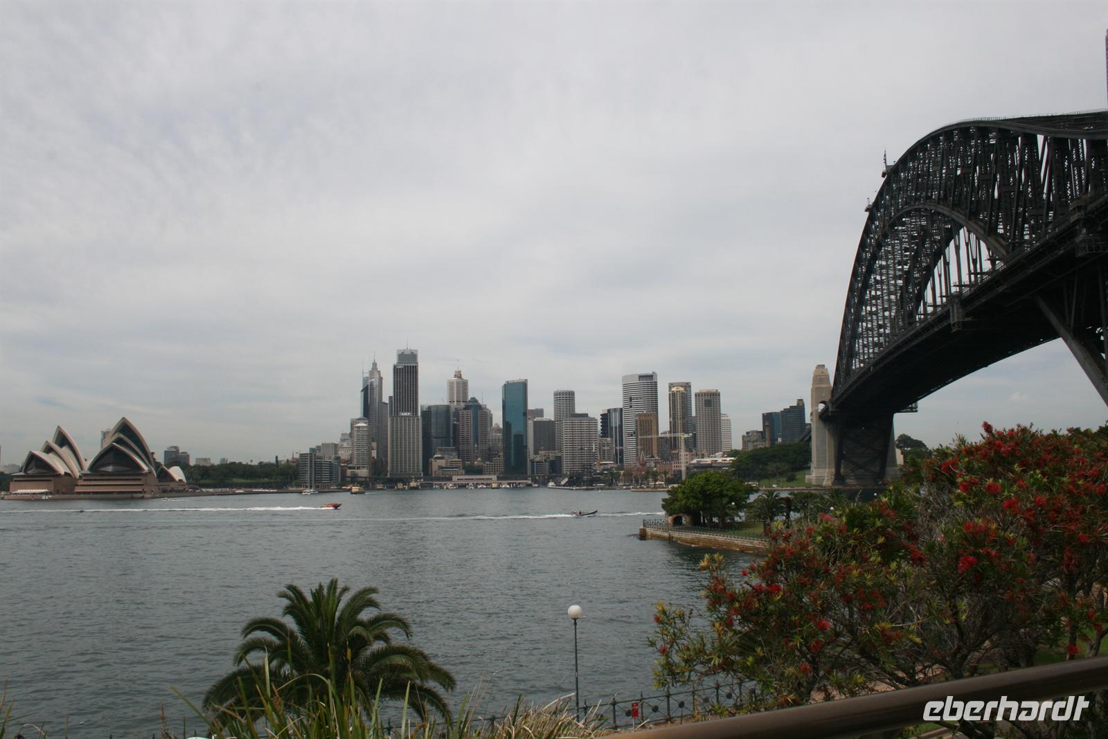 The Rocks… Wir stoppten hier und da für ein gutes Foto, z.B. von der Harbour Bridge und dem Opernhaus, und bewunderten die Pflanzenvielfalt im königlichen botanischen Garten. Die Museen in Sydney sind alle kostenfrei und so verbanden wir einen Toilettenstopp mit der Besichtigung von Aborigine-Kunst in der Kunsthalle von Sydney. Nach einer kurzen Mittagspause bestaunten wir das berühmte Opernhaus von Sydney bei einer Führung.