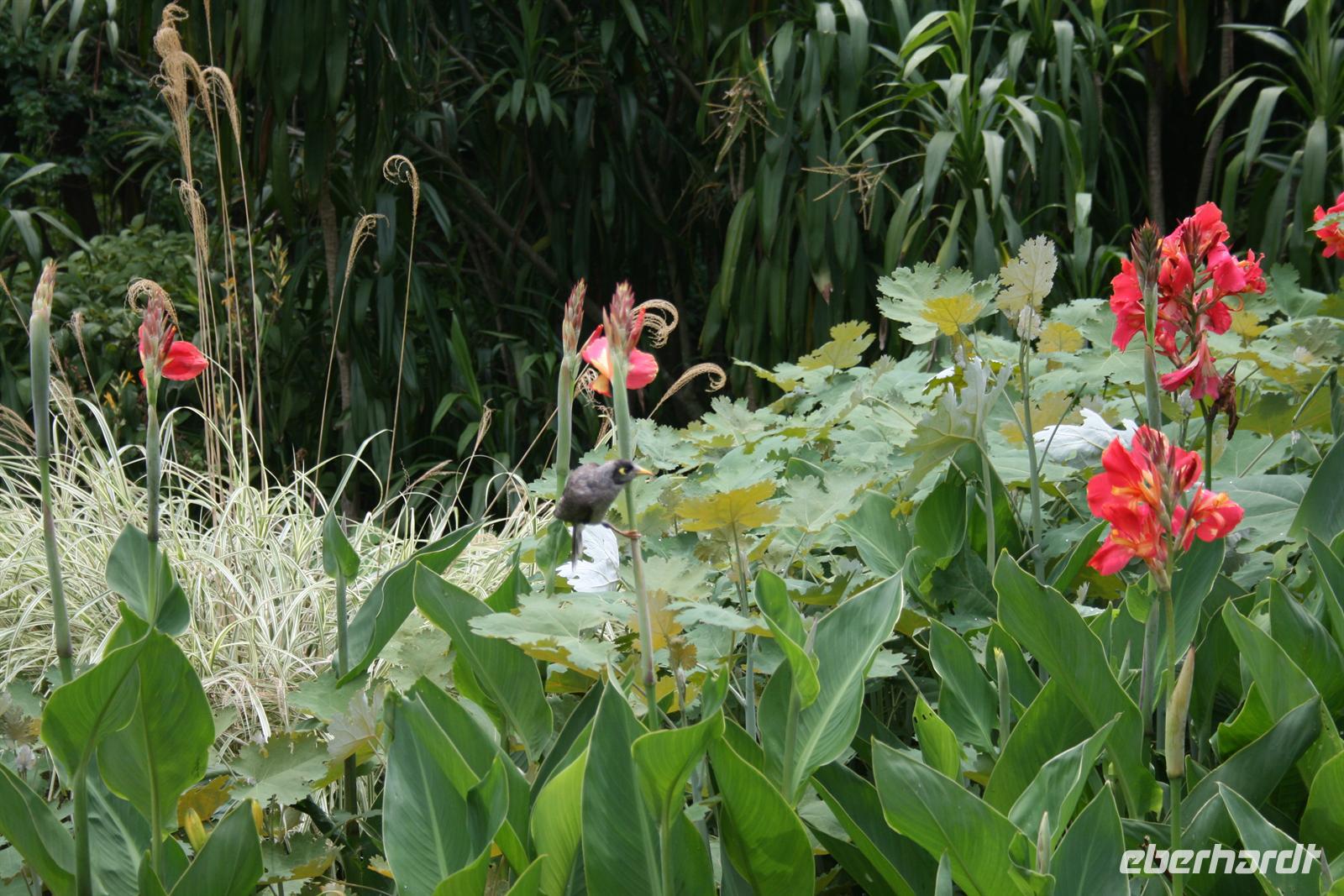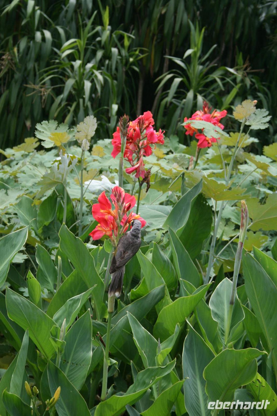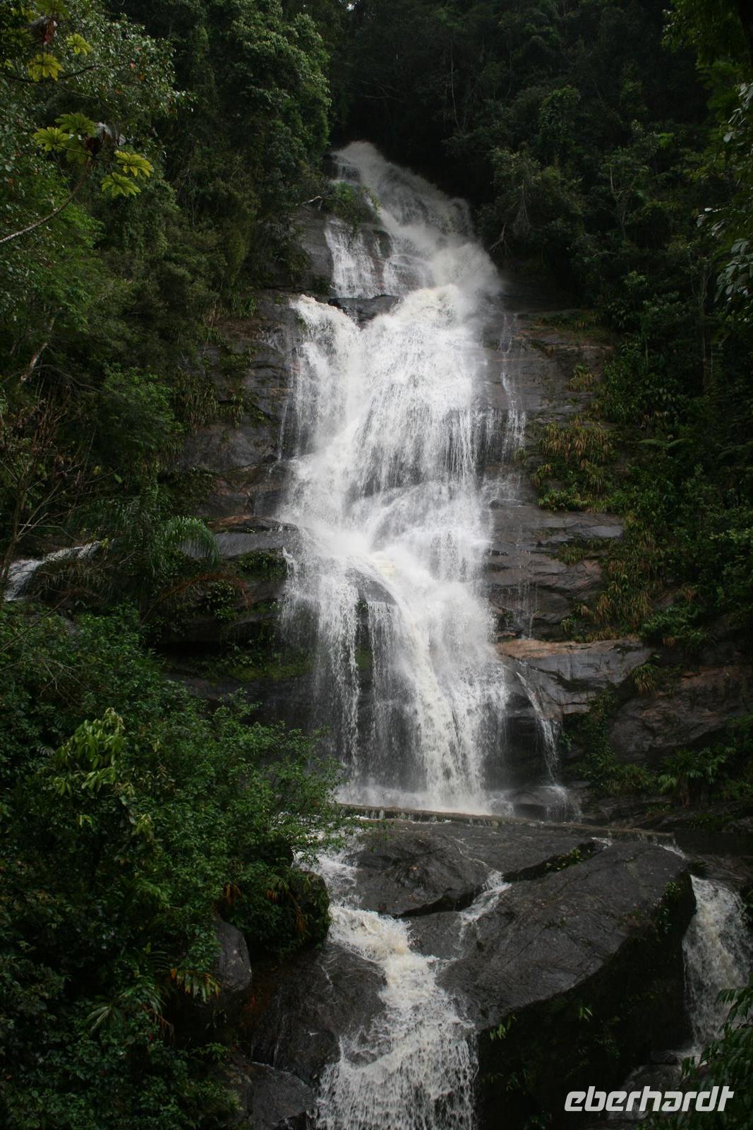 Auch heute schien die Sonne 7 Uhr noch Schönheitsschlaf zu halten, aber so ist es eben in Rio - das Leben beginnt nicht so früh . So war es dann 9 Uhr bei unserer Abfahrt im Jeep fast trocken. Allerdings hätte auch kein Tropfen zwischen die Personen gepasst, so eng war es im Jeep, daher wurde dann beim ersten Stopp auch ein 2. Fahrzeug zur Verfügung gestellt. Wir fuhren in die Wolken und mussten daher leider auch auf die Aussicht verzichten, die der Nationalpark Tijuca eigentlich bietet. Wir fotografierten Wasserfälle und Bananenblüten und lauschten den Erklärungen unseres Führers Fabio. Nach einem Stopp im Besuchszentrum stand eine kleine Wanderung durch die tolle Flora des Regenwaldes auf dem Programm und dieser machte nun seinem Namen alle Ehre - es regnete wie aus Kannen. Natürlich sind Weltreisende gut ausgestattet und somit konnte sich jeder am Anfang vor dem Regen schützen, aber letztendlich wurden wir alle ein wenig nass. Der Regenwald hat aber dennoch alle in seinen Bann gezogen. Auf dem Rückweg gab es Stau und so waren wir 13.30 Uhr wieder zurück am Hotel. 15 Uhr hatten wir uns für einen kleinen Spaziergang verabredet - und das Wetter blieb uns hold.