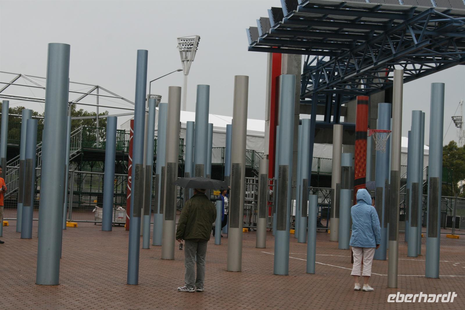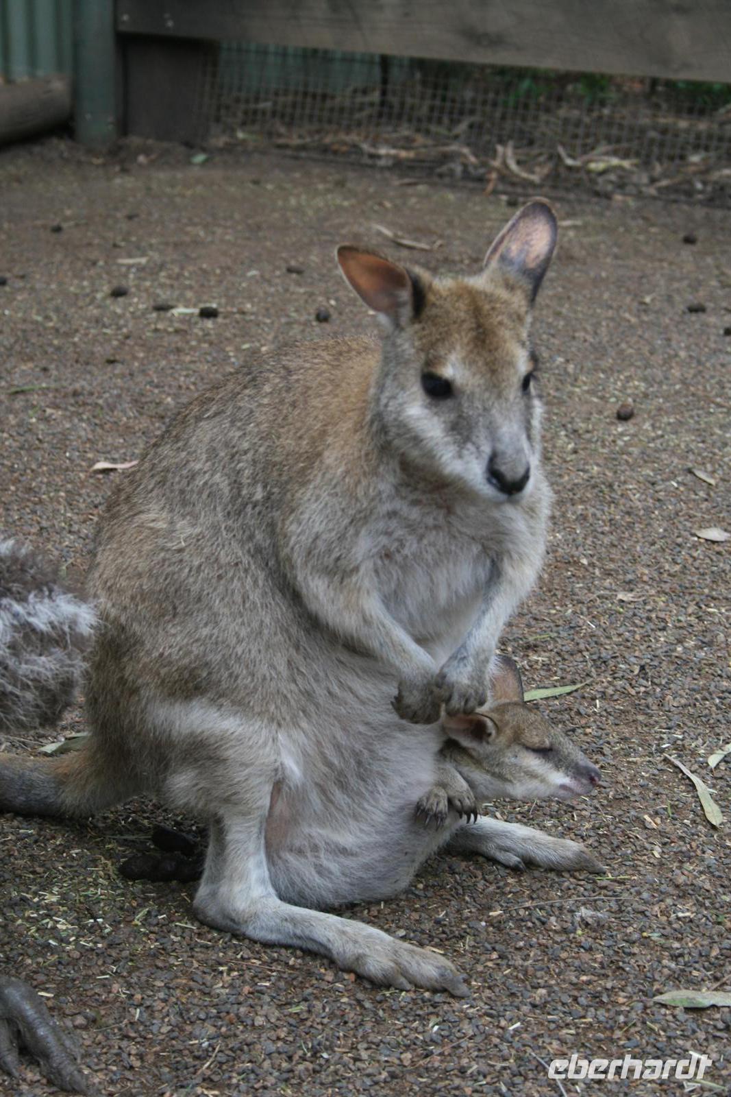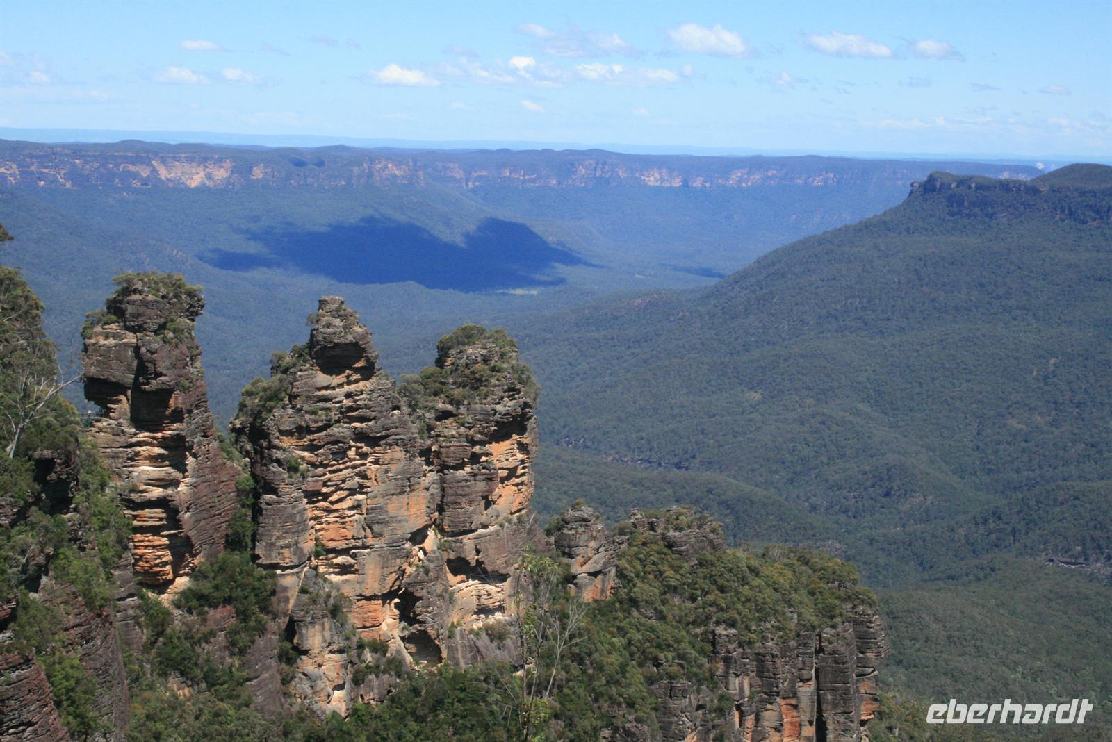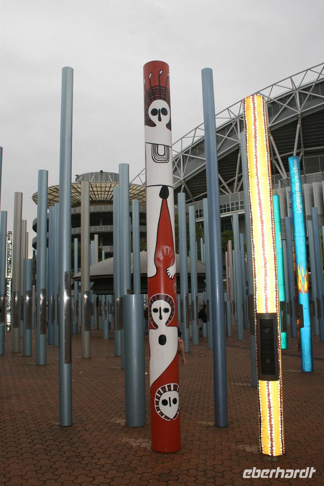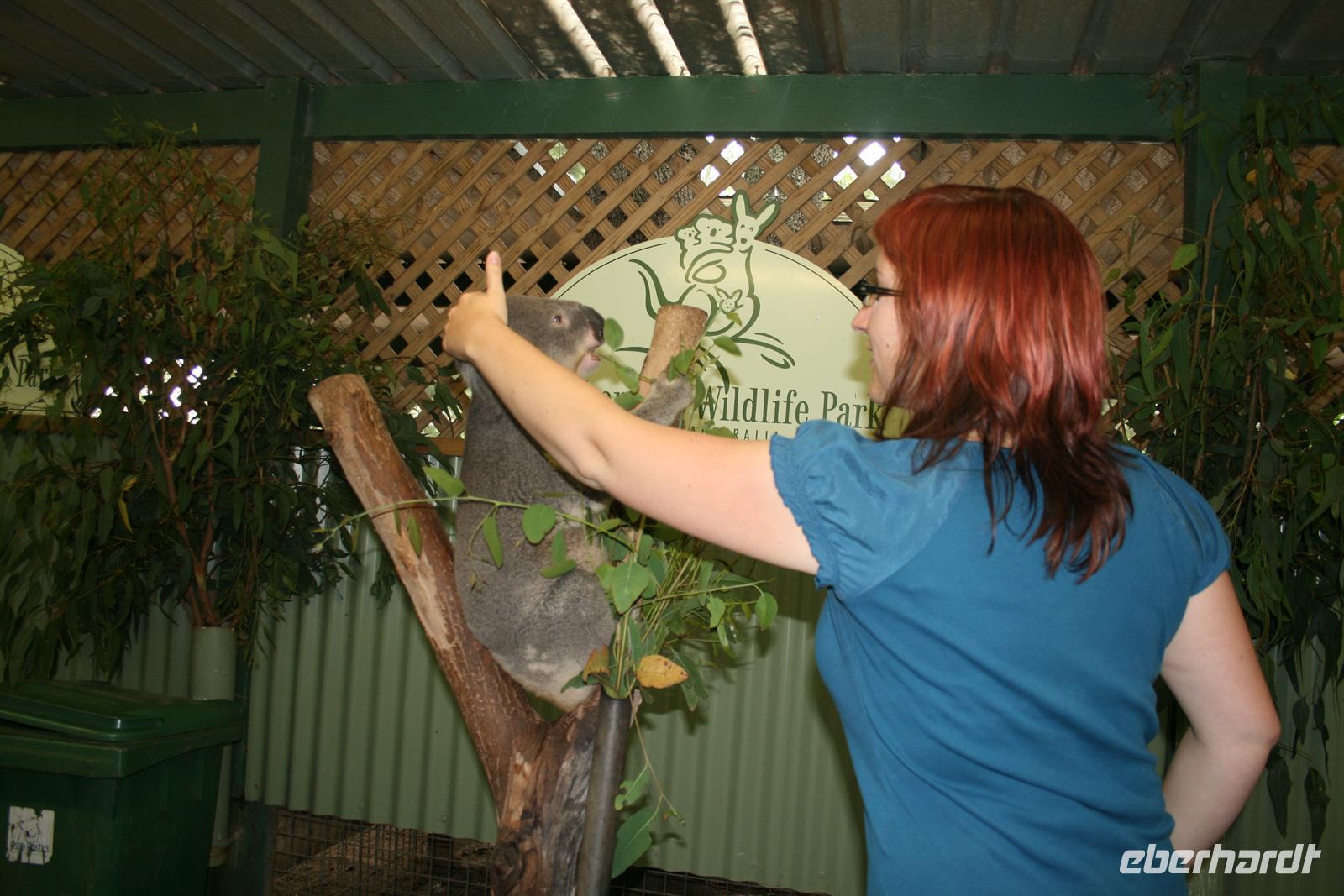 Auf dem Weg in die Blauen Berge, die ihren Namen der Verdunstung des Eukalyptusöls verdanken, legten wir einen ersten Stopp am Olympiapark ein. Eine schöne Idee, die zur Olympiade 2000 als Dank an die 50.000 Helfer umgesetzt wurde, sind Säulen auf denen der Name jedes einzelnen Helfers aufgeführt ist. Im Featherdale Tierpark findet man Exemplare aller australischen Tiere - Wallabys hüpfen herum, man kann Koalas streicheln und viele viele Fotos schießen. Wer aus Europa hat denn schon mal einen Wombat von Nahem gesehen oder einen tasmanischen Teufel?